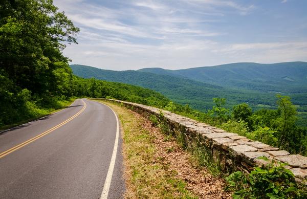 Skyline Drive runs 105-miles along the Blue Ridge mountains, and it is the only public road through Shenandoah National Park. This scenic drive takes about three hours to travel in full.