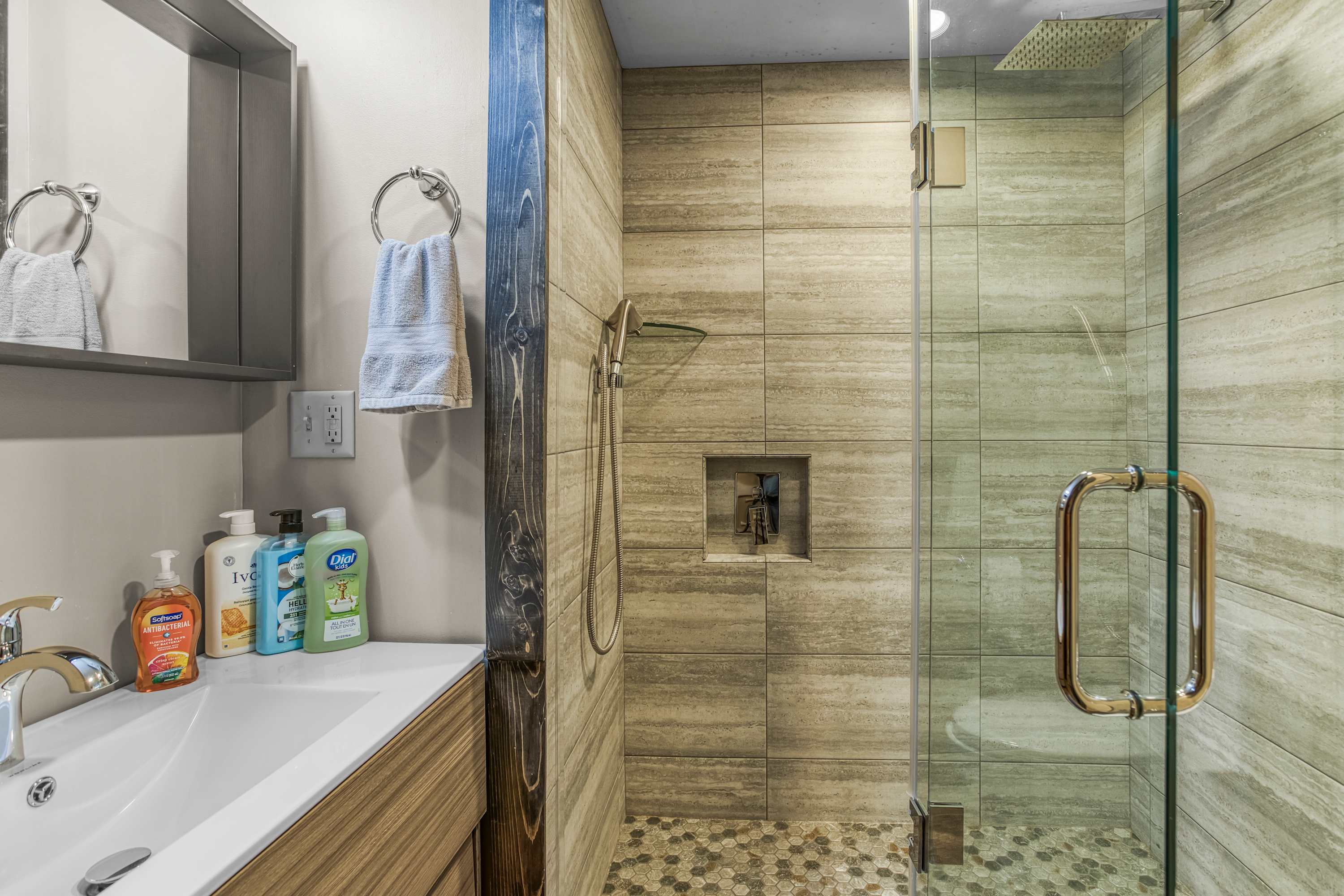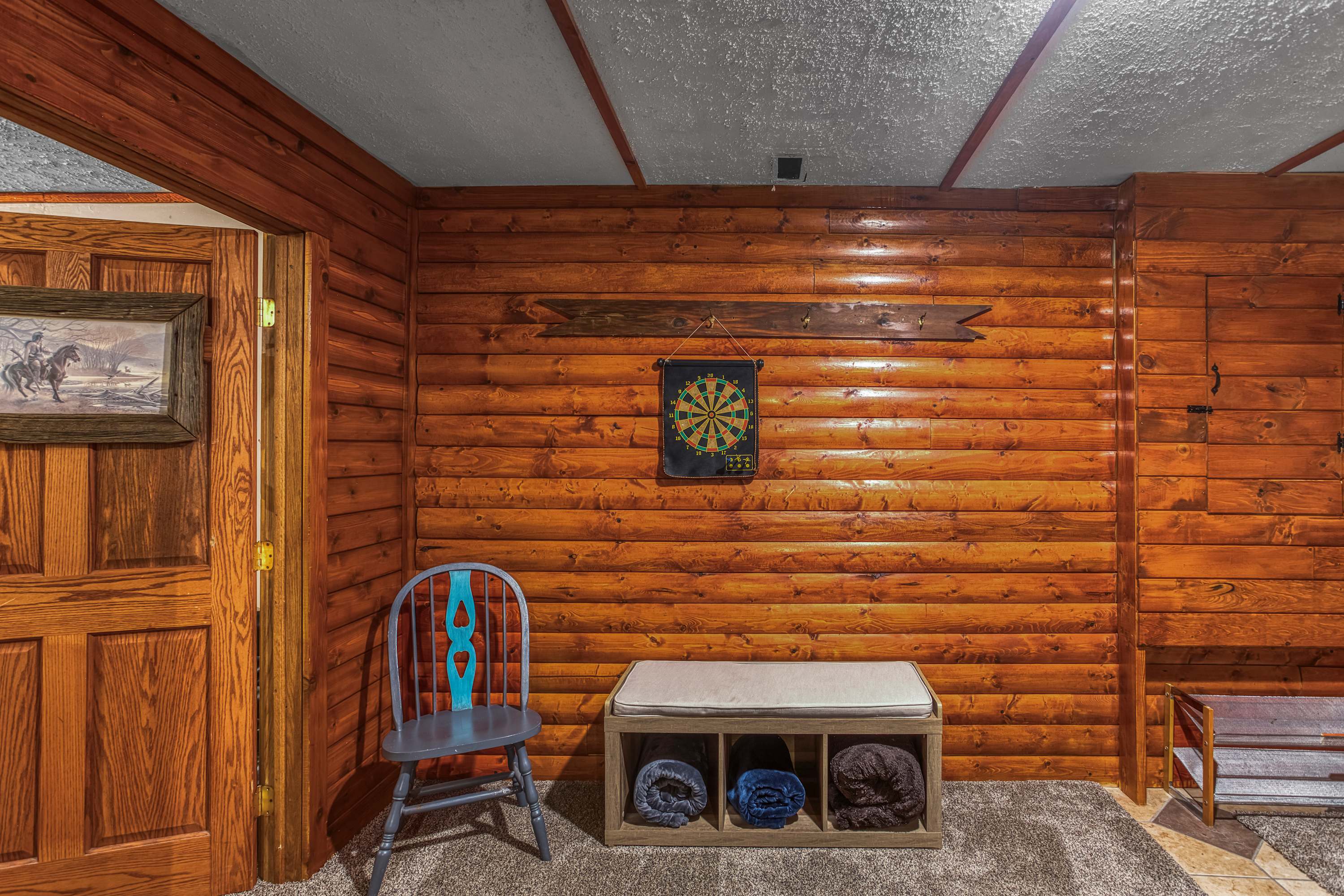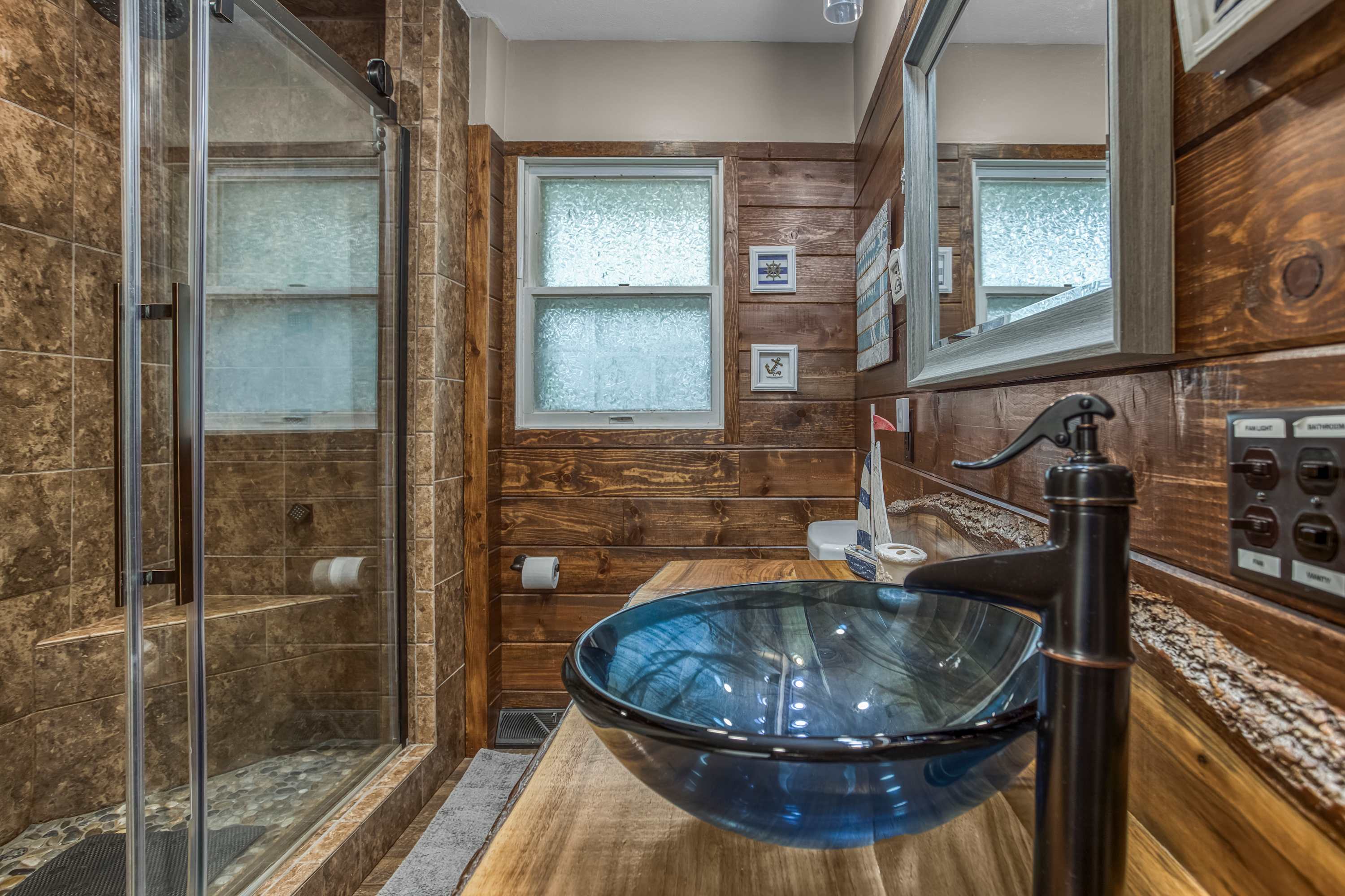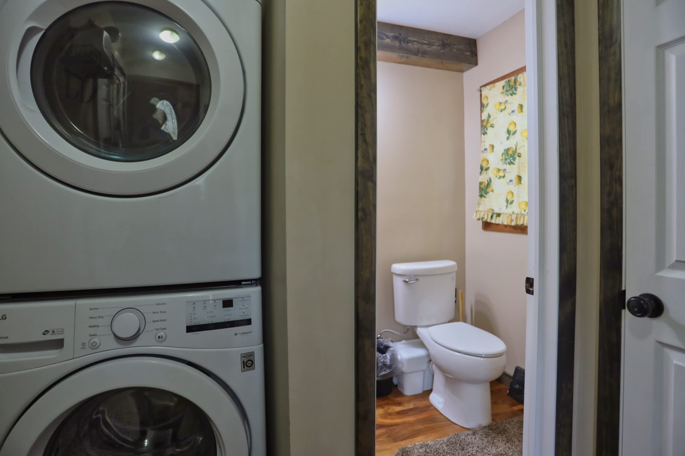 Inside, you’ll find an open layout with tall ceilings, a fully equipped kitchen with a large island that makes cooking and gathering a breeze, and a cozy living area with Roku TV for streaming your favorites. Multiple hangout spaces throughout the home include a lower-level living room, an arcade and game room for endless entertainment, and a Bluetooth jukebox on the main floor. A dedicated desk downstairs makes it easy to blend work and play, and the home is stocked with board games for everyone to enjoy.