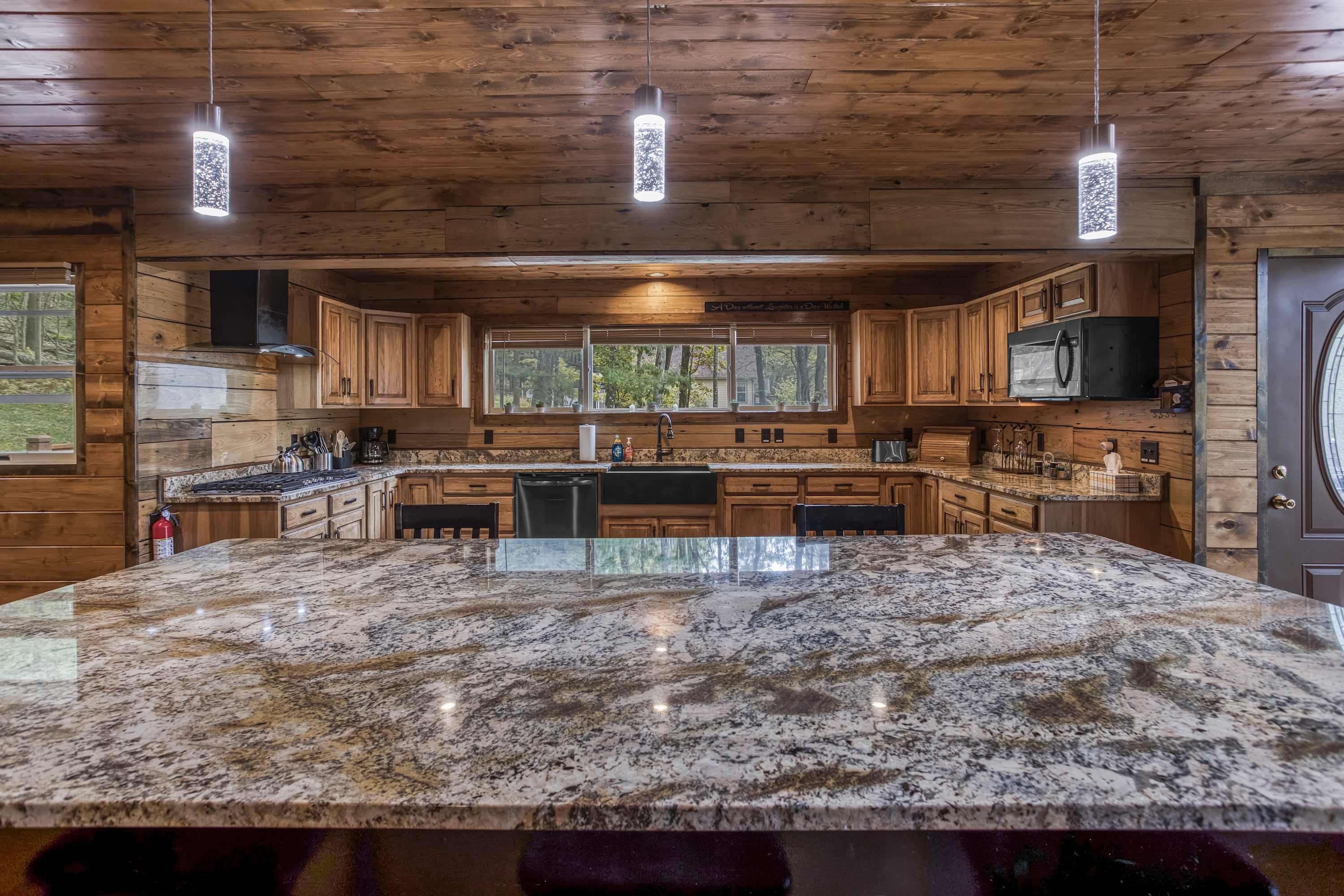 - Open layout with wood floors and ceilings for the perfect mountainous feel