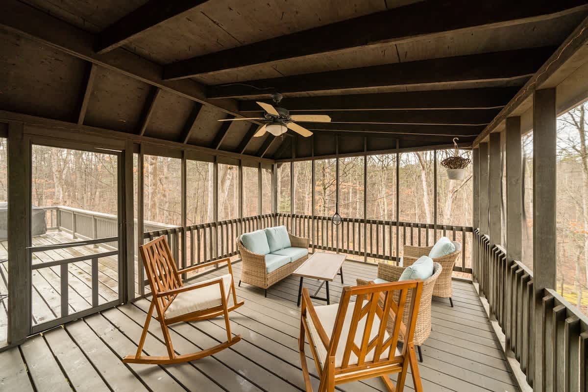 Escape to the tranquility of this stunning cabin, nestled in a quiet neighborhood in The Woods. Enjoy the screened in porch or snuggle up by one of the four fireplaces to enjoy this private getaway. Don't worry about sacrificing your high-speed WiFi, as this home has Xfinity internet. Explore nearby places like Berkeley Springs and Sleepy Creek WMA for the perfect outdoor adventure or go fishing, hiking and or explore the indoor and outdoor pools at the Woods Resort.