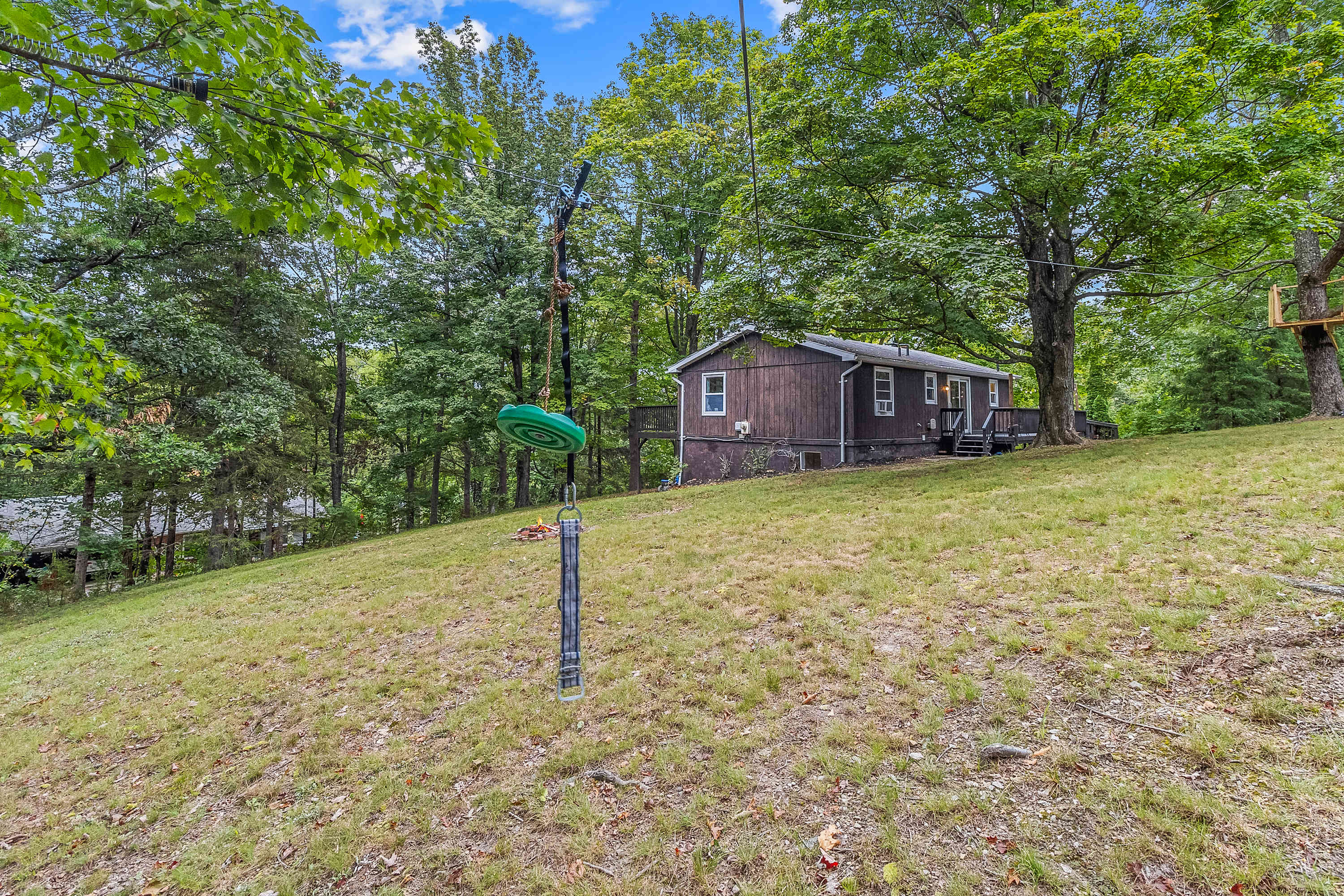 -Zipline for extra fun and adventure and corn hole for a friendly competition