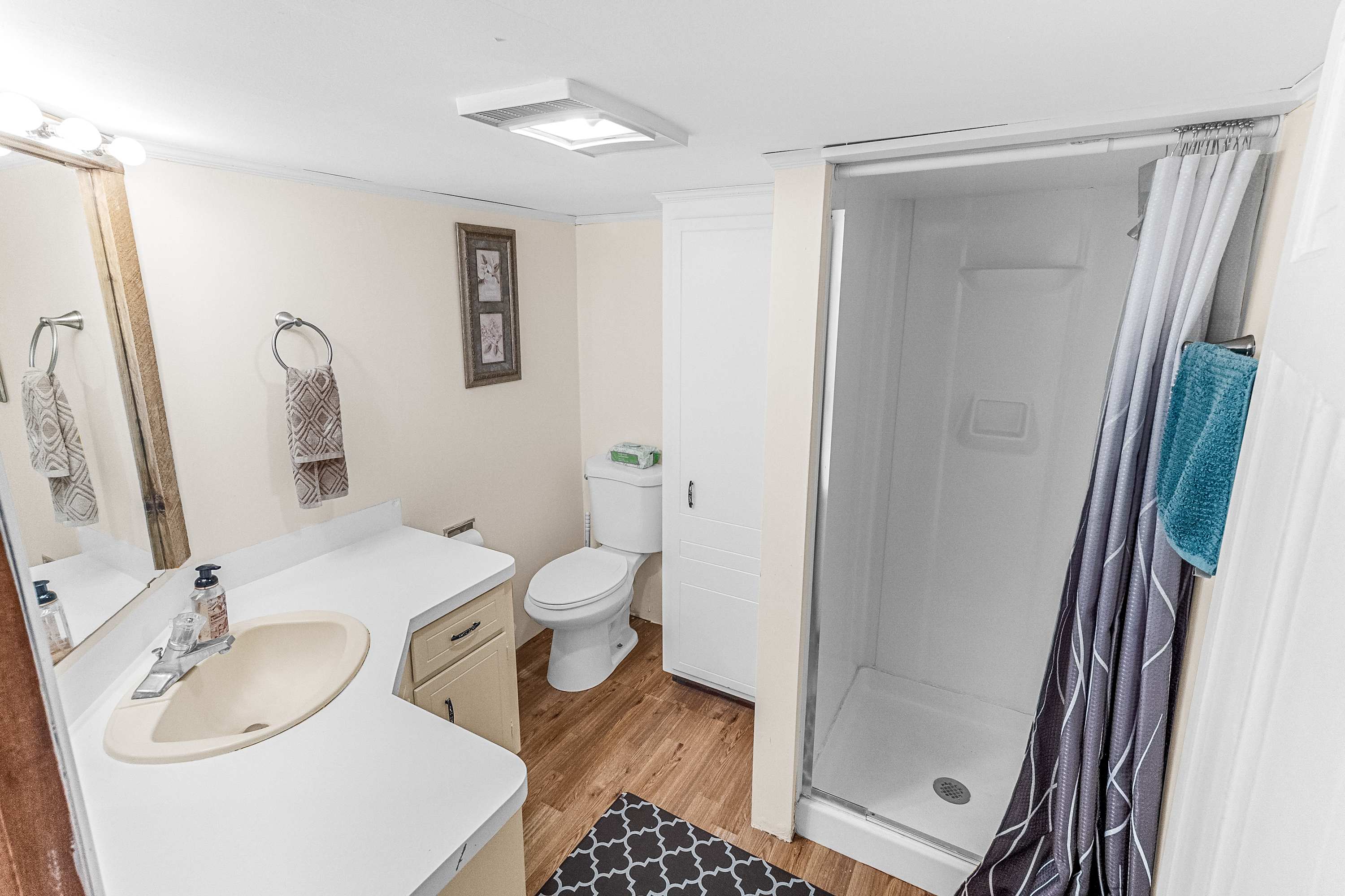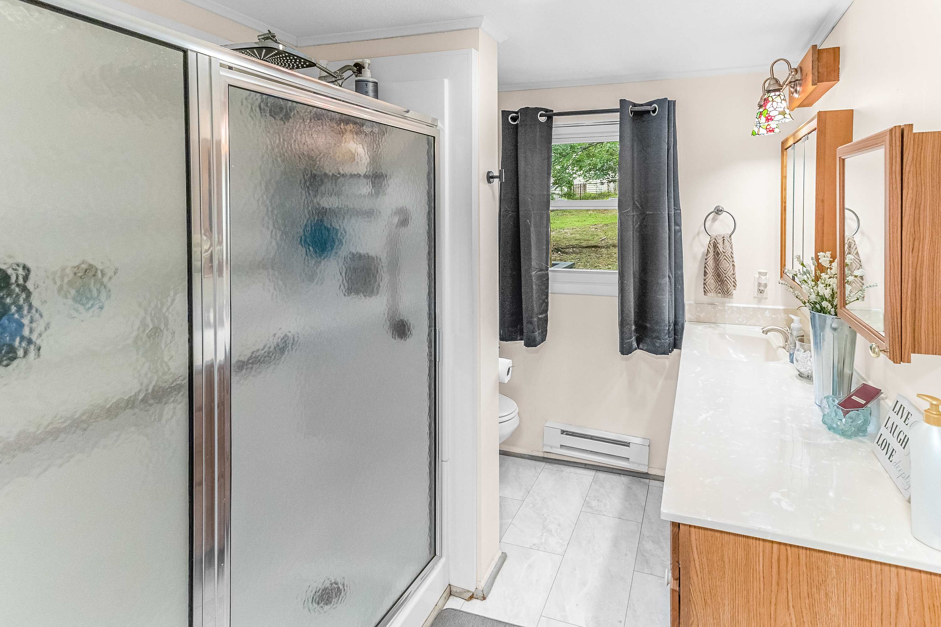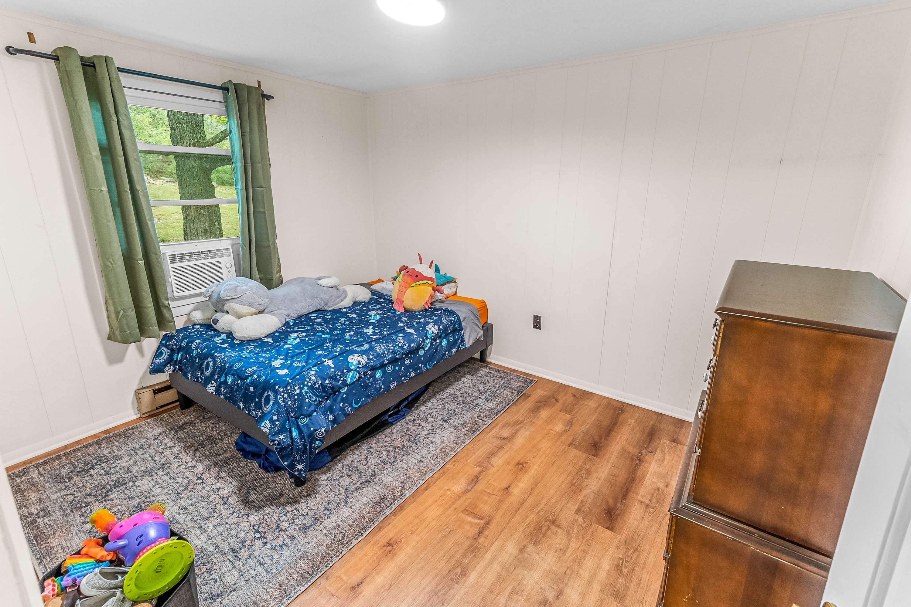Window A/C units to keep every space comfortable and baseboard heat for chilly nights