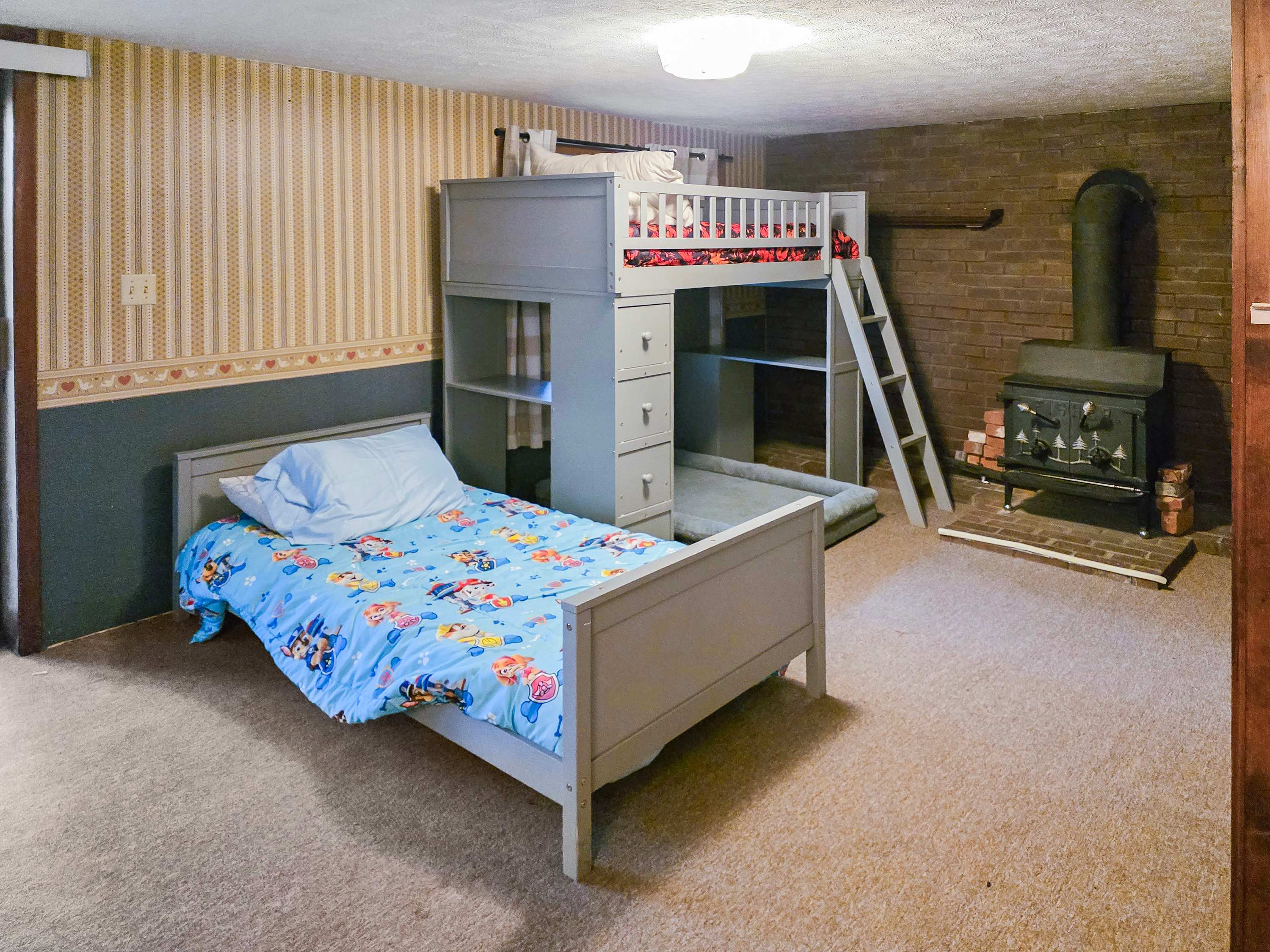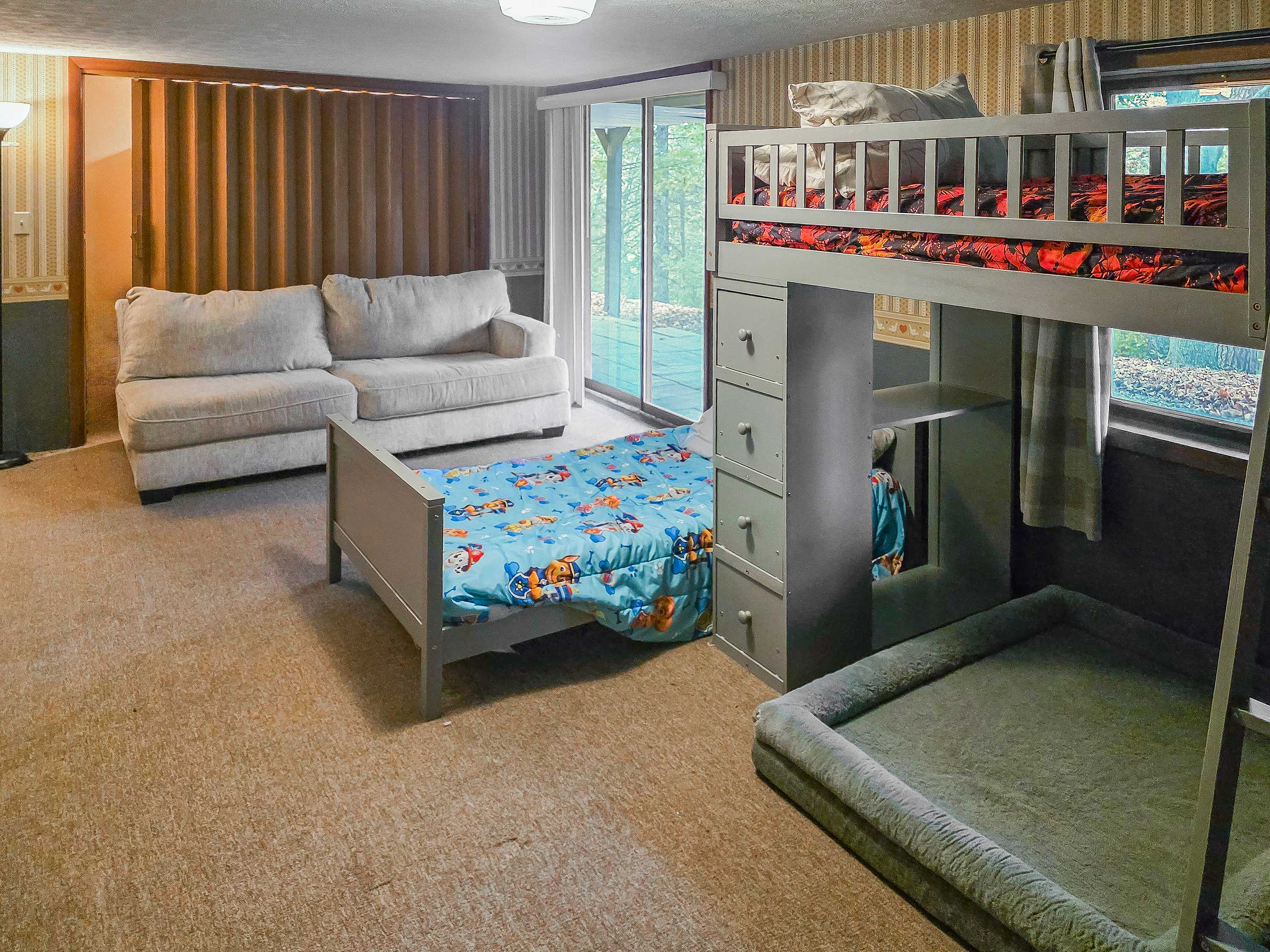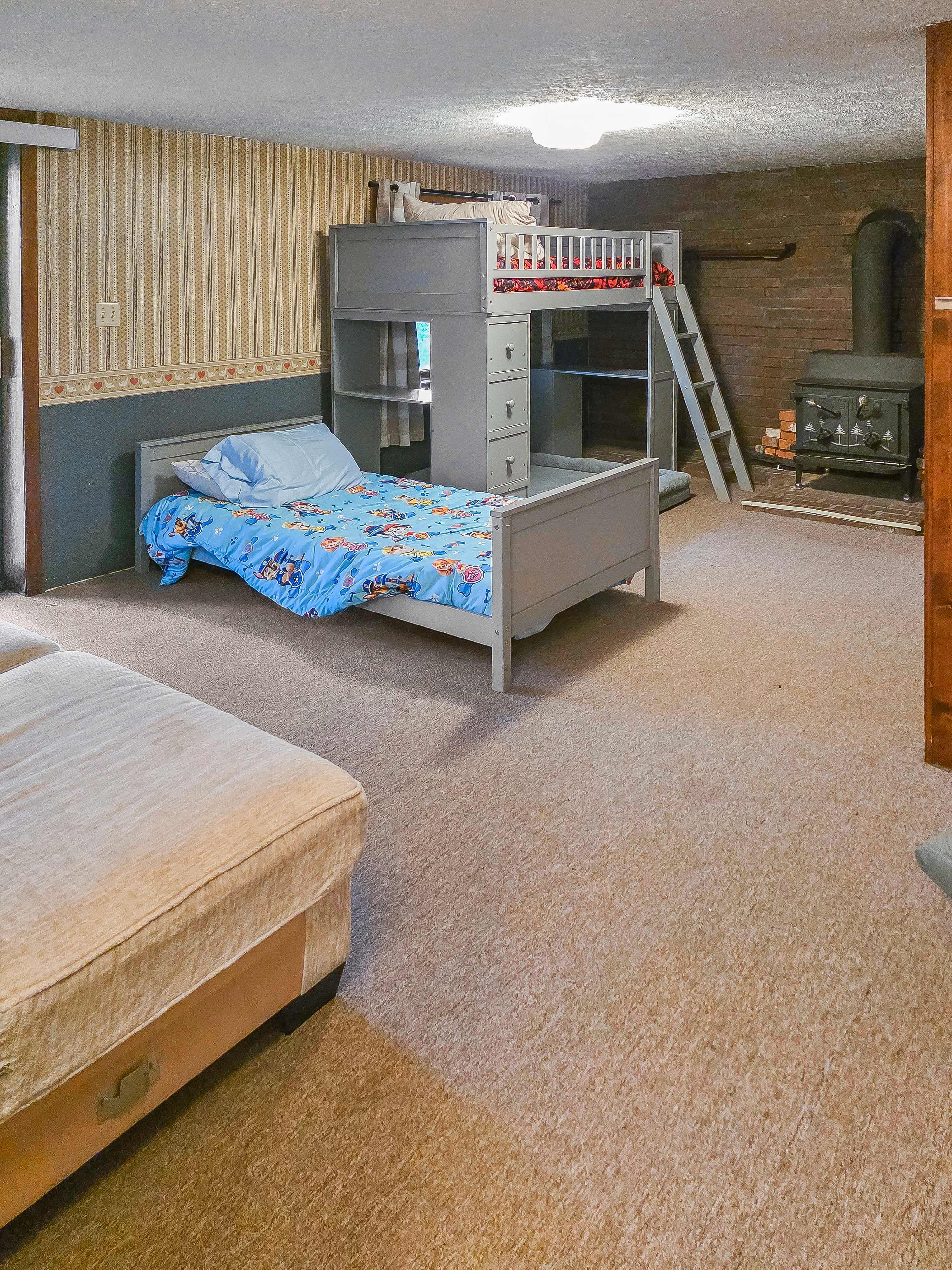- Additional sleeping accommodations: Finished Basement - Twin over Twin Bunk Bed ideal for kids (fireplace downstairs is decorative only)