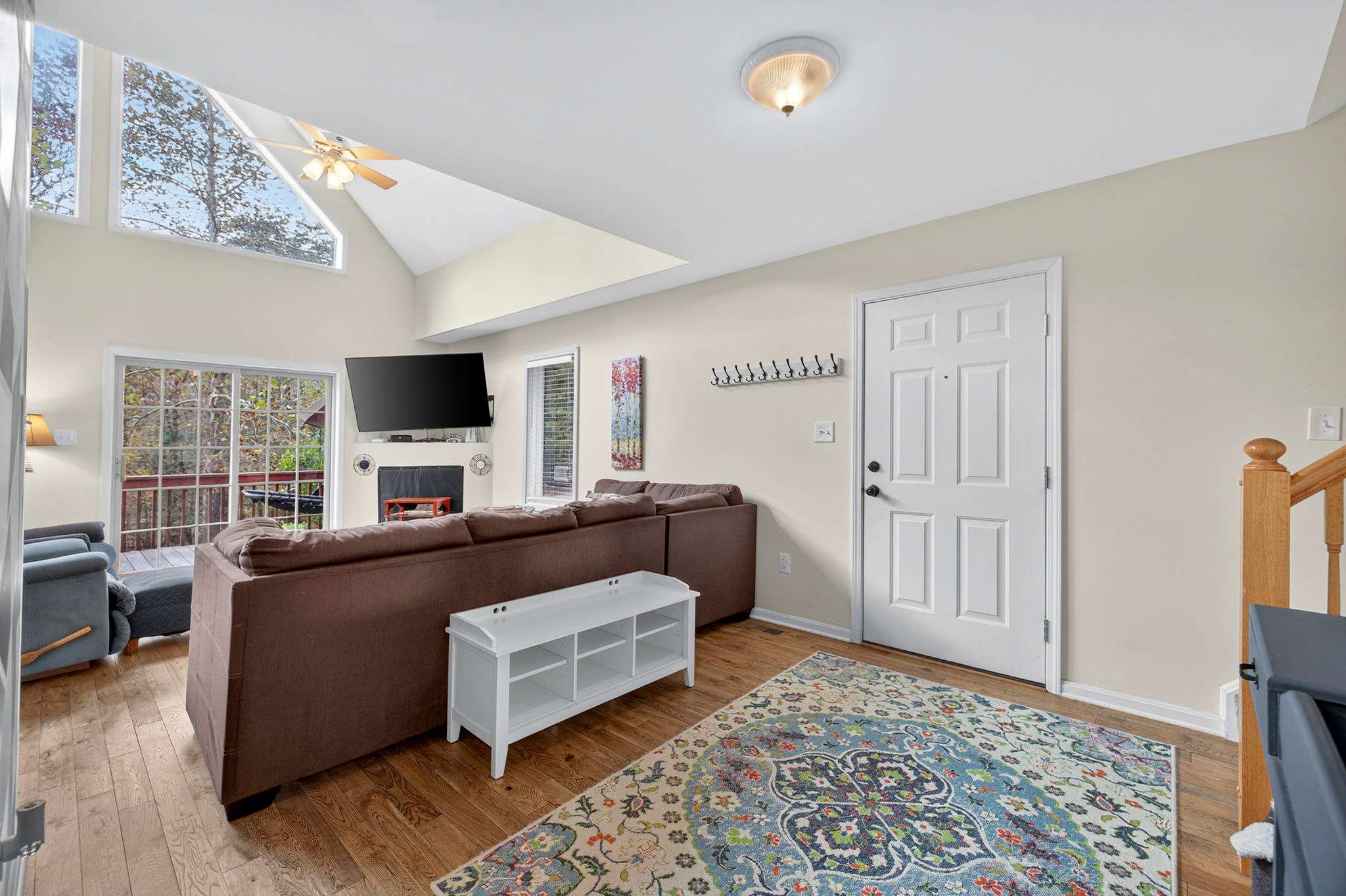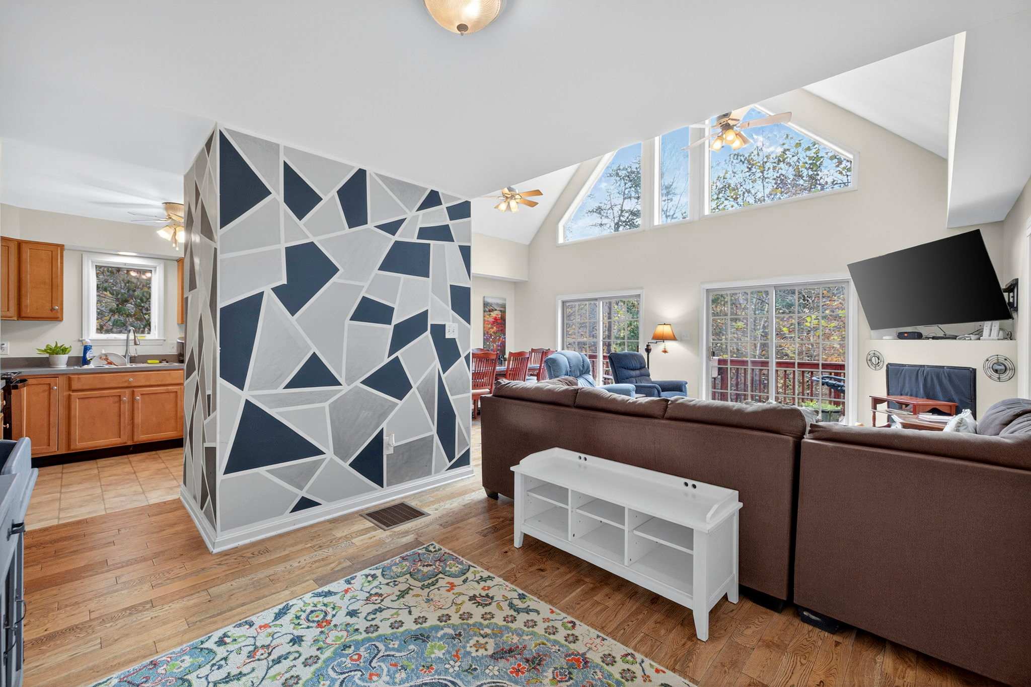 With five bedrooms, a loft with two additional beds, and three full bathrooms, the cabin comfortably sleeps up to twelve guests. It’s perfect for large families or groups who want room to spread out and enjoy quality time together. Inside, cozy living spaces are designed for connection and comfort, with brand-new 65” Smart TVs in both the living room and bedrooms—perfect for movie nights or relaxing after a day of adventure.