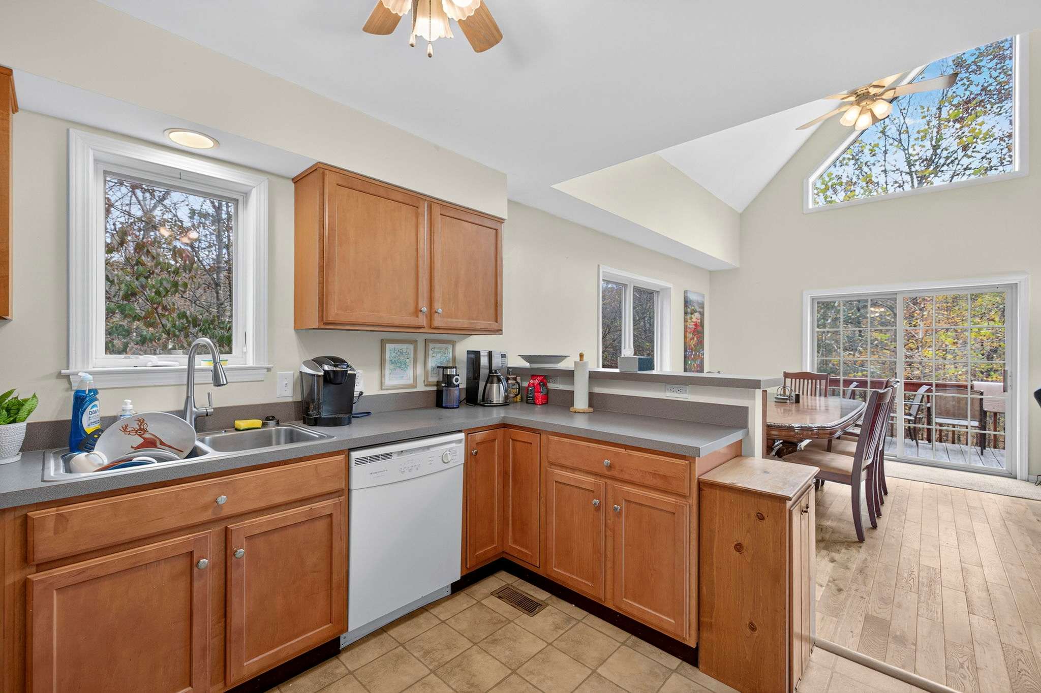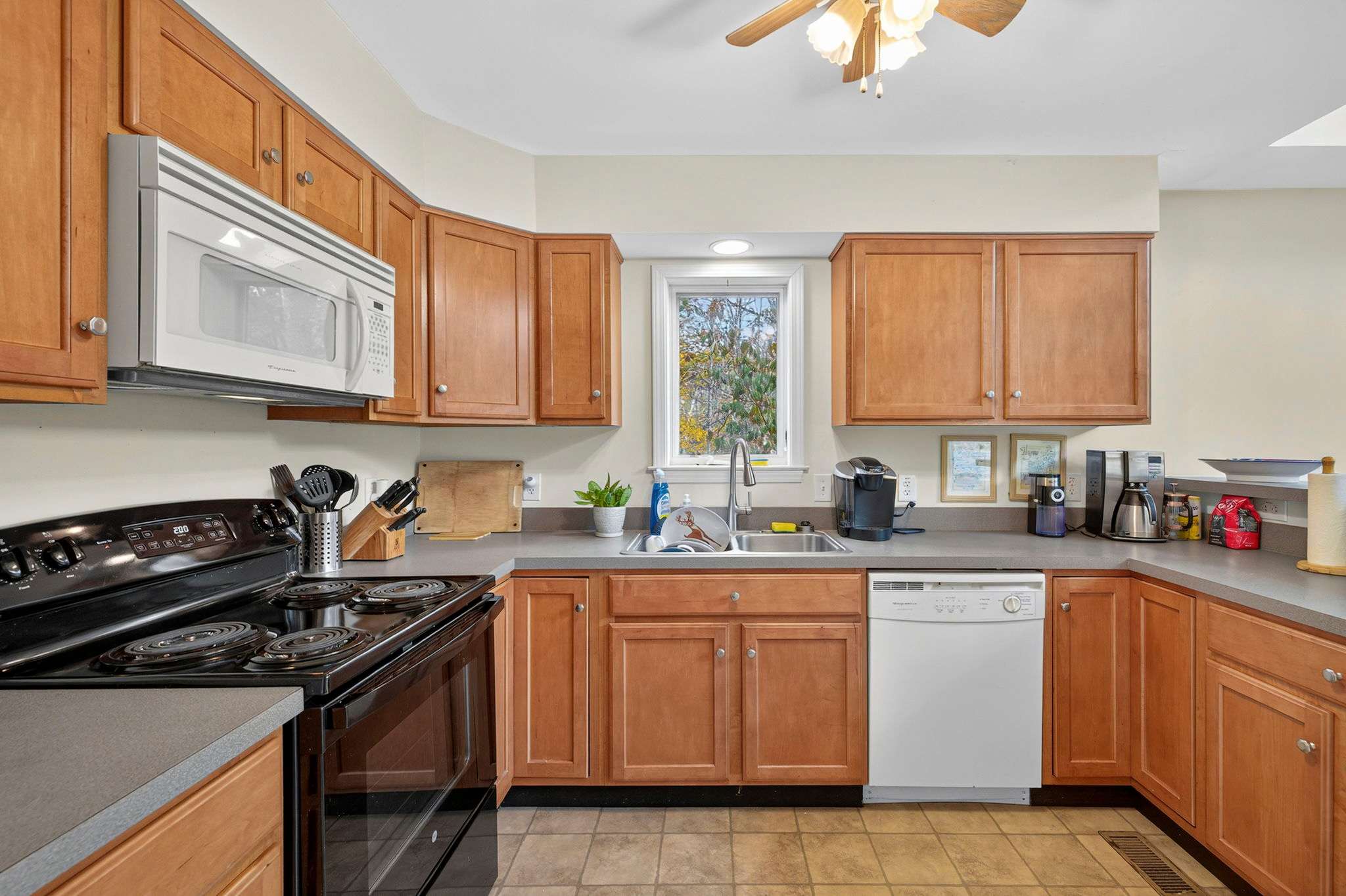 - Spacious kitchen with oven/range, refrigerator, dishwasher, microwave, toaster, toaster oven, and drip coffee maker