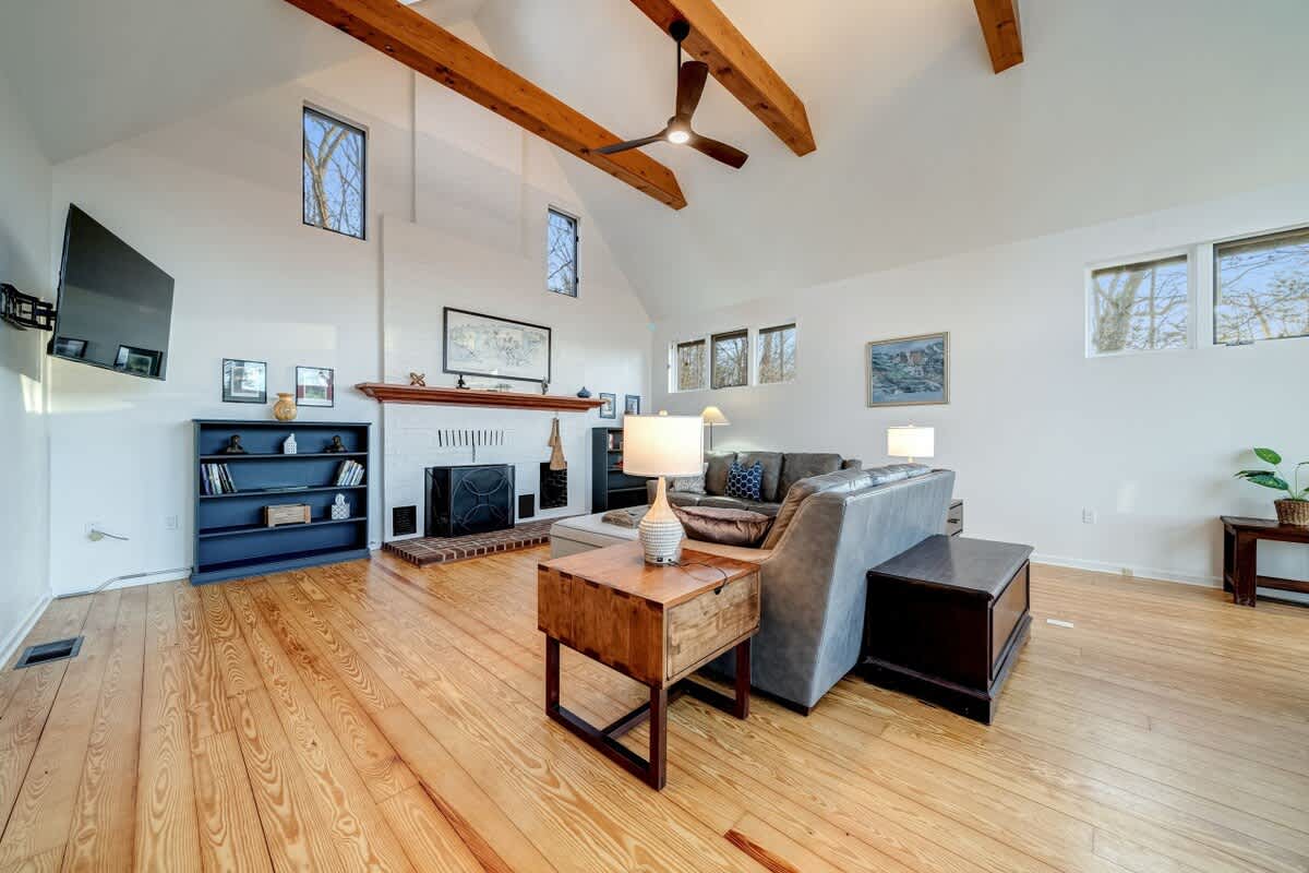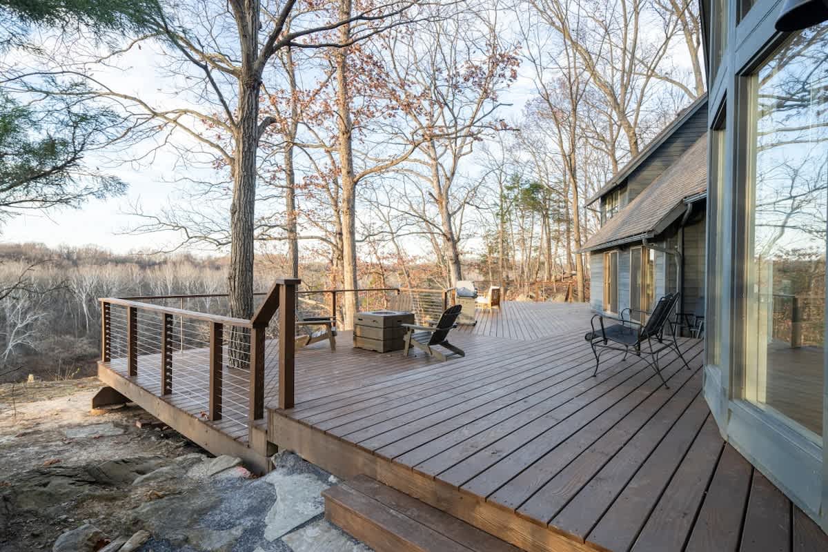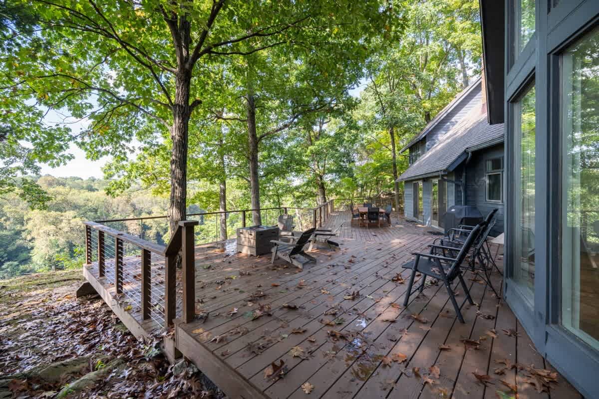 Escape to the tranquility of Eagles Bluff Overlook, an upscale chalet offering breathtaking views of the Potomac River. Situated conveniently, within 15 minutes of historic Shepherdstown and the C&O Canal, and under 30 minutes from downtown Harpers Ferry. Whether you’re exploring local gems or relaxing on the deck with a fire pit and scenic river panoramas, Eagles Bluff Overlook guarantees an unforgettable experience for all.