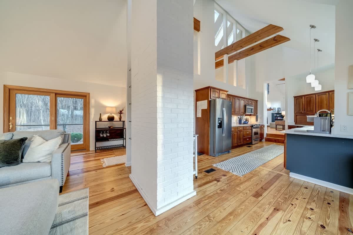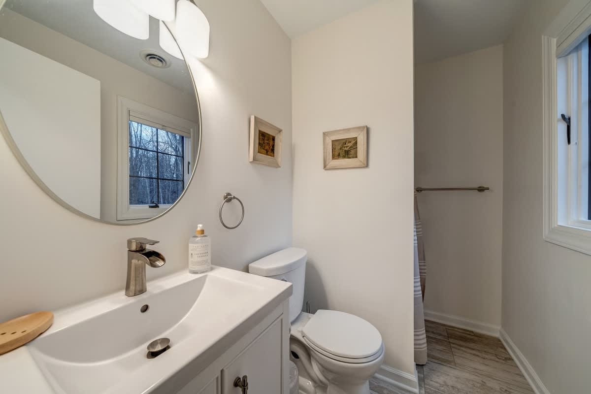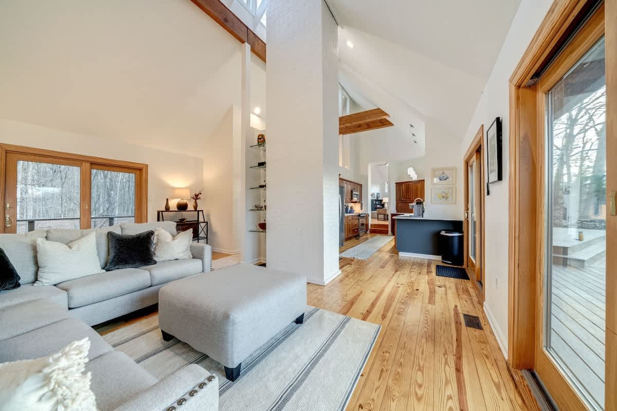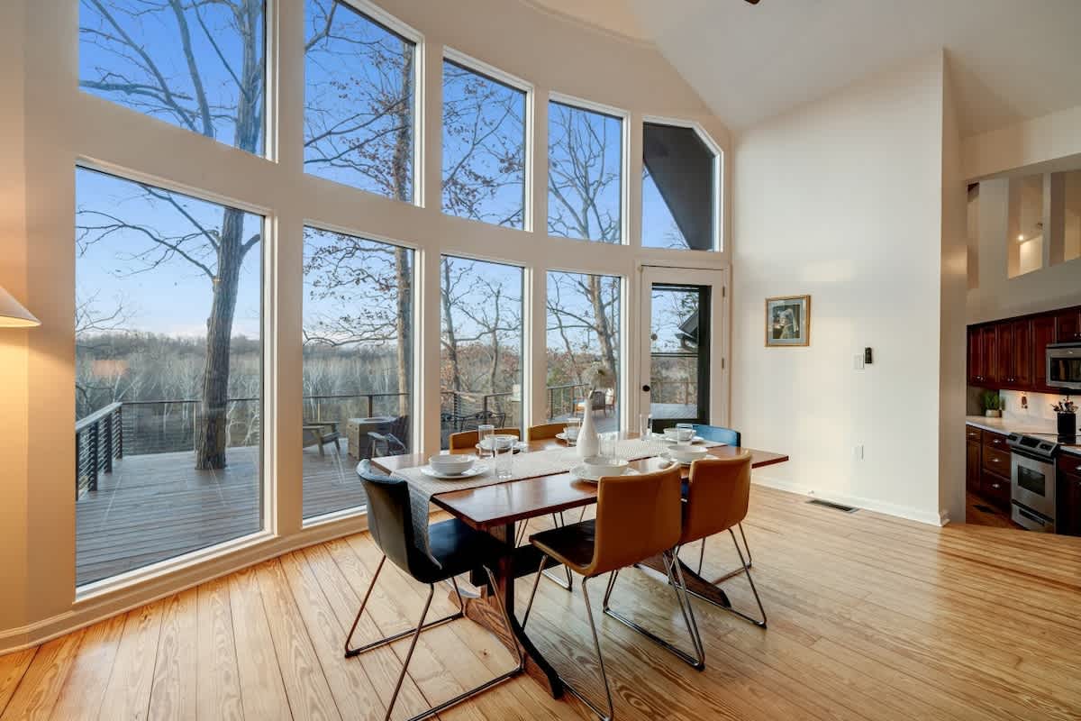 Escape to the tranquility of Eagles Bluff Overlook, an upscale chalet offering breathtaking views of the Potomac River. Situated conveniently, within 15 minutes of historic Shepherdstown and the C&O Canal, and under 30 minutes from downtown Harpers Ferry. Whether you’re exploring local gems or relaxing on the deck with a fire pit and scenic river panoramas, Eagles Bluff Overlook guarantees an unforgettable experience for all.
