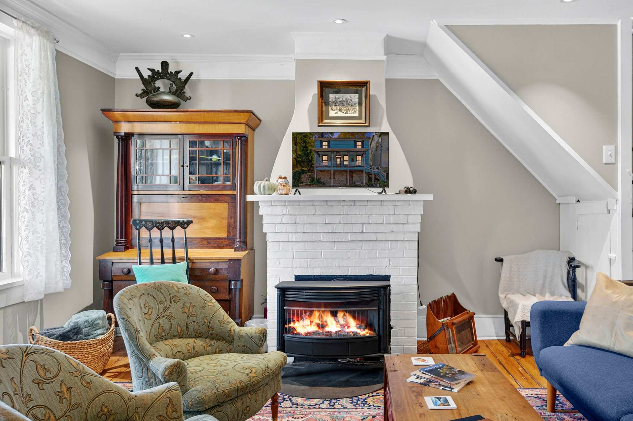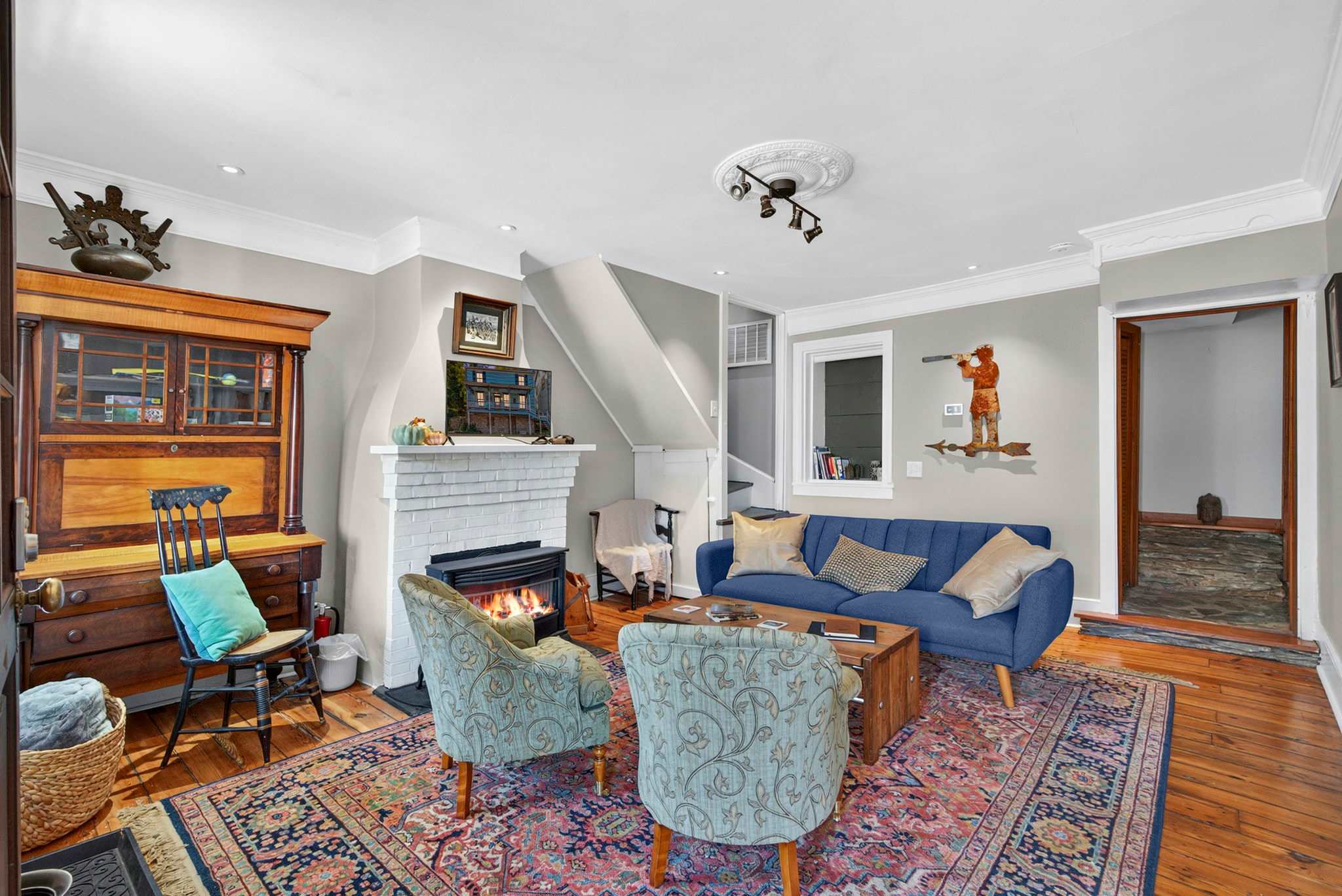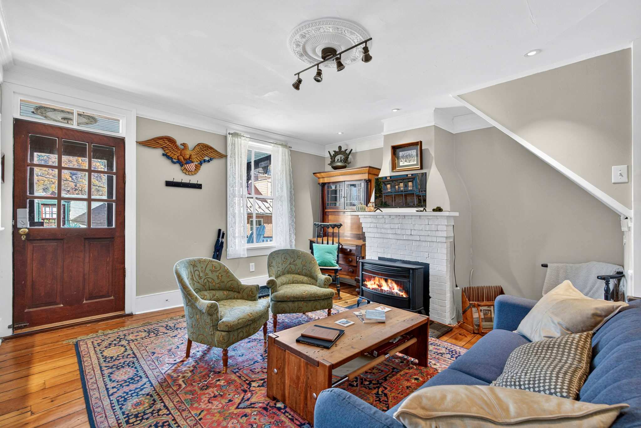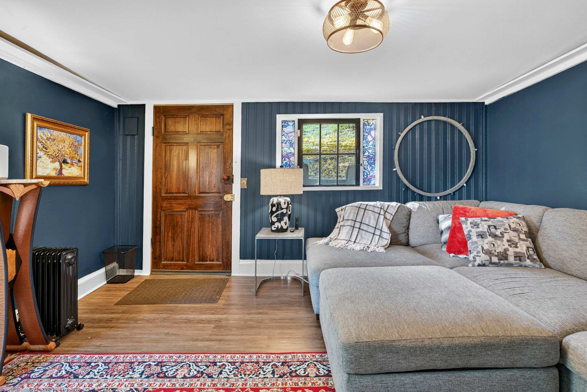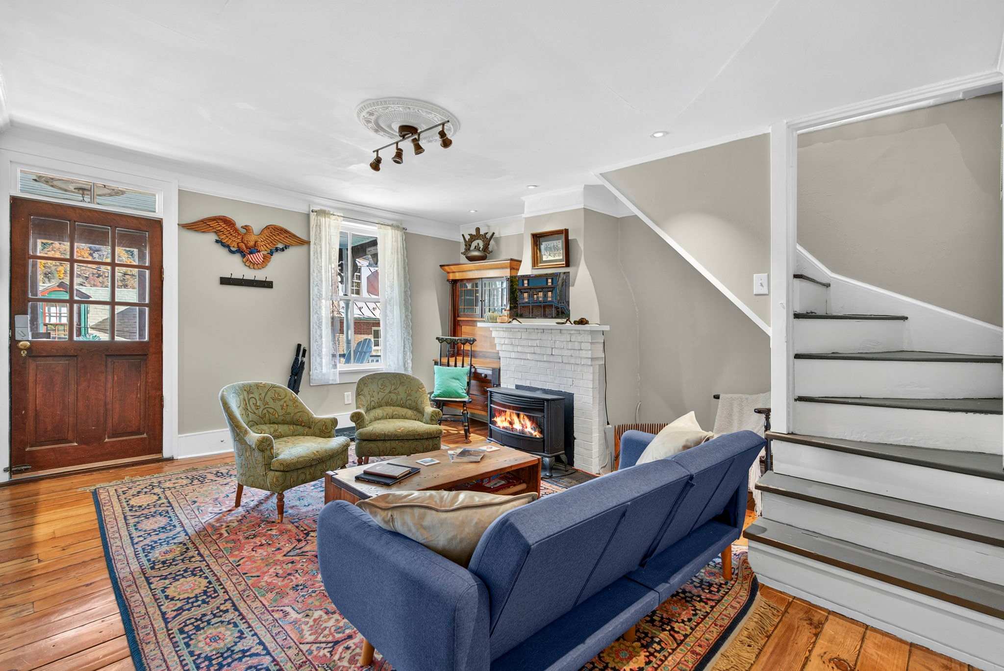 -Step inside this beautifully restored historic home, where the cozy living room instantly greets you. It's the perfect welcome, inviting you to relax and unwind after a day of exploring the storied streets and scenic trails of Harper’s Ferry.