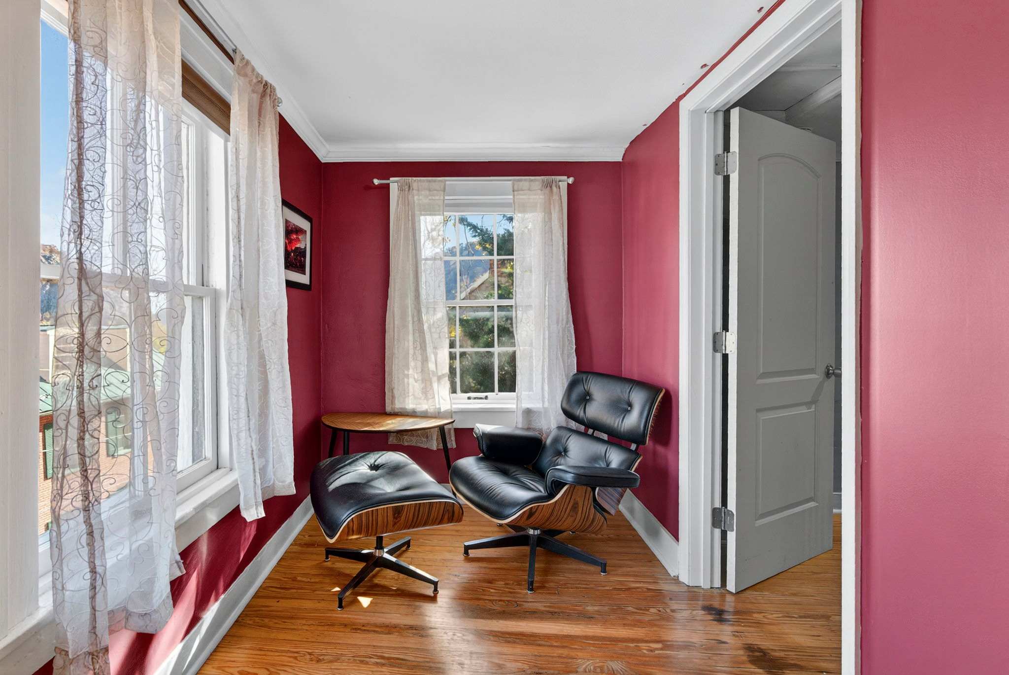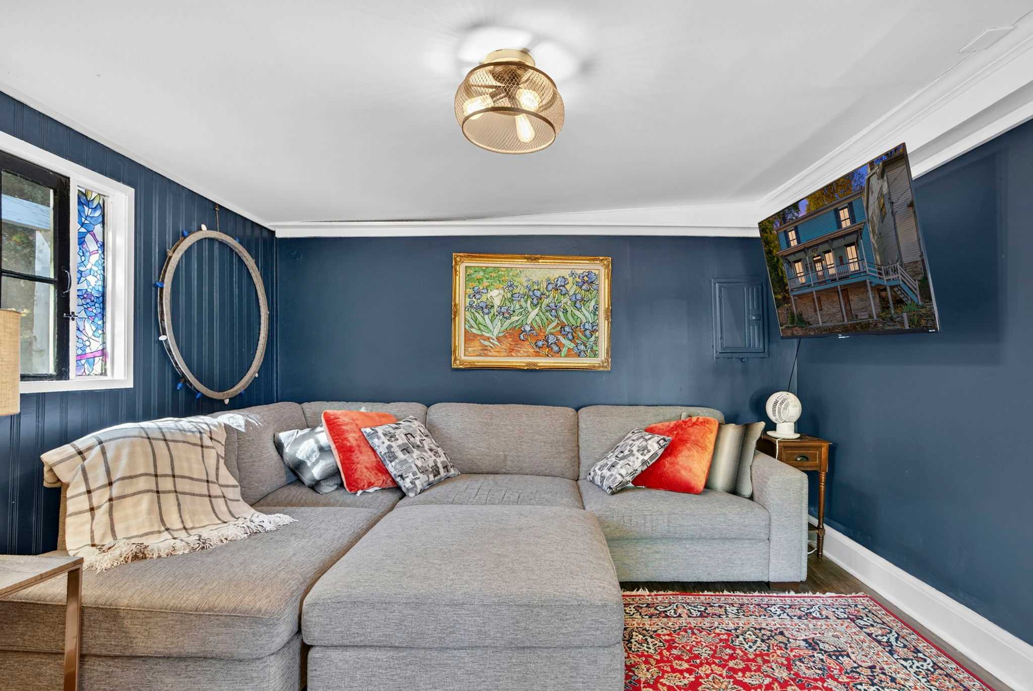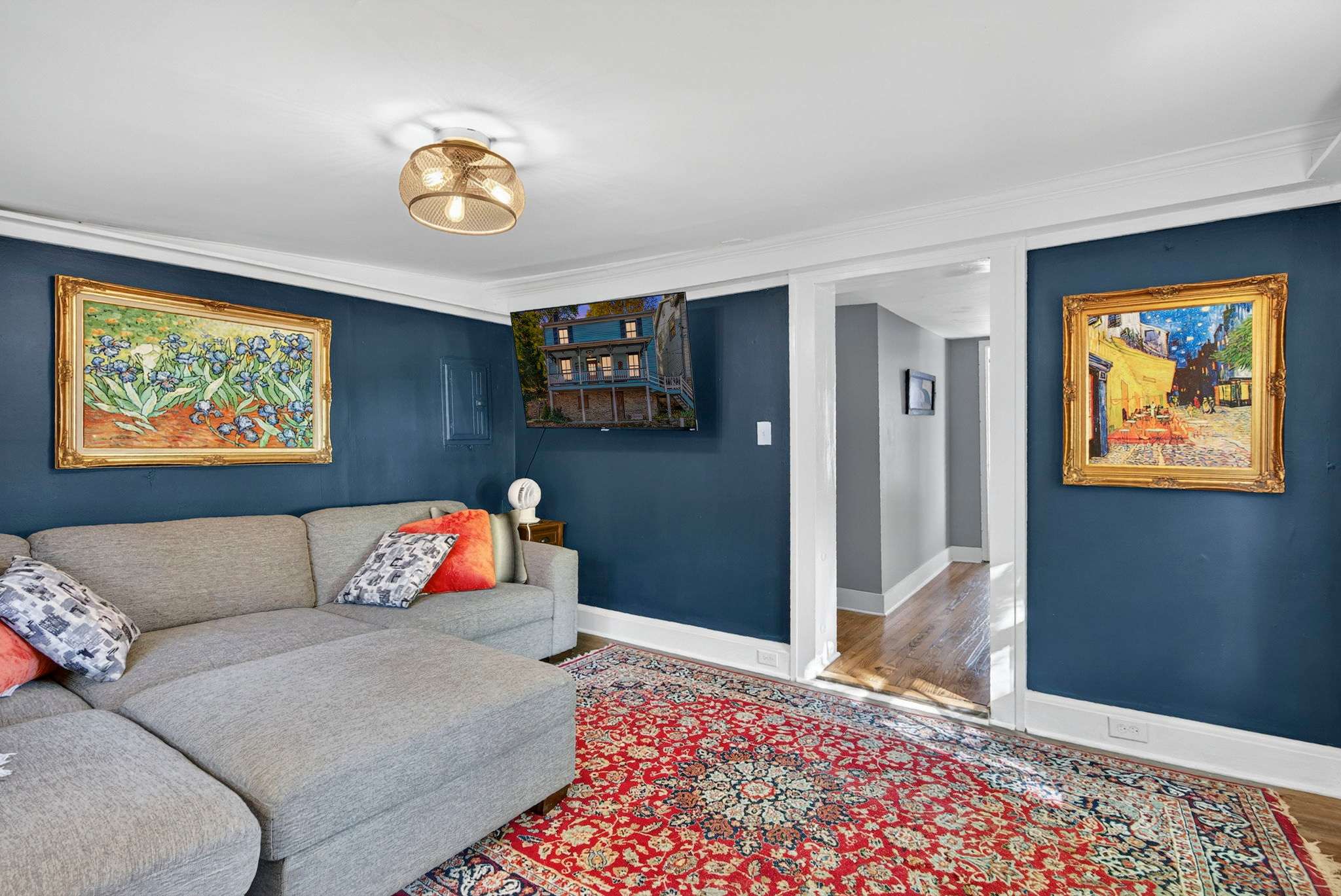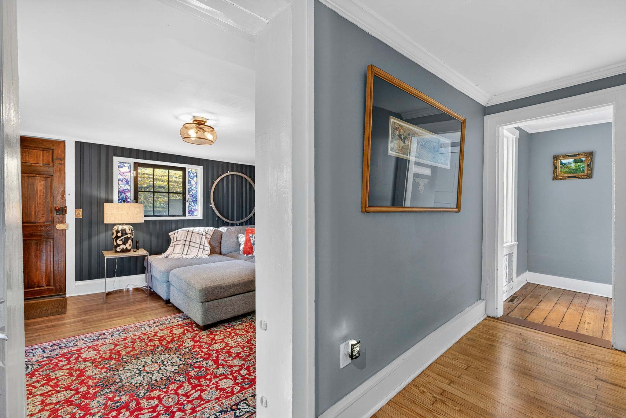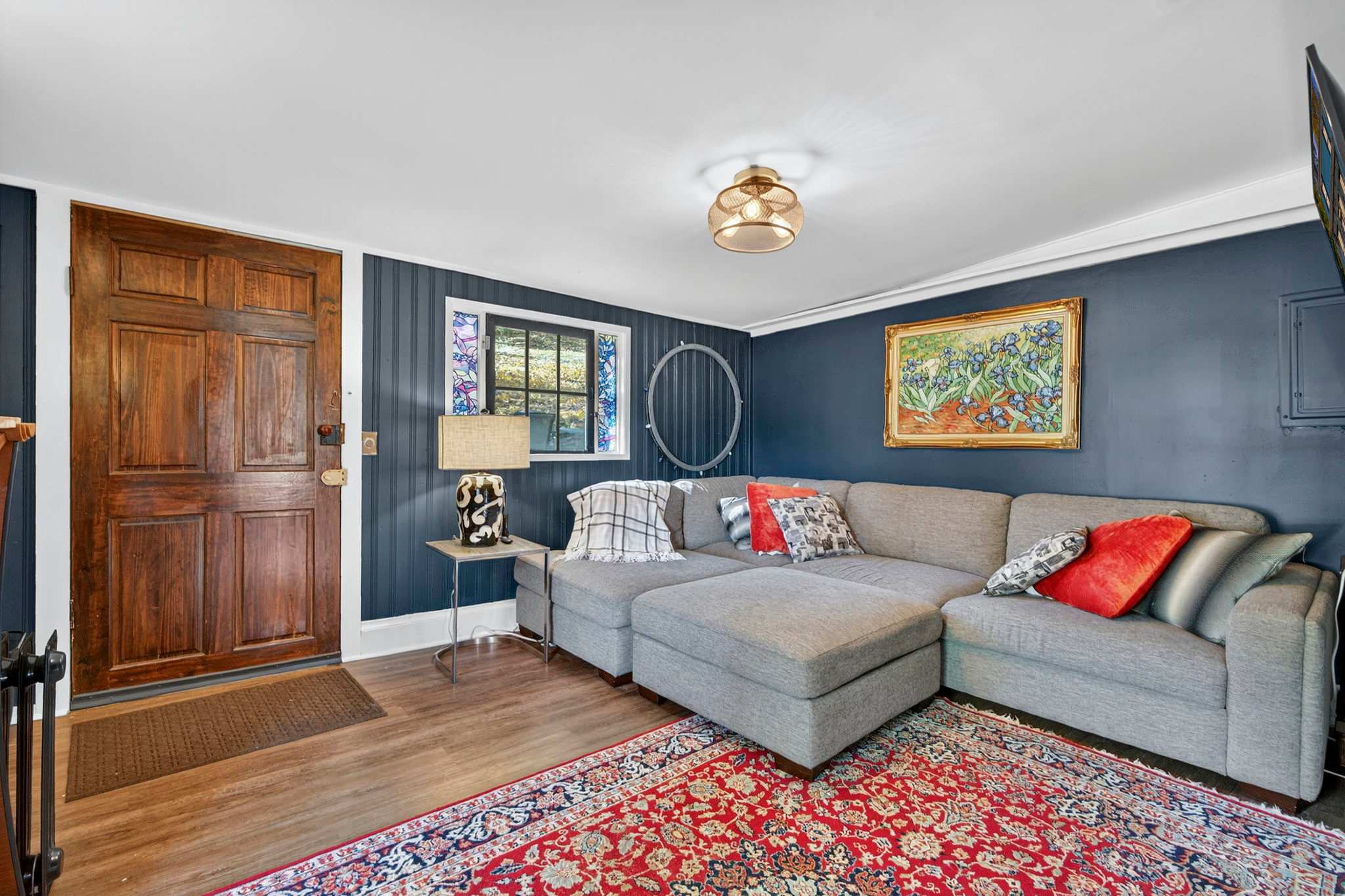 -Step inside this beautifully restored historic home, where the cozy living room instantly greets you. It's the perfect welcome, inviting you to relax and unwind after a day of exploring the storied streets and scenic trails of Harper’s Ferry.