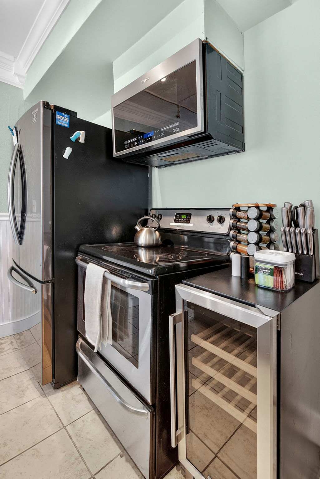 -Fully Equipped Kitchen: Prepare meals with ease using the large pantry, fridge, oven, stove, microwave, dishwasher, and smaller appliances like a toaster, blender, and kettle.