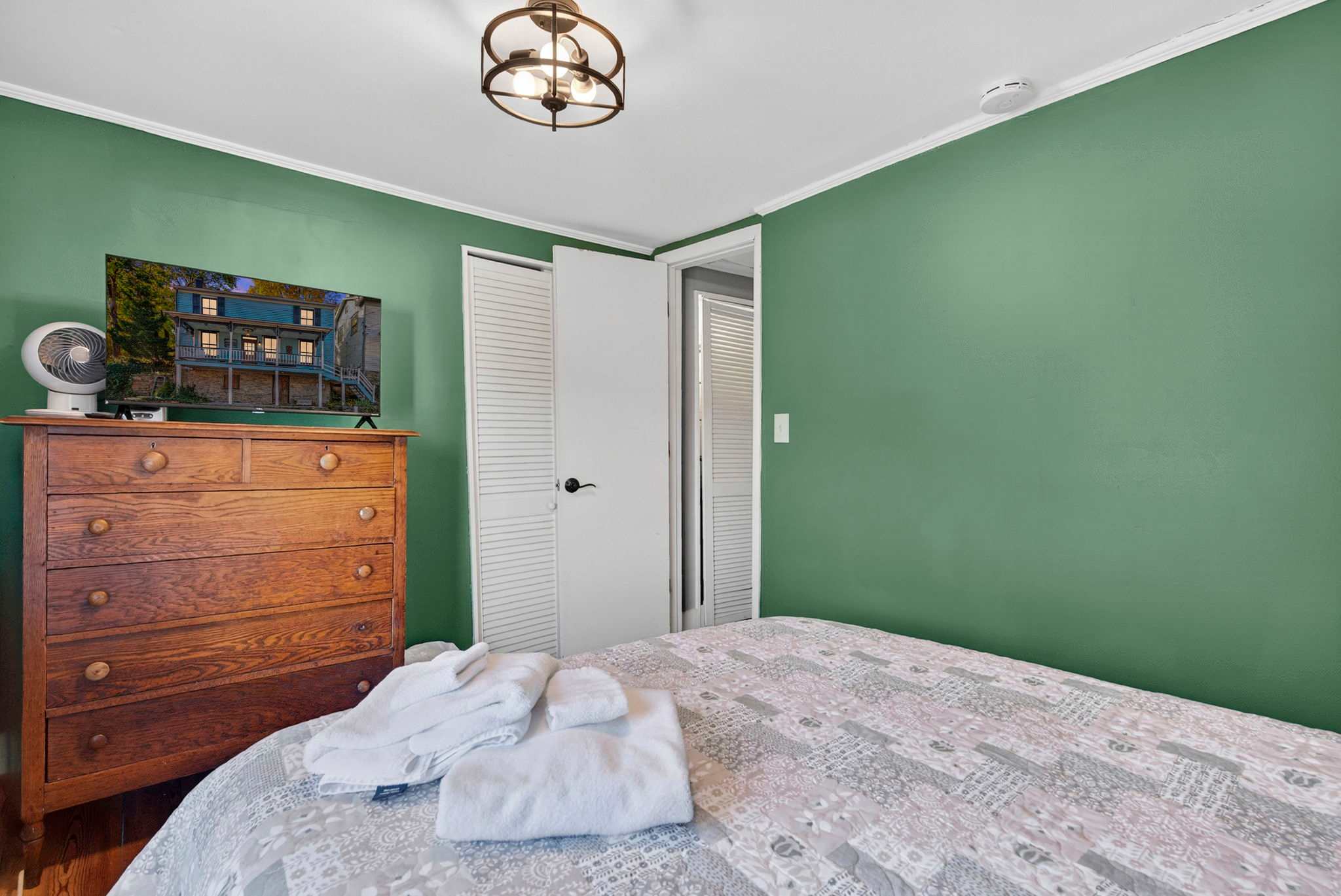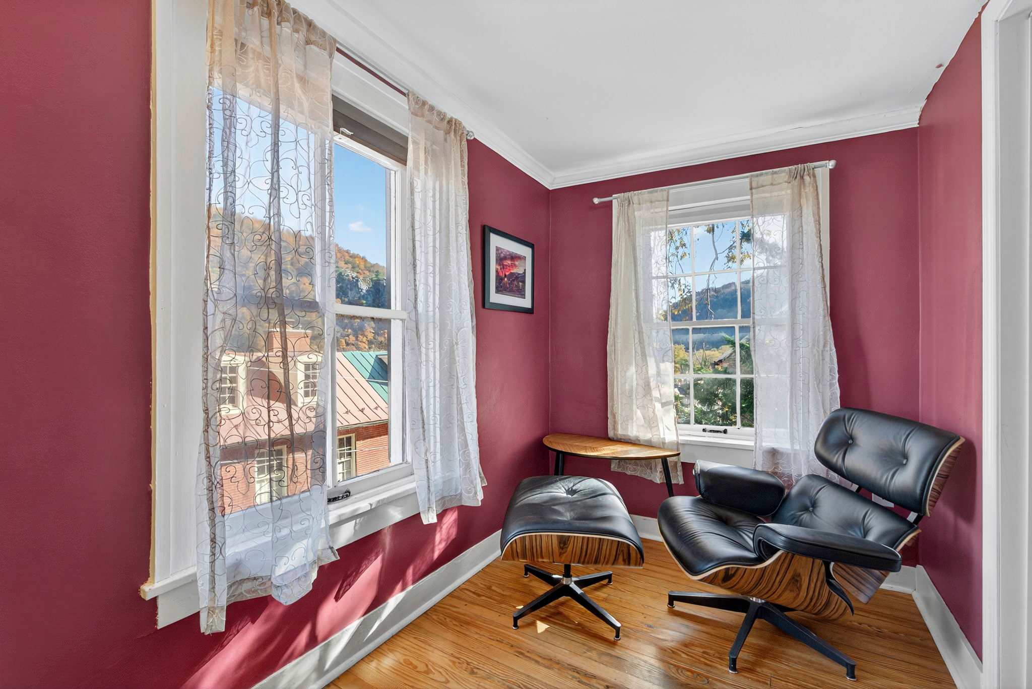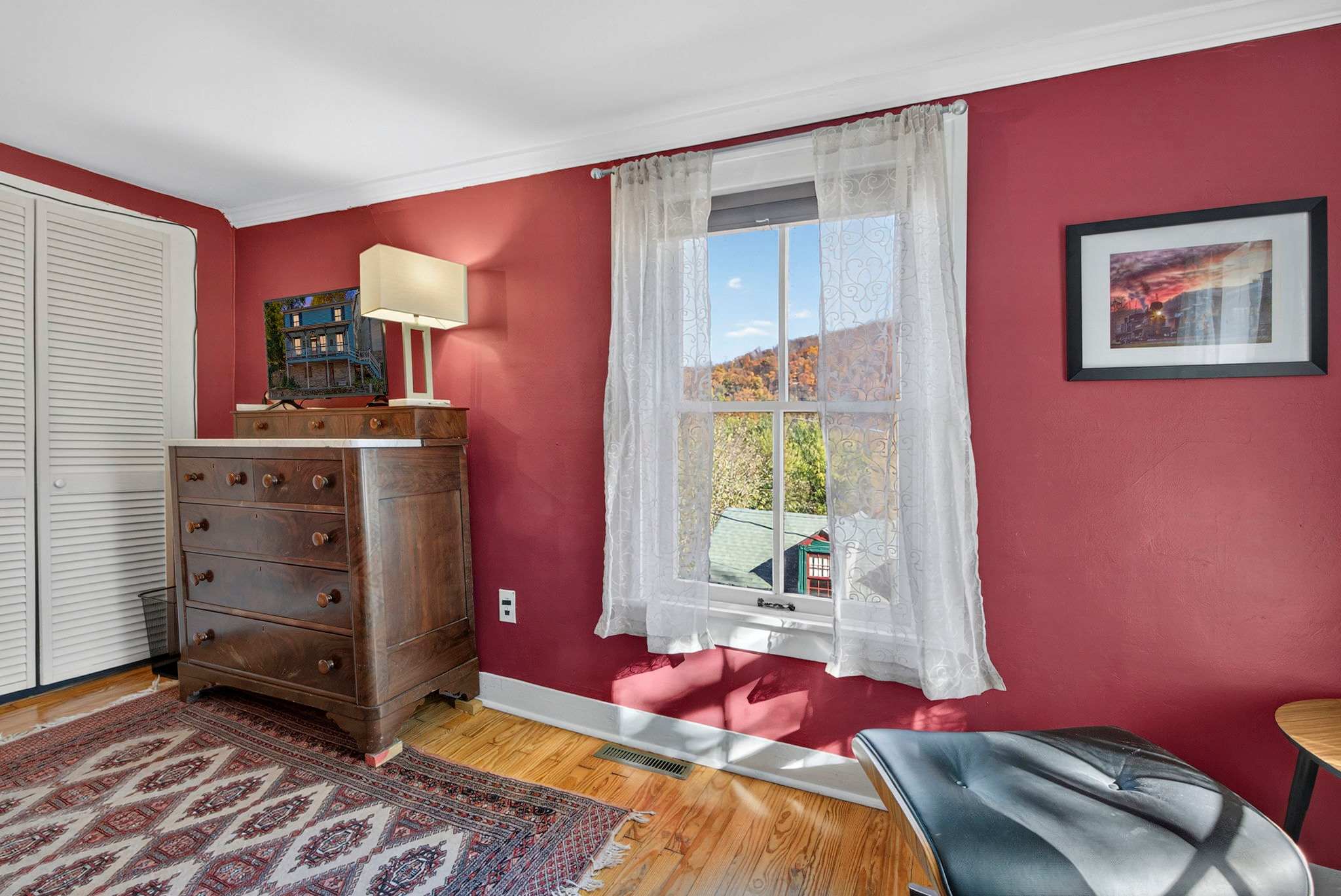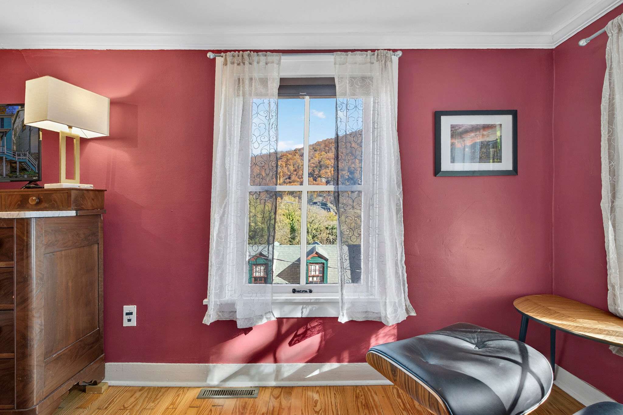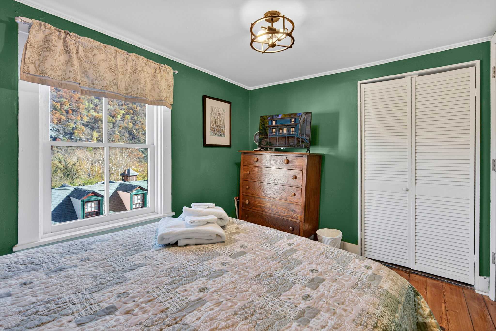 -Bedroom 2 (Upstairs): Features a comfortable queen bed and provides a peaceful and private space. Captivating views connect you to the town's history.