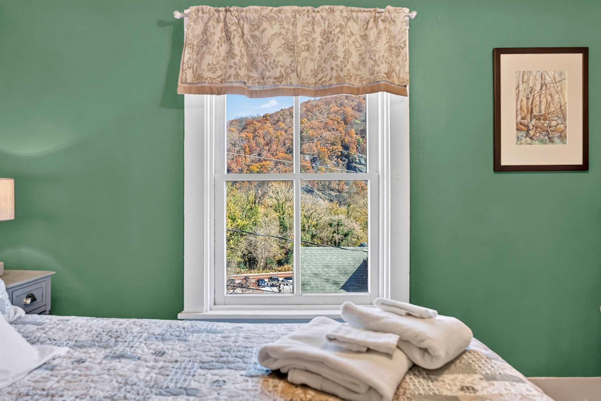 Experience the perfect blend of small-town charm and beautiful mountain views. Discover your perfect Harpers Ferry getaway. This centrally located, pet-friendly home offers a front-row seat to the town's history and stunning mountain views. Enjoy your private front porch with local shops just outside your door and easy access to hiking trails. It's the perfect base for exploring history and nature.
