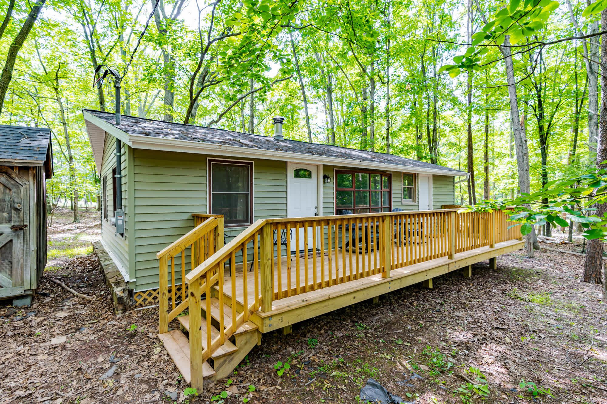 Our cleaning team sweeps the deck, stairs, and walkways before each arrival, but due to the natural setting, you may still notice some leaves, pollen, or similar—especially during certain seasons. We appreciate your understanding as nature tends to leave its mark, no matter how often we tidy up!