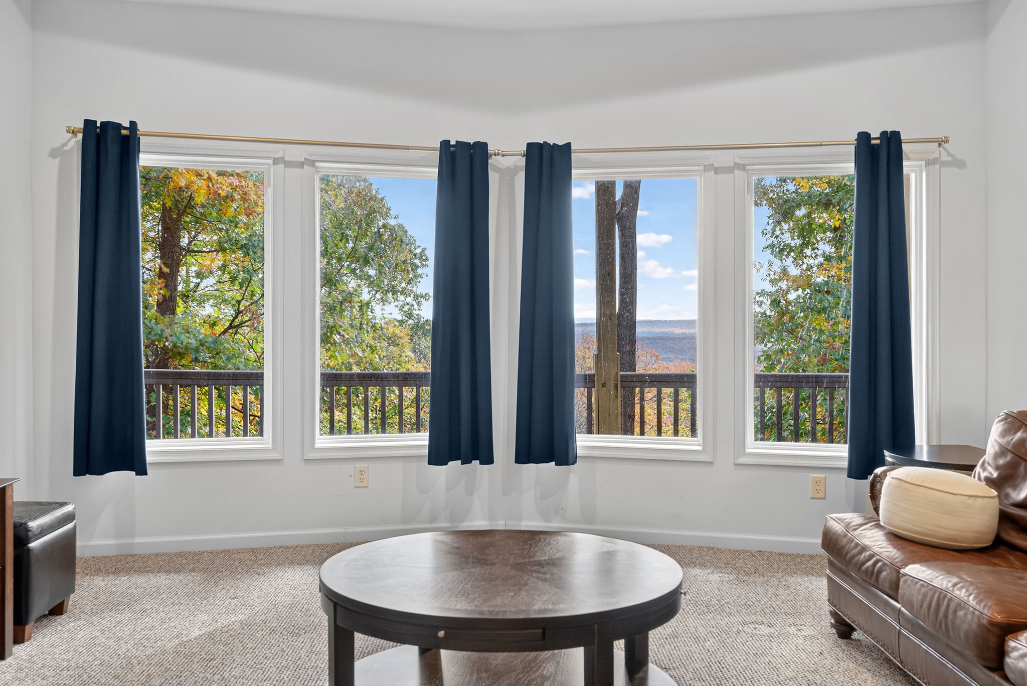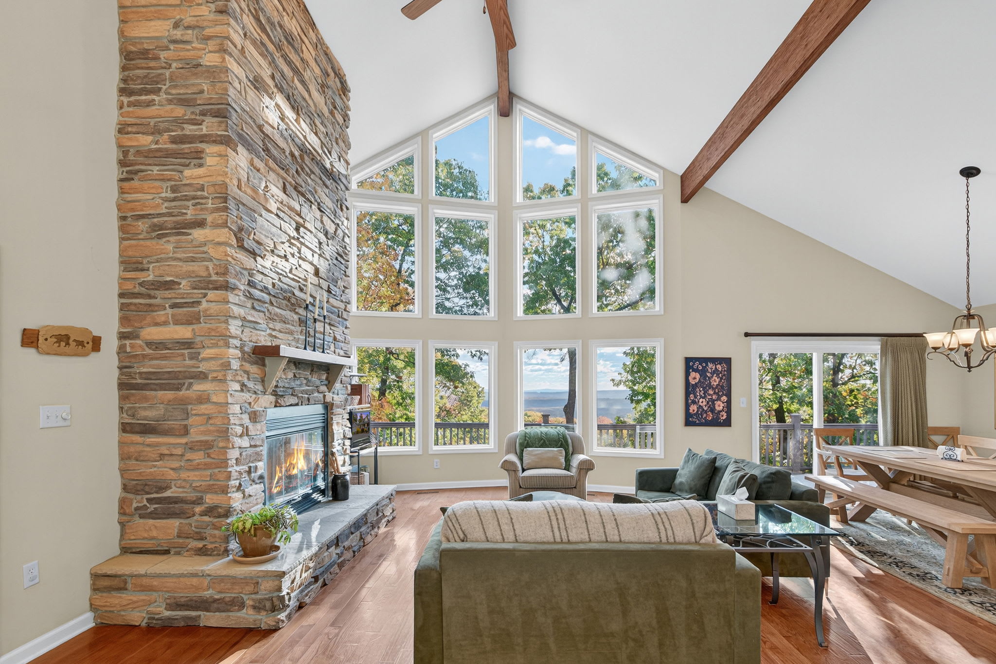 Escape to panoramic mountain views and pure relaxation at this retreat in The Woods Resort! Soak in the scenery through tall ceilings and floor-to-ceiling windows, or unwind on the spacious deck with nature all around you. Inside, enjoy a cozy stone fireplace, fully stocked kitchen, and a game-filled loft perfect for laid-back fun. And, we’re dog-friendly!