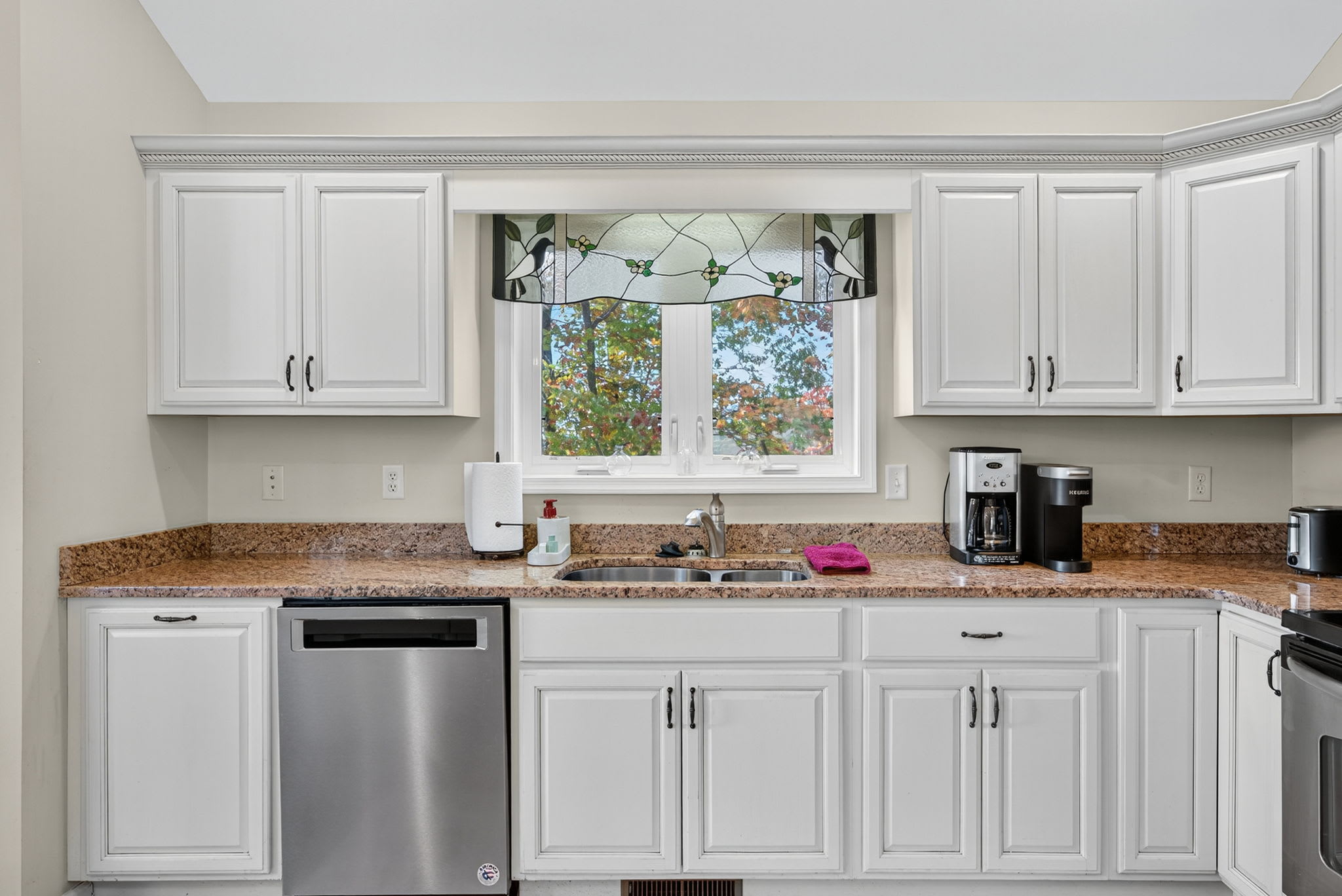 Fully stocked kitchen with refrigerator, oven/range, dishwasher, microwave, and keurig