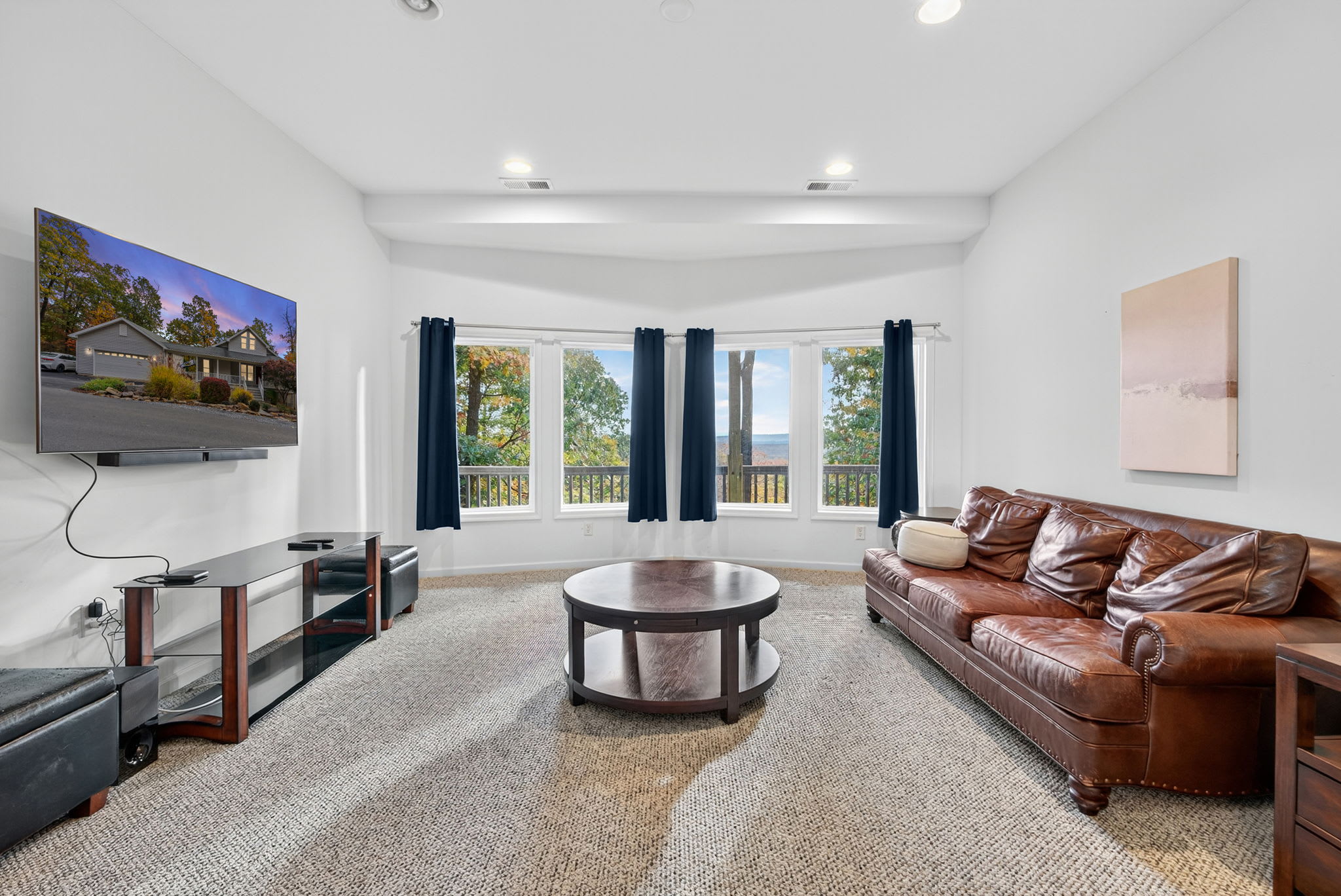 The open-concept kitchen is fully stocked with everything you need — refrigerator, oven/range, dishwasher, microwave, Keurig, and a bar for extra seating. The dining area flows into the spacious living room, where you can relax by the fire or gather for a fun family game night. But the real showstopper is outside: the stunning mountain view that made us fall in love with this home. Step onto the wraparound deck or screened porch to sip your morning coffee as the sun rises over the ridge — a magical moment filled with color and the gentle songs of mountain birds. It’s absolutely worth waking up early for.
