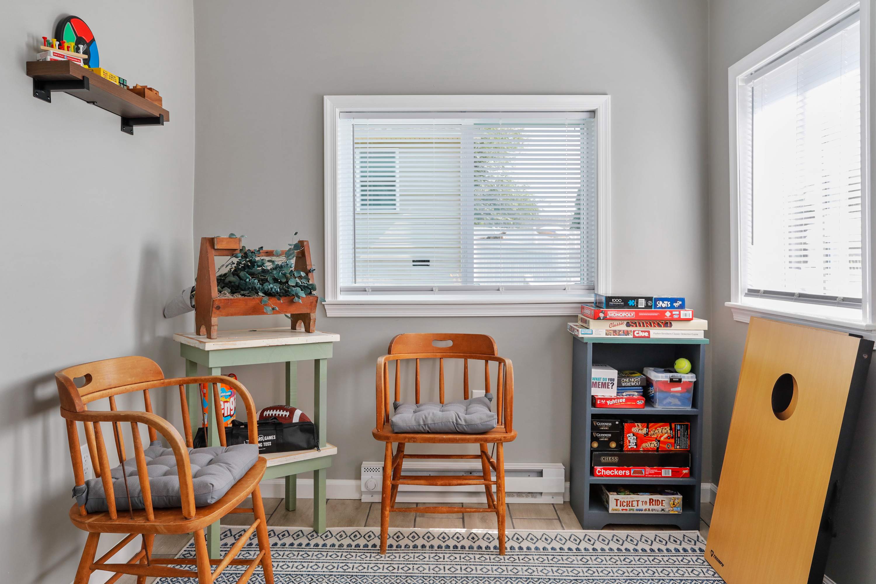 -Sunroom hangout space with games, books & Super Nintendo
