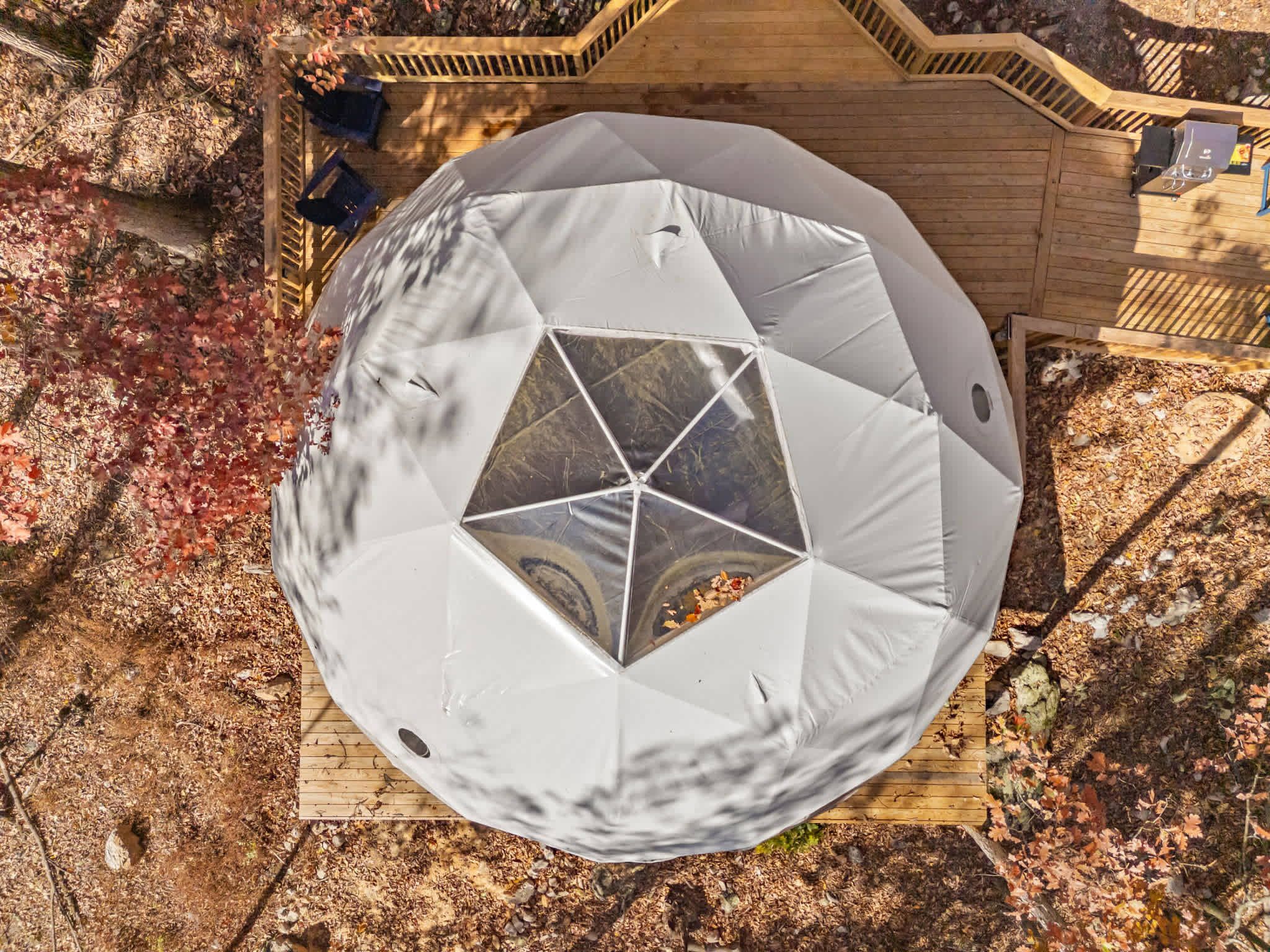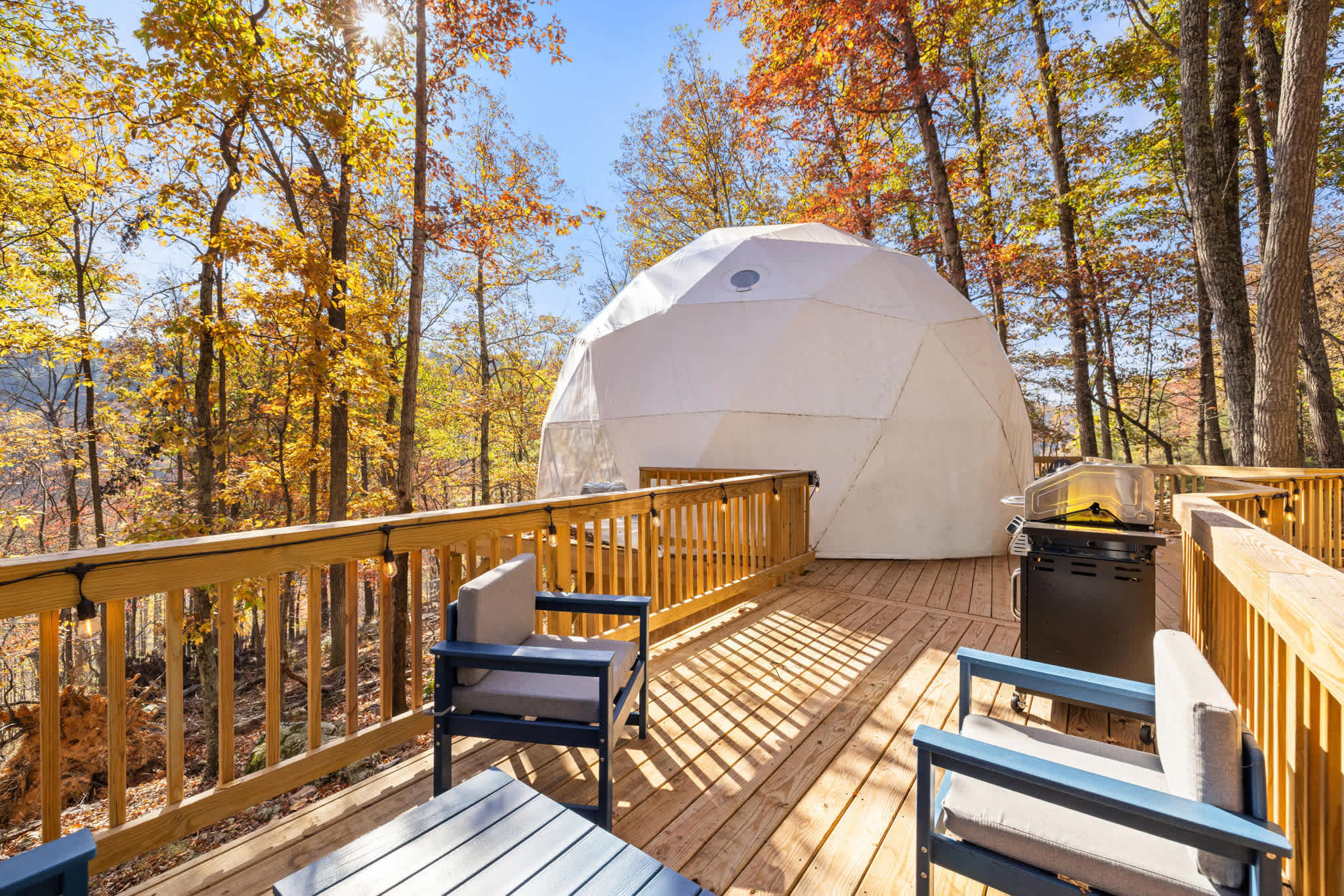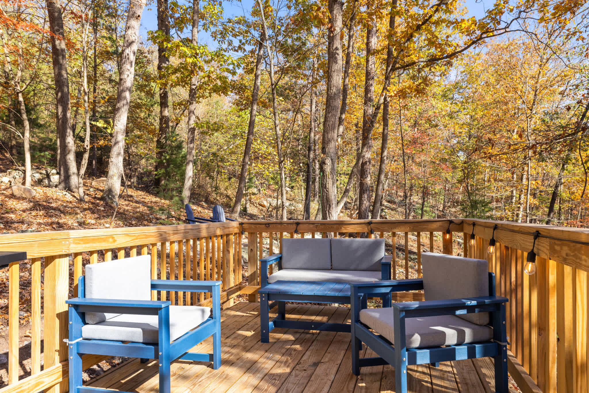 Our cleaning team sweeps the deck, stairs, and walkways before each arrival, but due to the natural setting, you may still notice some leaves, pollen, or similar—especially during certain seasons. We appreciate your understanding as nature tends to leave its mark, no matter how often we tidy up!