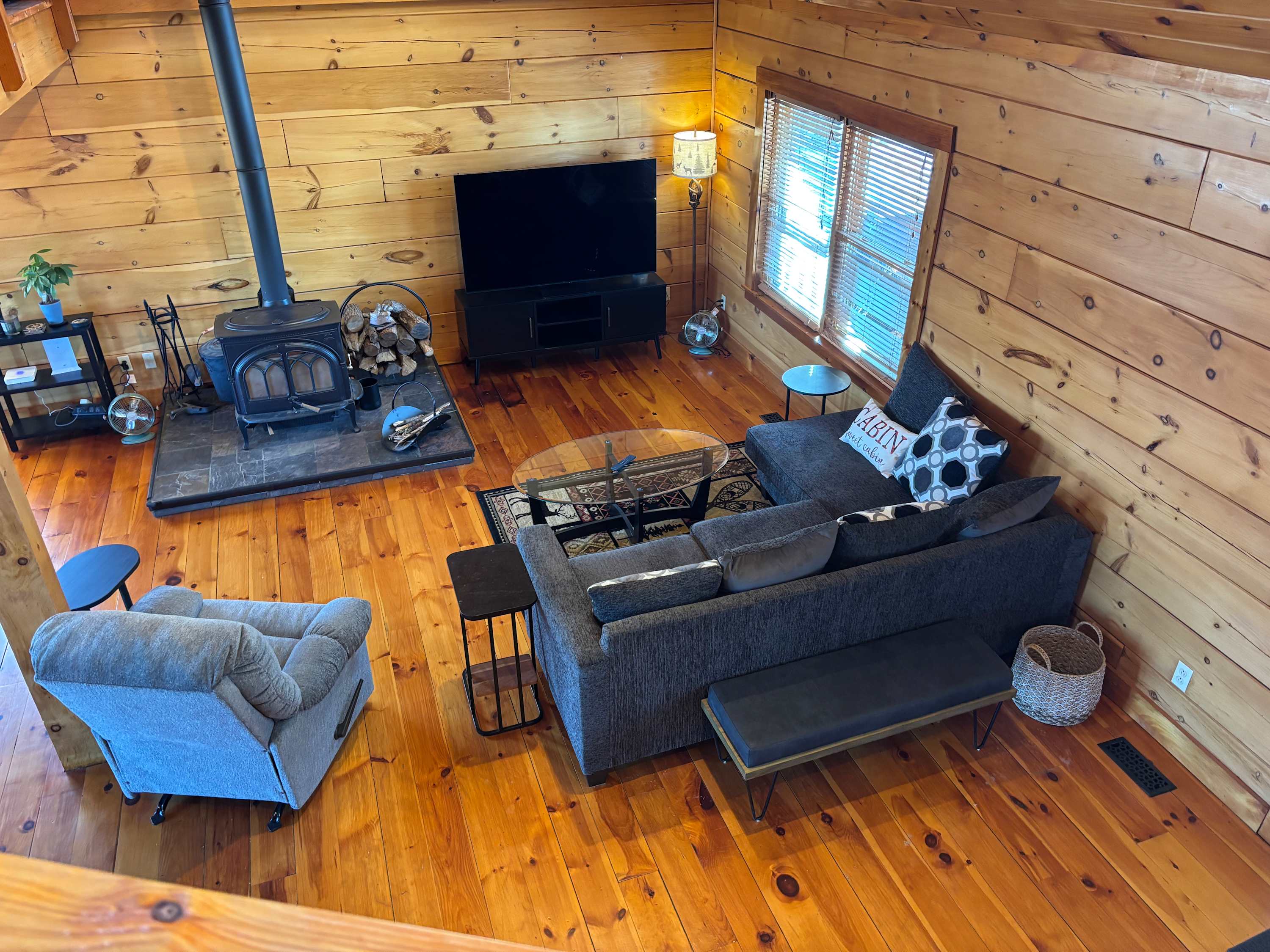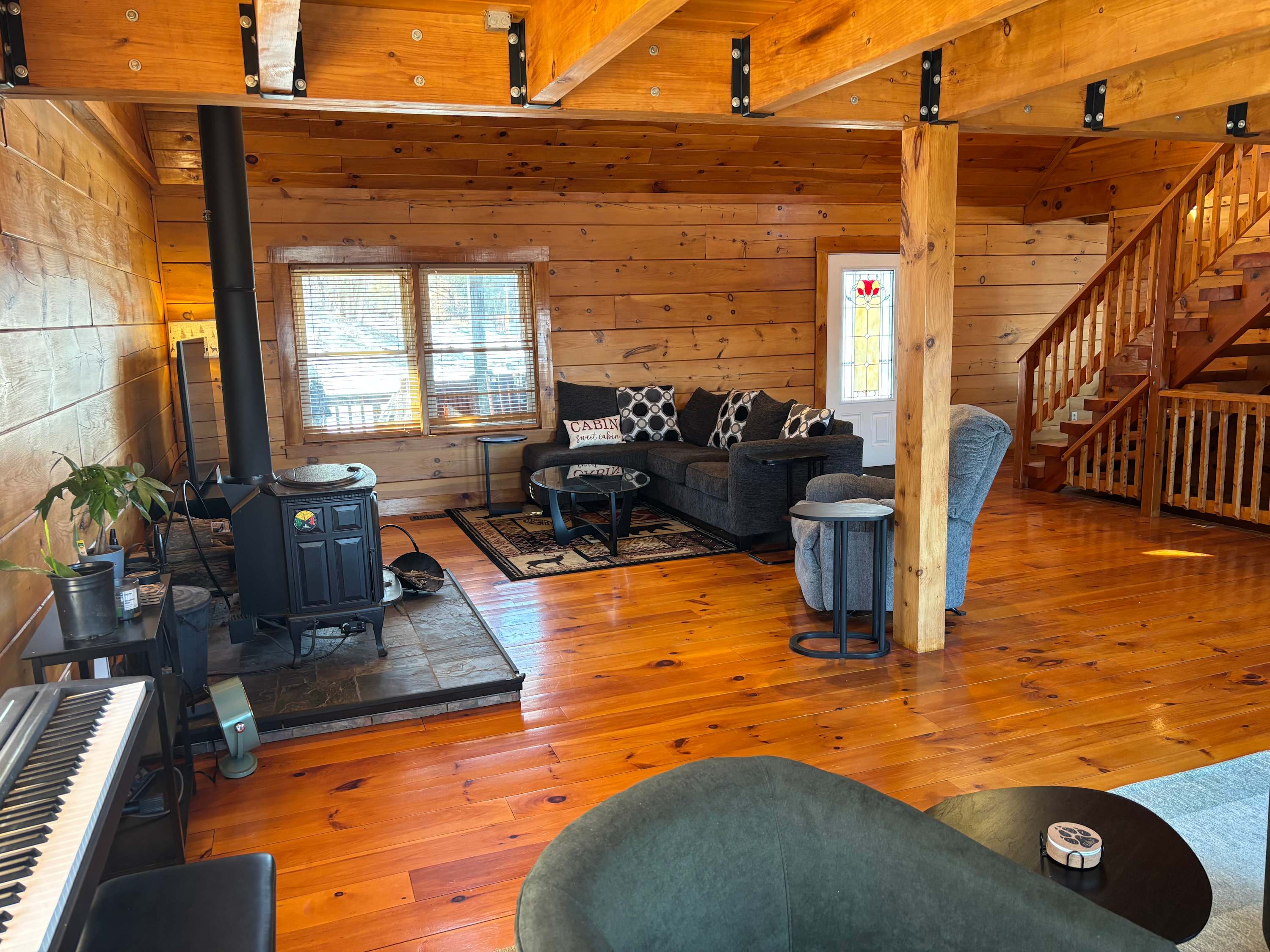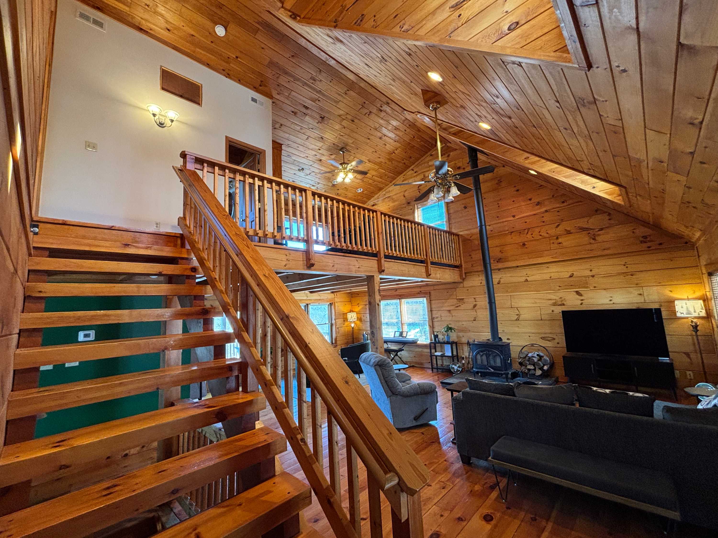 Inside, warm wood finishes, a cozy wood-burning stove, and plenty of comfortable seating create the perfect gathering space. Enjoy family sing-alongs on the keyboard, friendly competition in the game room with a ping-pong table, or movie nights on the smart TV. Multiple indoor and outdoor hangout areas make it easy for everyone to spread out and relax.