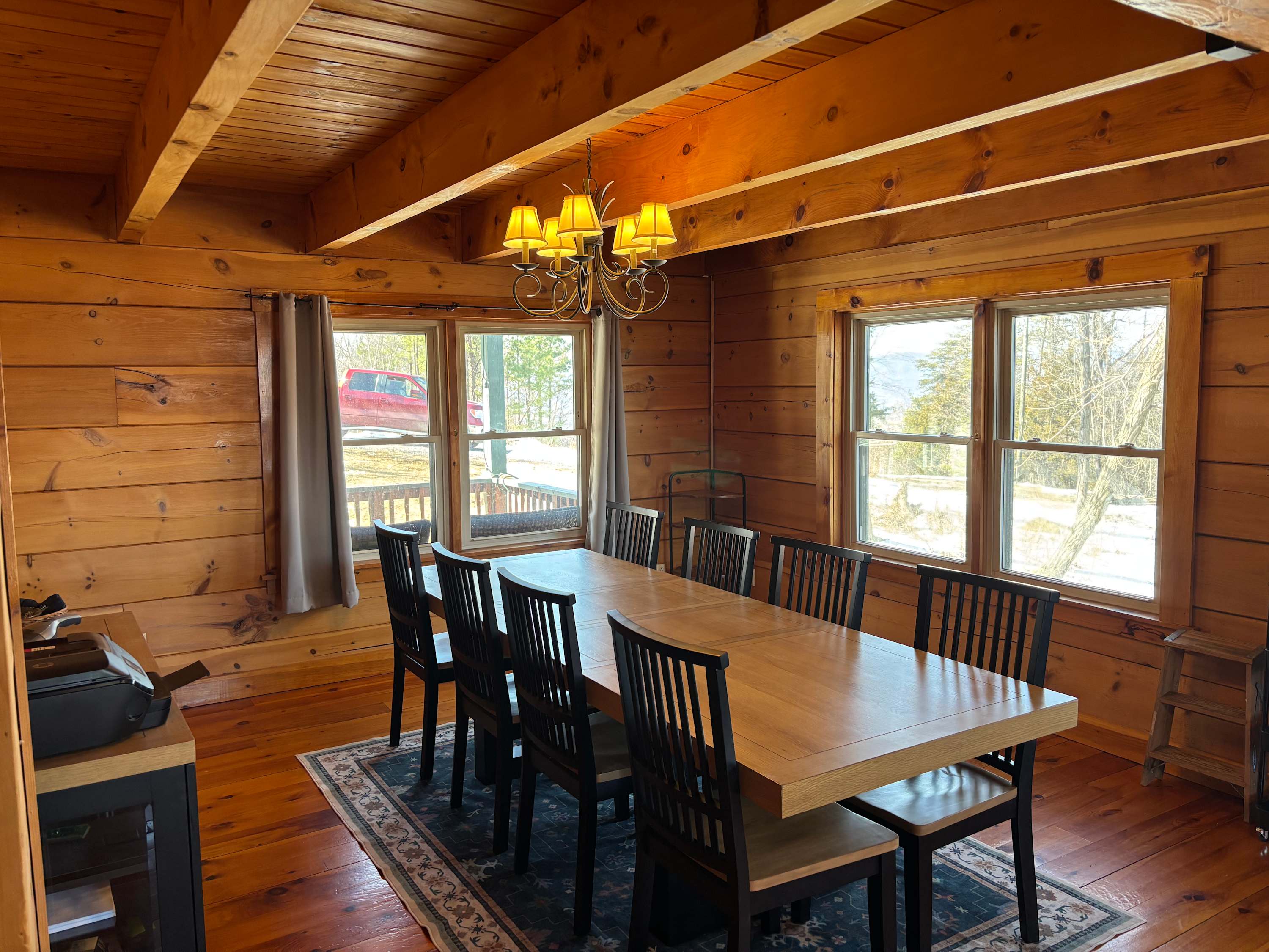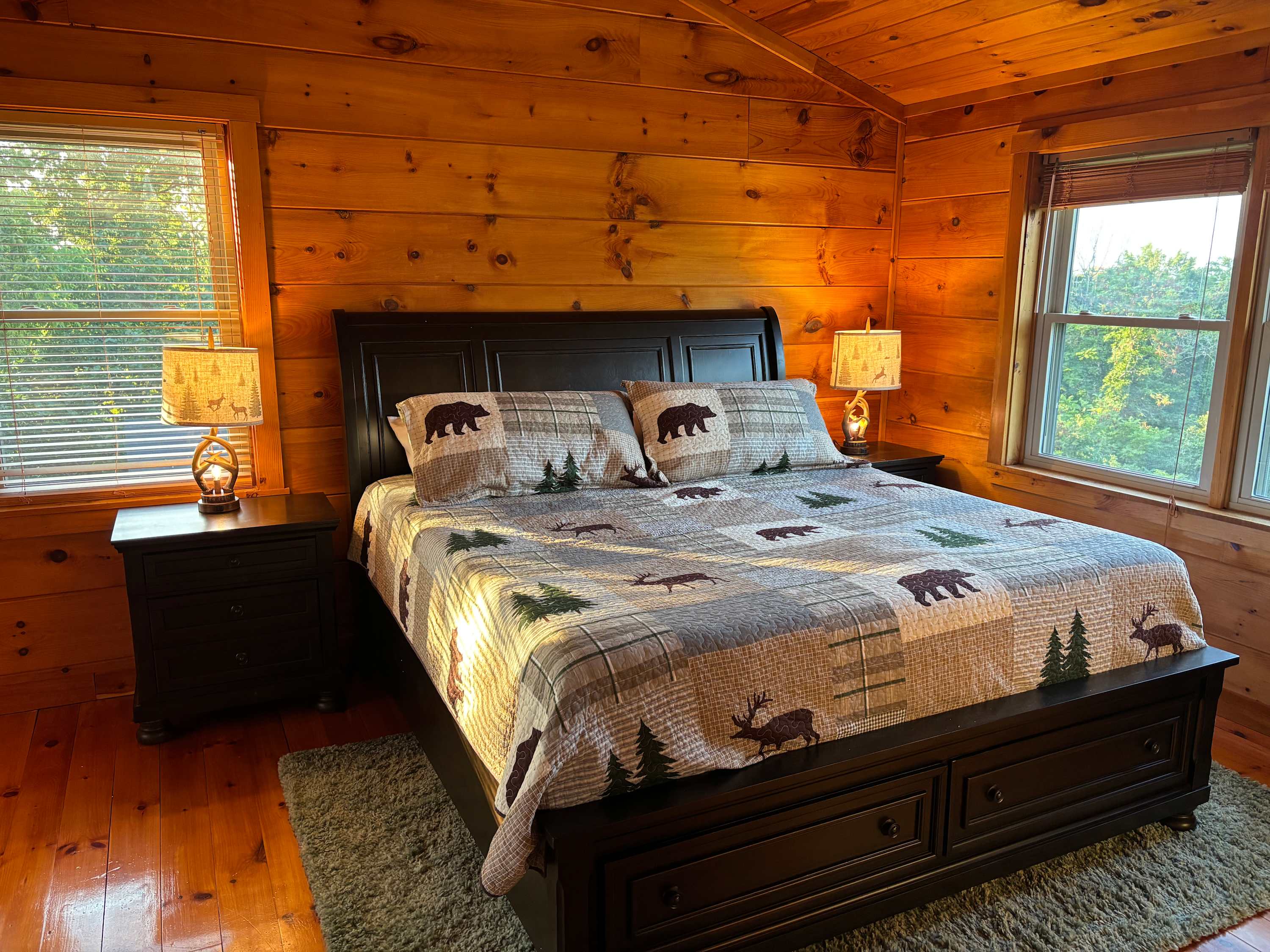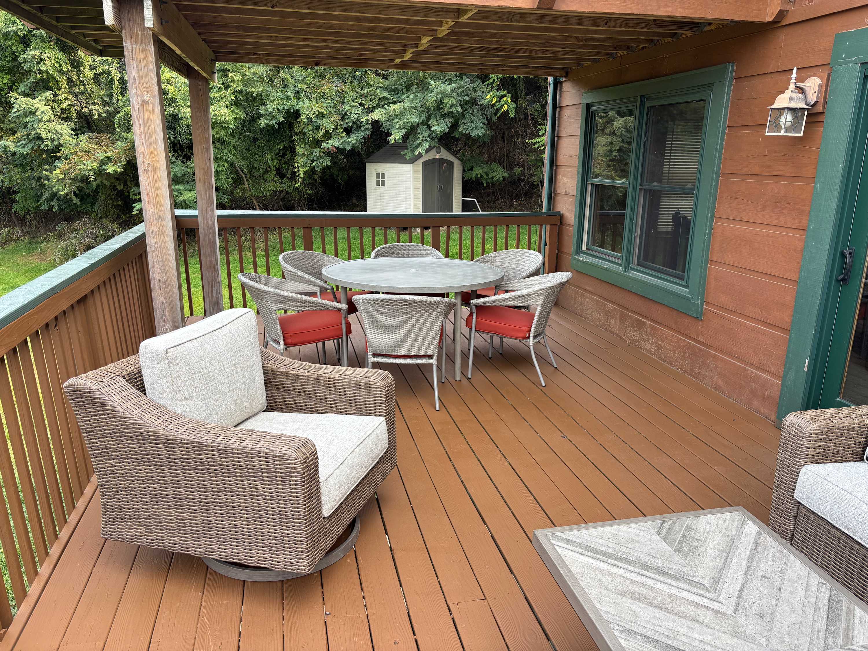 Relax and unwind on the upper and lower decks, gather around the fire pit, or grill your favorite meals. Multiple seating areas offer scenic views of the orchard, creek, and pond—perfect for morning coffee, sunset watching, or enjoying time with family and friends.