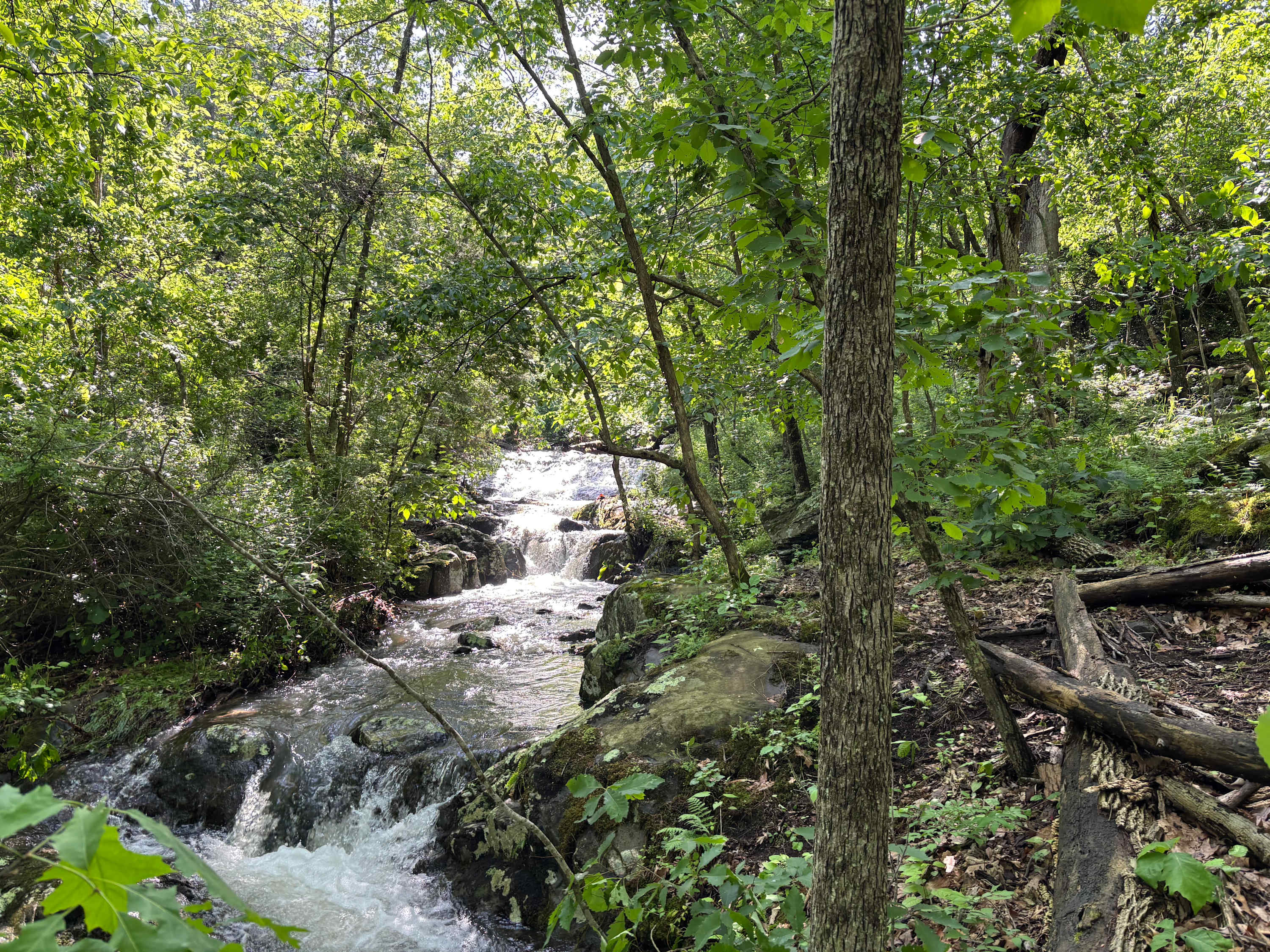 Private trails throughout the property, leading to an observation deck near waterfalls where the land borders Shenandoah National Park—a favorite spot for views and quiet reflection.