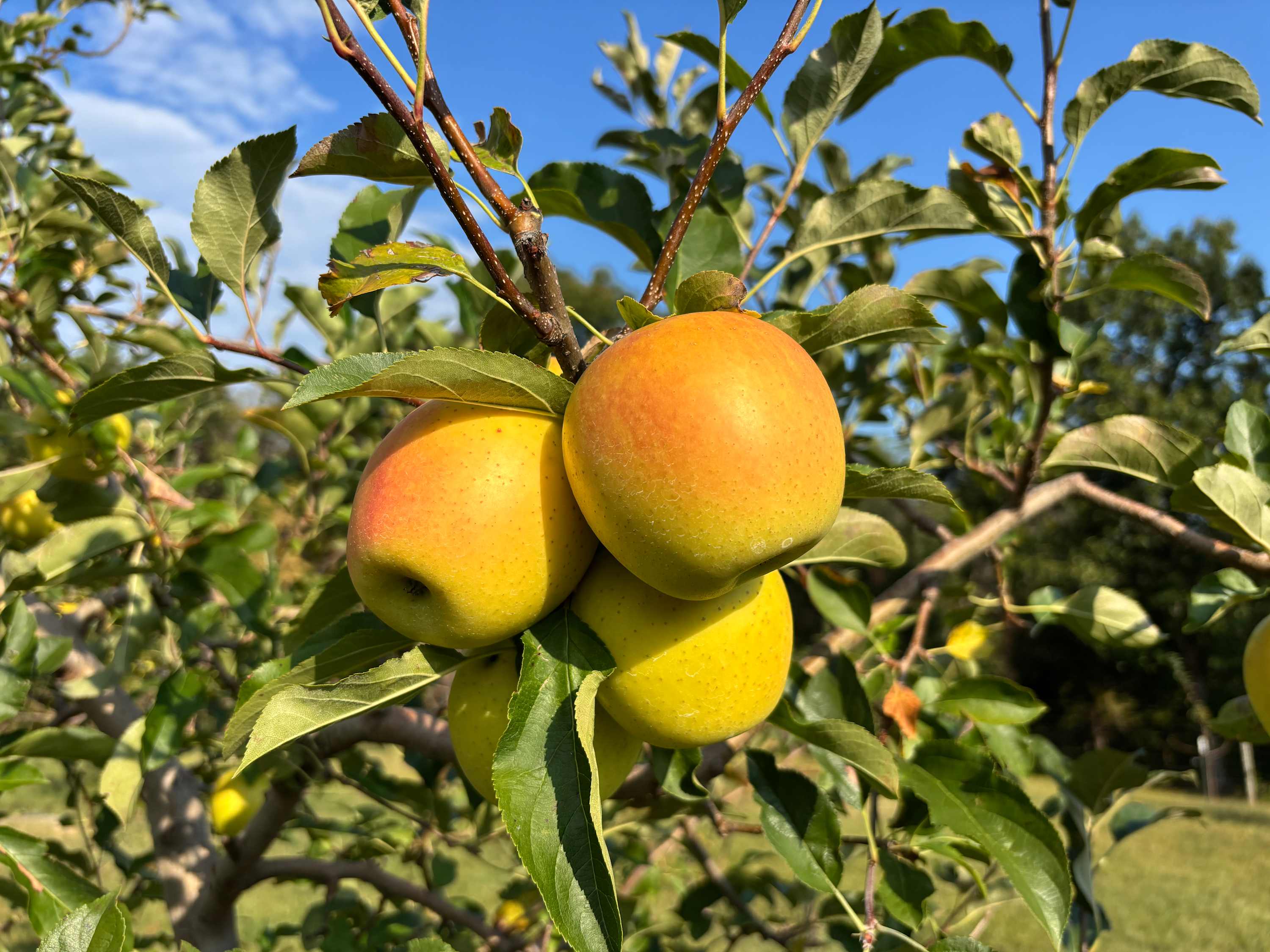Orchard with nearly 200 fruit trees, including 9 apple varieties, peaches, and pear trees. Guests may stroll the orchard and enjoy pick-your-own fruit in season.