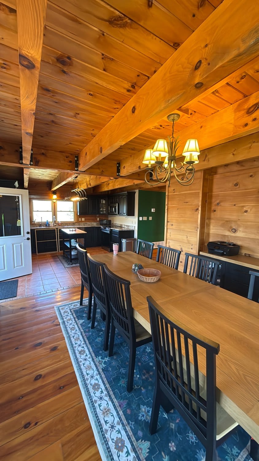 An updated, fully stocked kitchen designed for cooking, gathering, and making memories together. The dining area flows directly onto the deck, making it easy to enjoy meals indoors or outside.