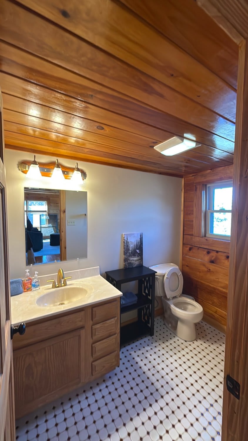 The home features three comfortable bedrooms and multiple bathrooms. Please note that, at this time, all guests will need to use the full shower located in the basement bathroom. Additional bathroom updates are planned in the future.