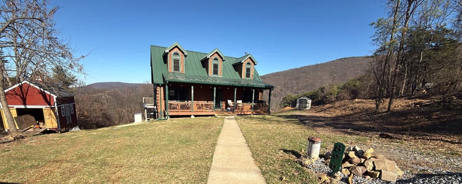 Step outside to soak in the scenery from upper and lower decks, grill your favorite meals, or gather around the fire pit under a sky full of stars. Explore nearly 200 fruit trees in the orchard—including nine apple varieties, peaches, and pears—with pick-your-own fruit available in season. Private trails wind throughout the property, leading to an observation deck near waterfalls where the land borders Shenandoah National Park—a favorite spot for stunning views and quiet reflection.