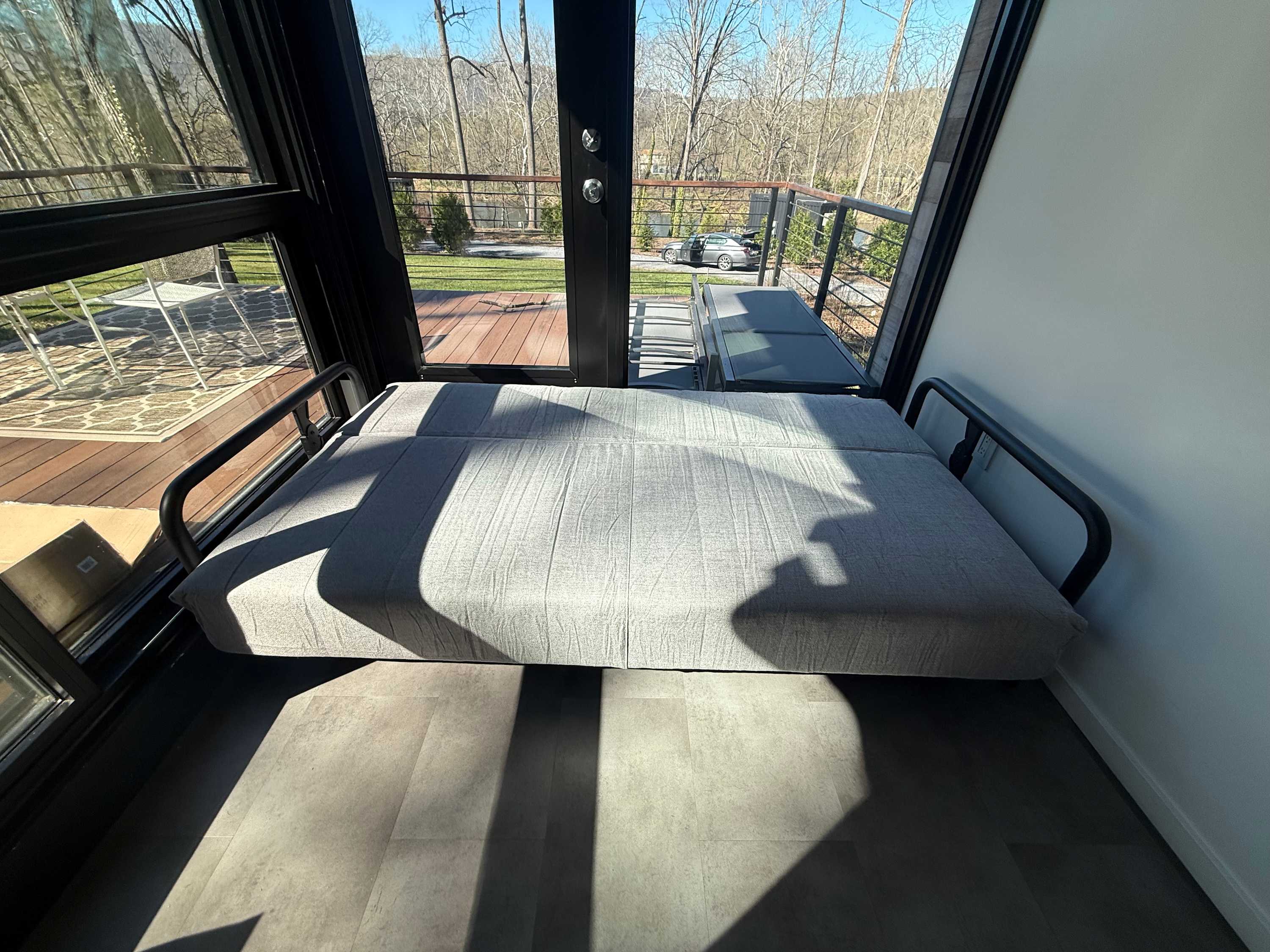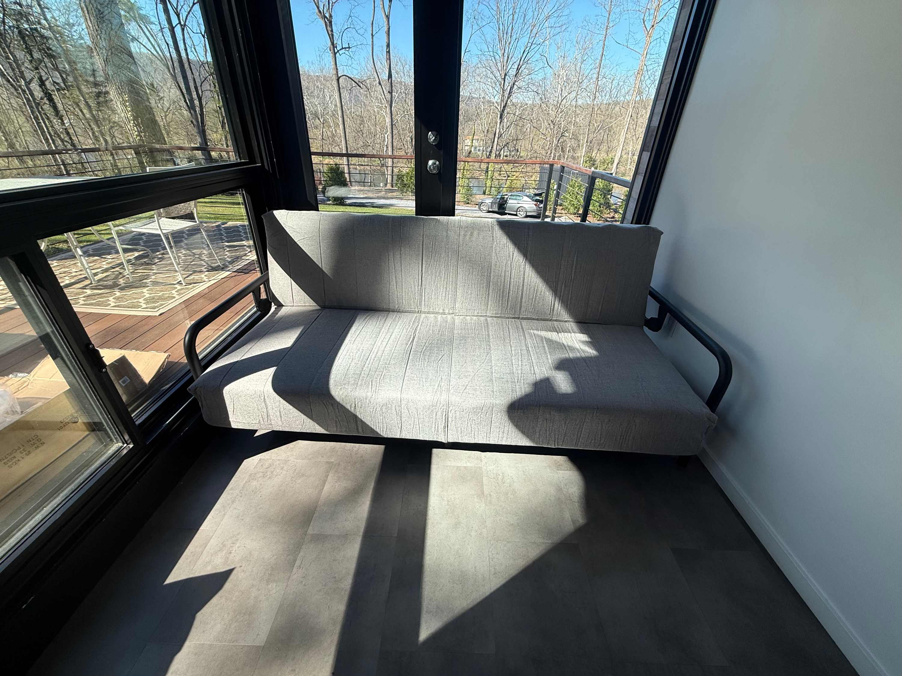 *Please note (3/26/26), the sofa bed pictured is being replaced and we are awaiting delivery.In the meantime, we have temporarily installed a new futon that converts to a bed. We are expecting the new sofa bed to be delivered within the next couple of weeks. Our apologies for any inconvenience.