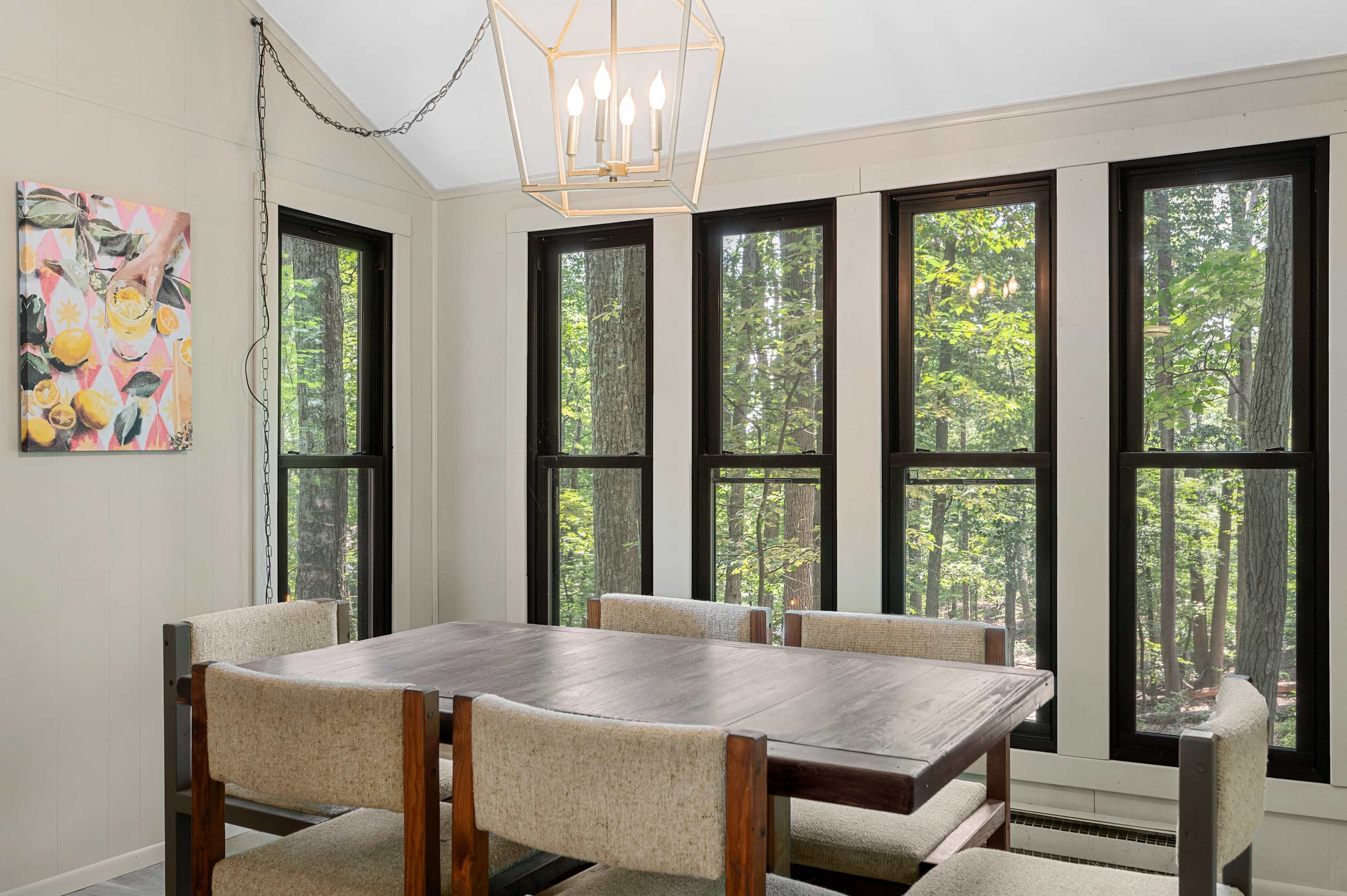 Modern, light-filled cabin in The Woods resort near Berkeley Springs. Two bedrooms plus loft, soaring ceilings, updated kitchen, and spacious living areas. Enjoy a private deck with outdoor dining, fire pit, string lights, and wooded views—perfect for relaxing or exploring nearby.