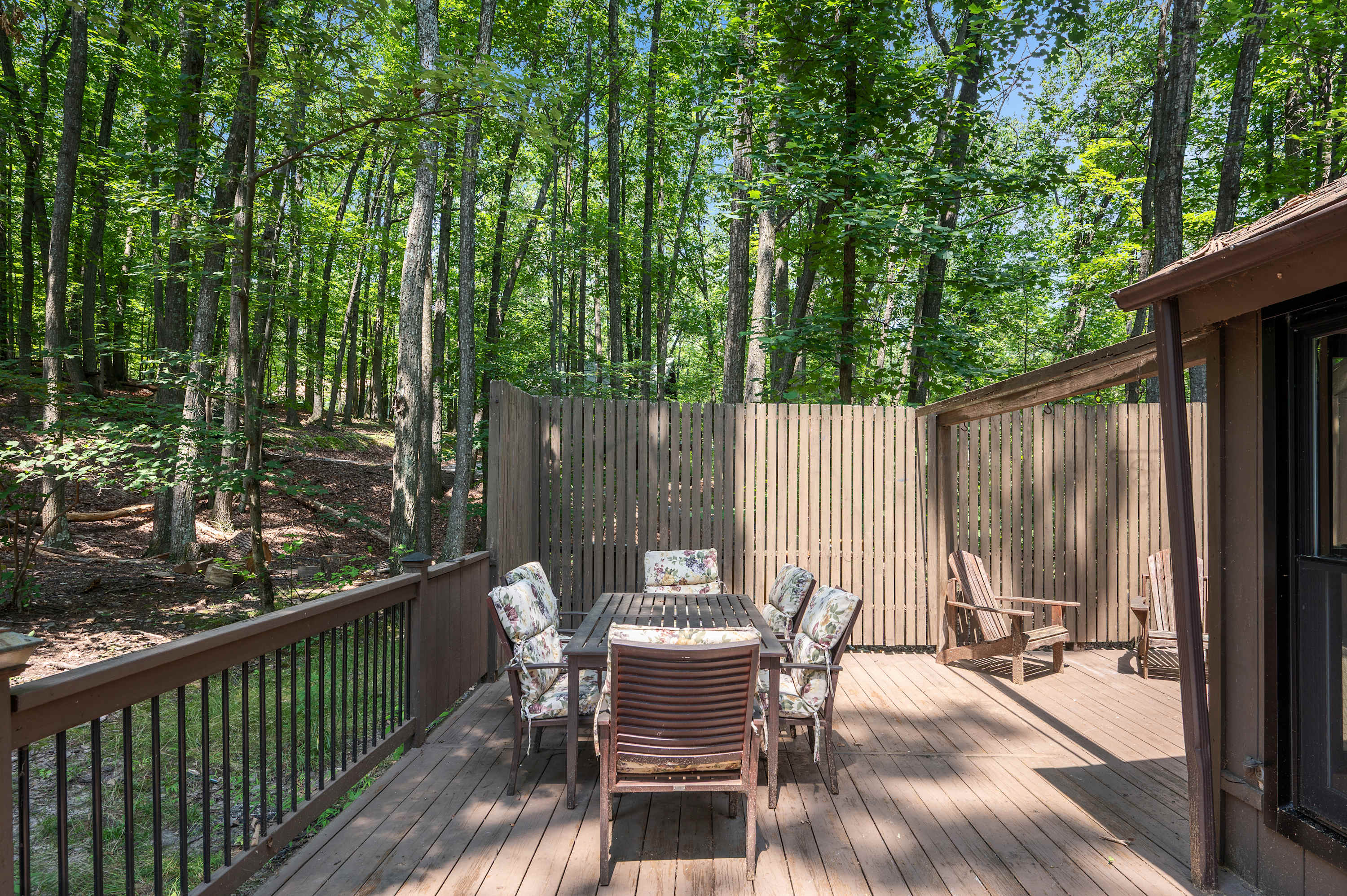 Spacious deck with privacy panels and outdoor dining