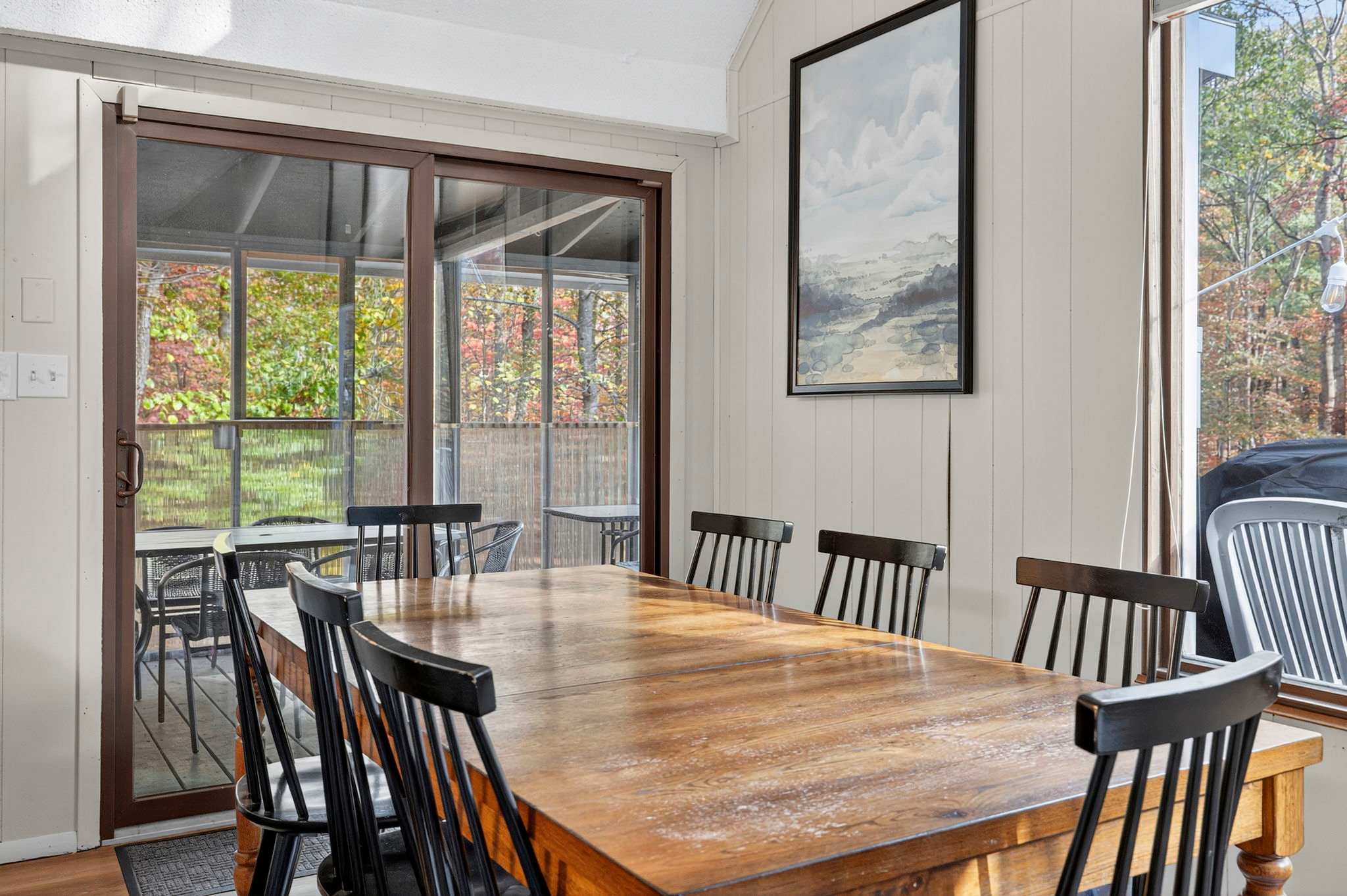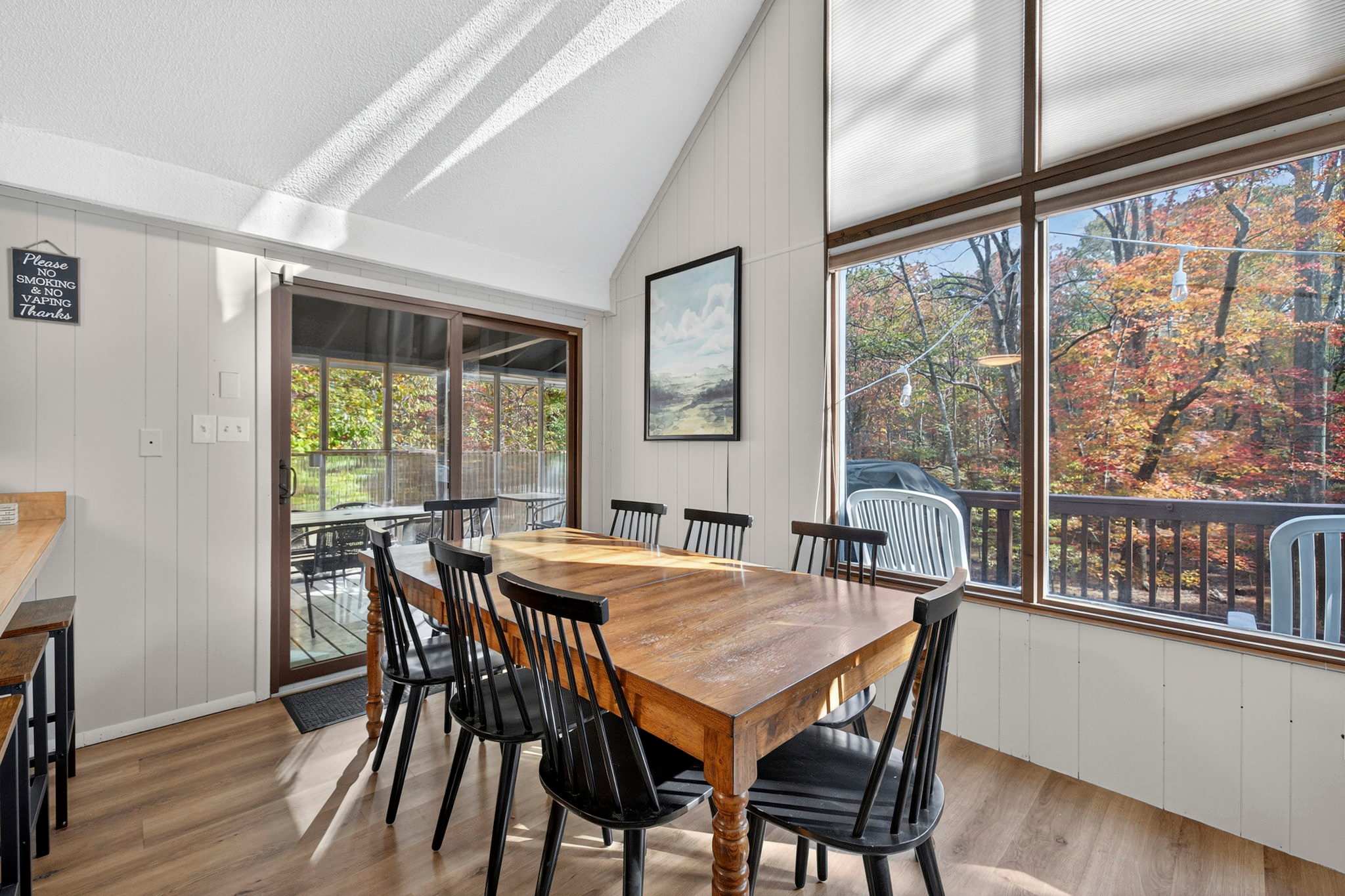 Sleepy Creek Chalet is a spacious, family-friendly chalet tucked away quietly in the woods near hiking, golf and more!