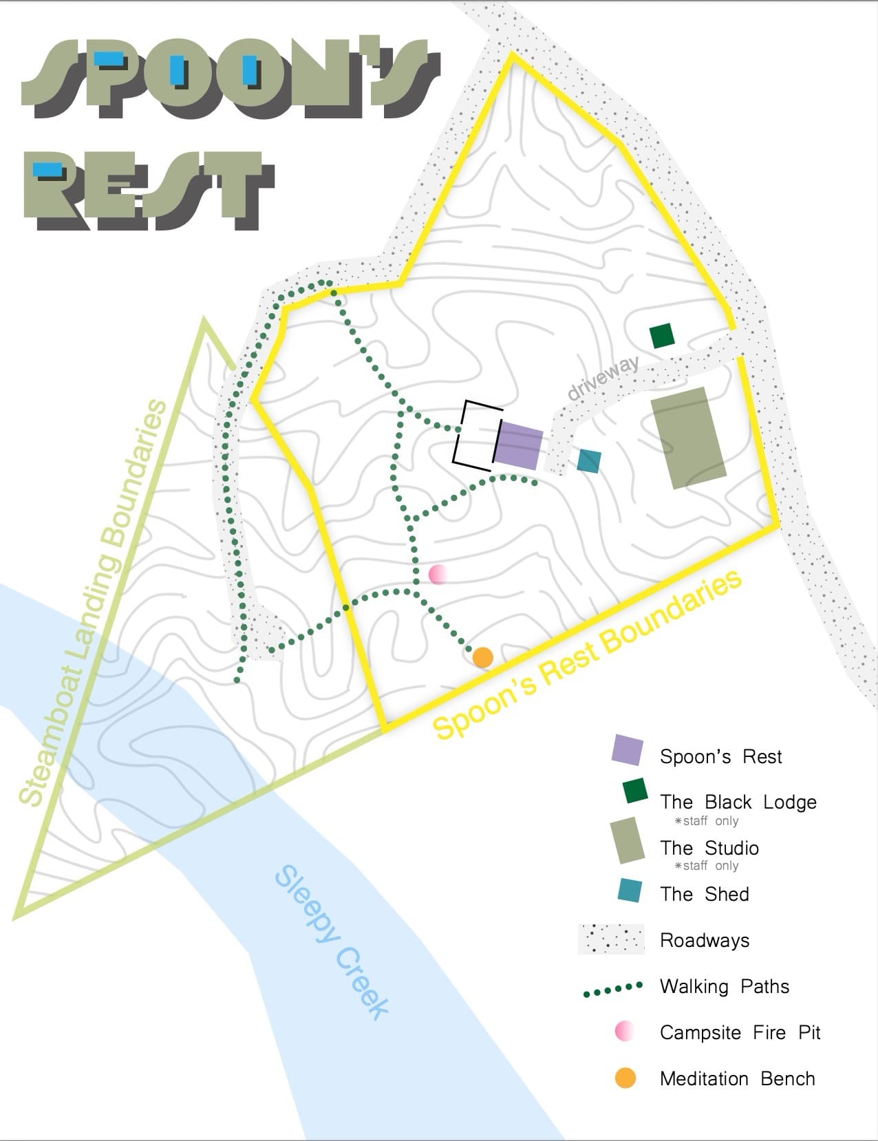 For your awareness, the property includes a studio located approximately 250 feet from the cabin. It’s clearly marked with a “Studio” sign, and you’ll pass it on the way to Spoon’s Rest. The studio is used occasionally by the owners, who may be on-site during part of your stay — though they are rarely present and the studio is not visible from the cabin, ensuring you’ll still enjoy privacy and seclusion. They may also have their small, friendly dogs with them when visiting.