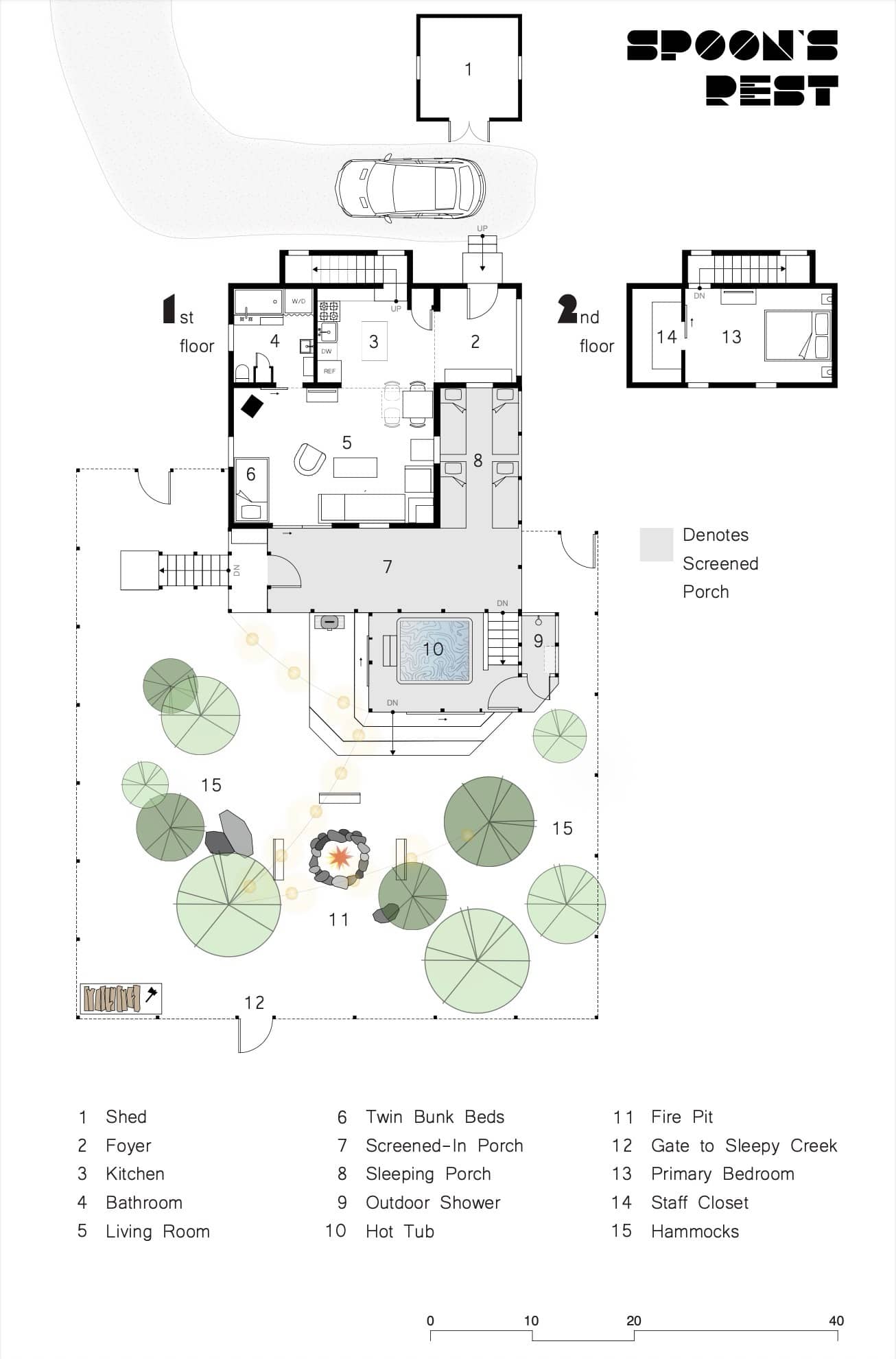 -Screened-in porch features 4 cots—bring your own sleeping bag for a seasonal sleeping option.