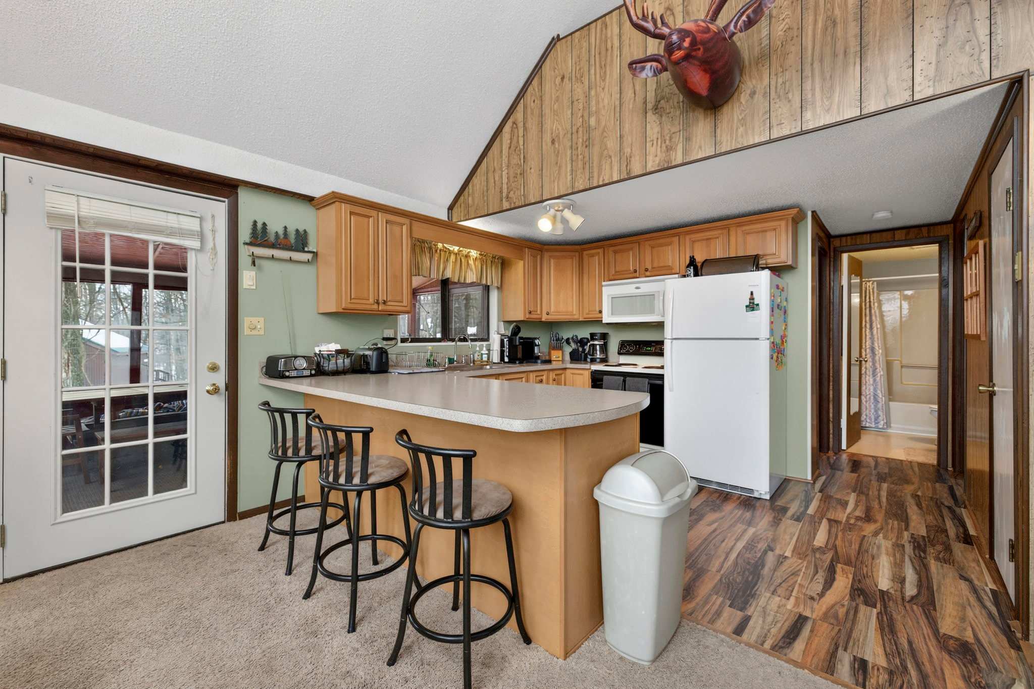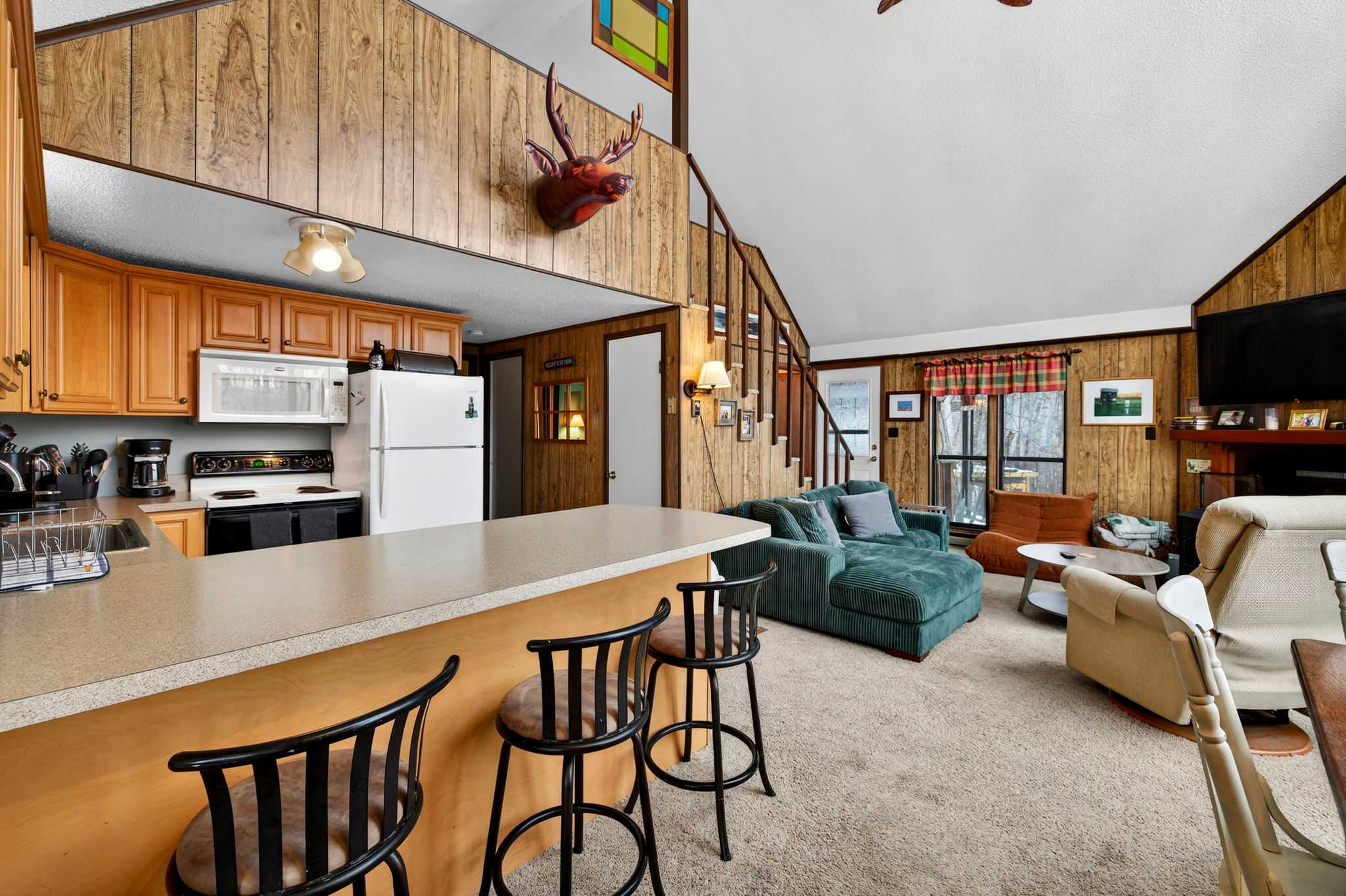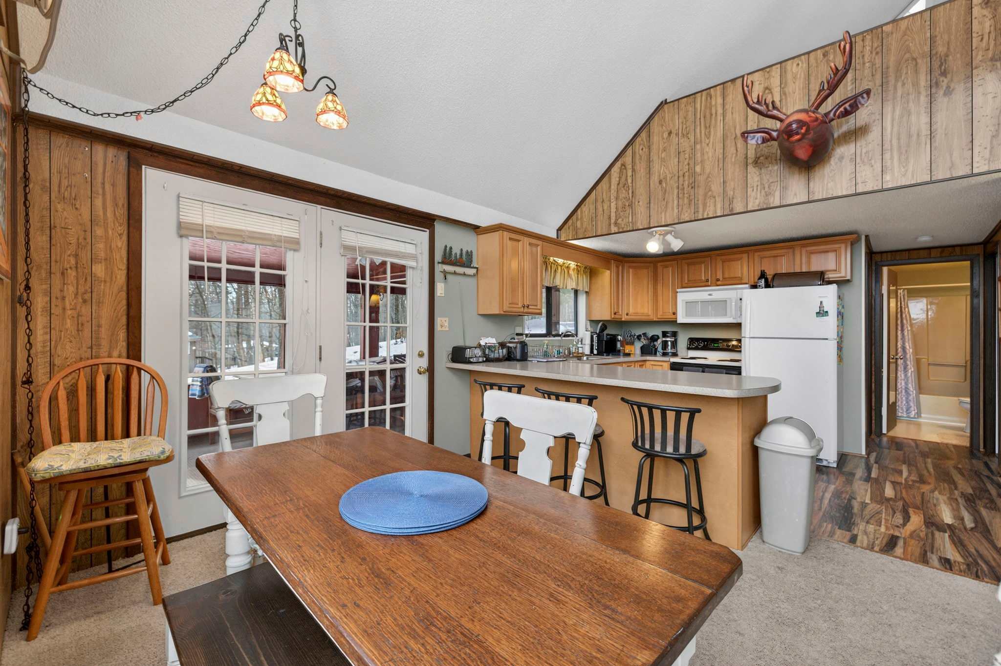-Dining table and kitchen bar seating for extra space