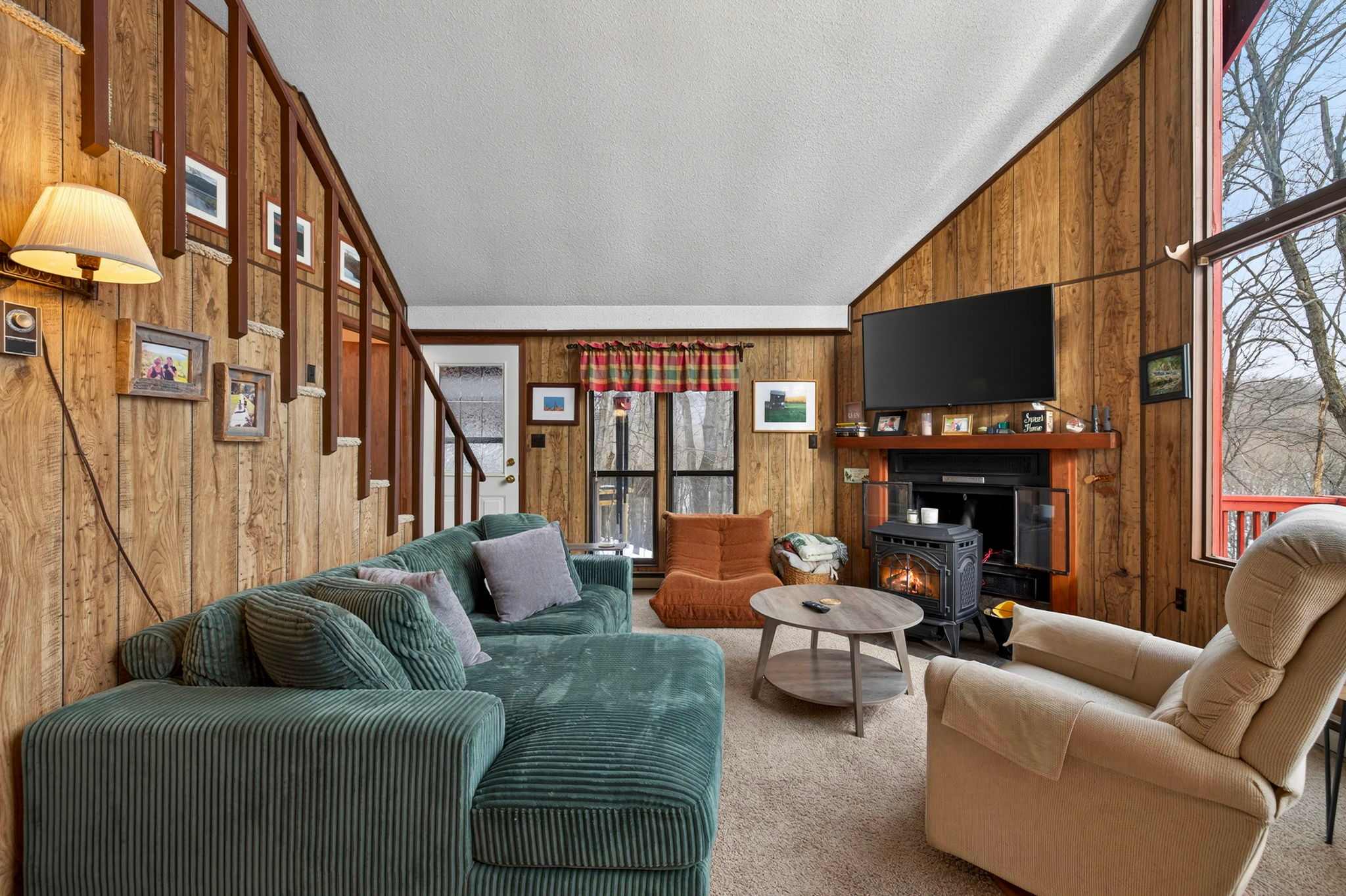 Pellet stove & finished basement hangout space
