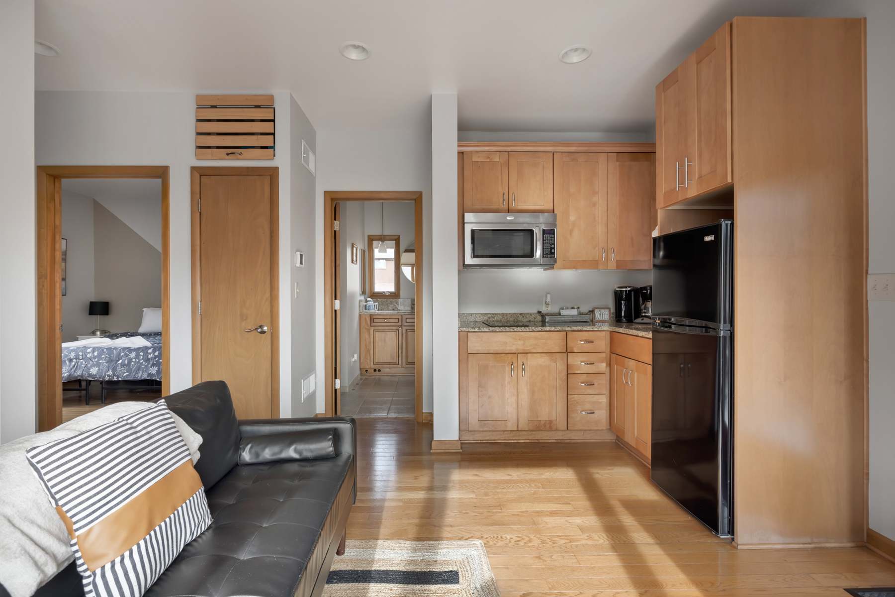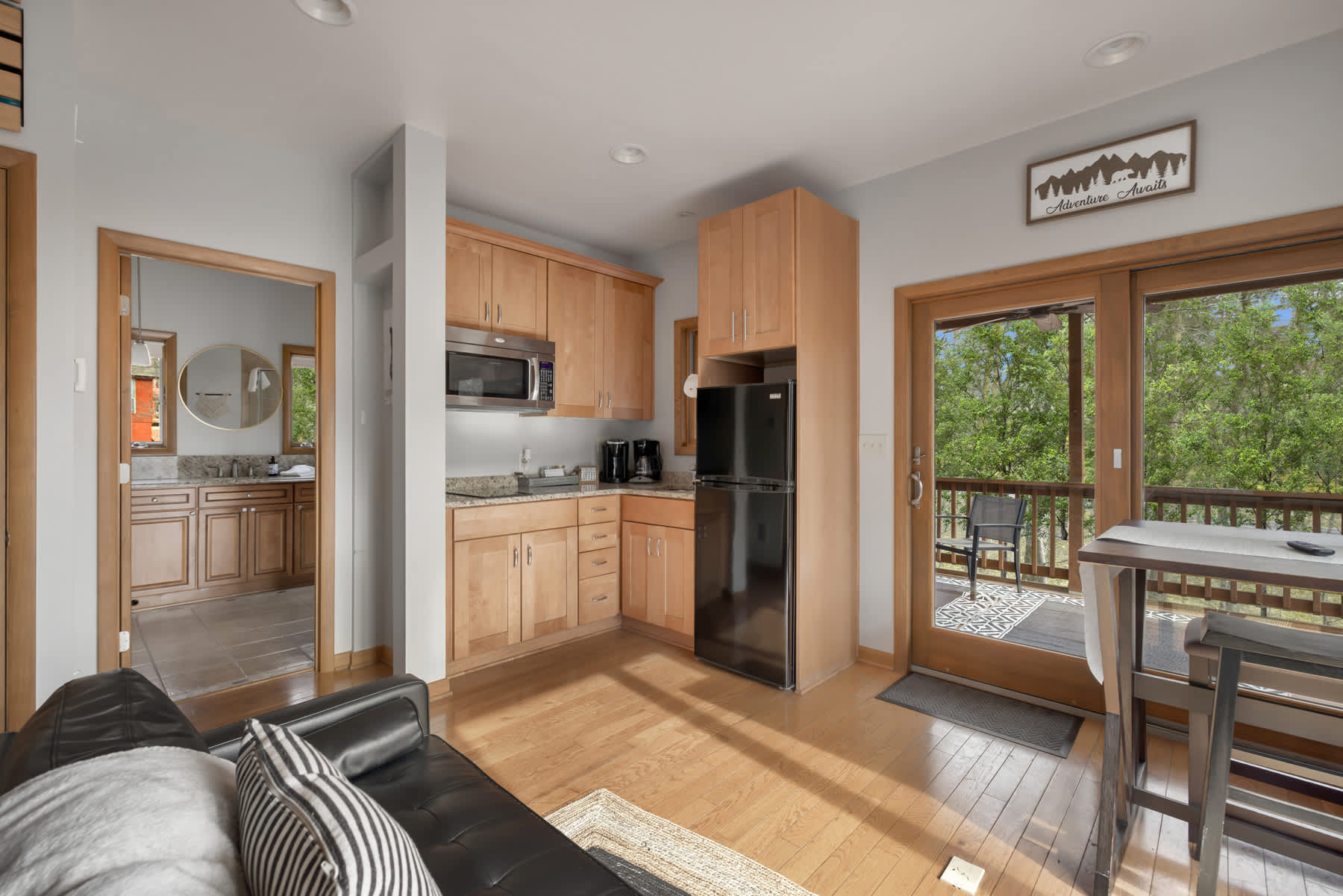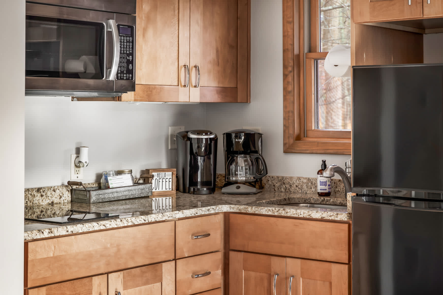-Efficiency kitchen: microwave, Keurig, sink, fridge/freezer & 2-burner stovetop