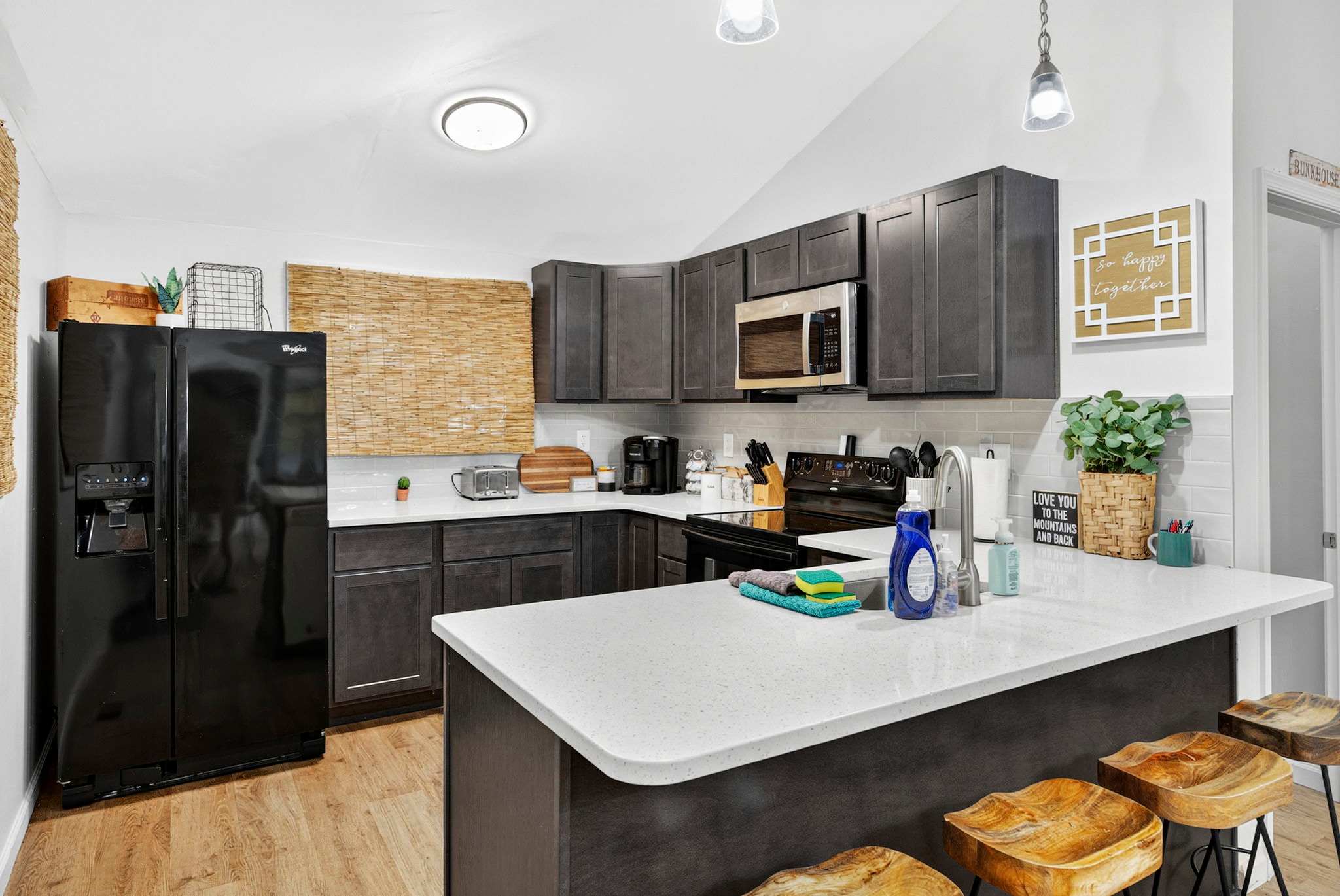 -Fully equipped kitchen with stainless appliances & granite countertops