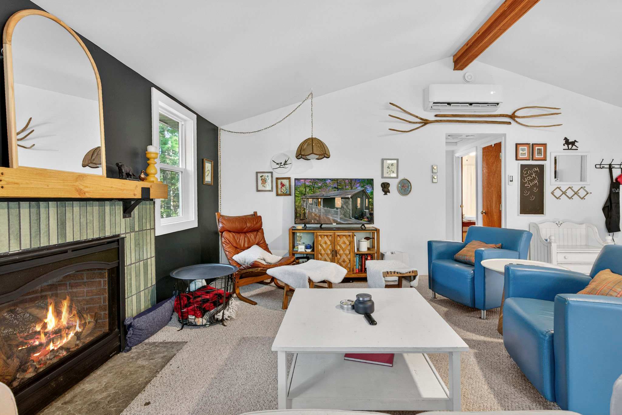 - Mini split system and ceiling fan in the main living area (heating & A/C) with baseboard heaters in the bedrooms and bath