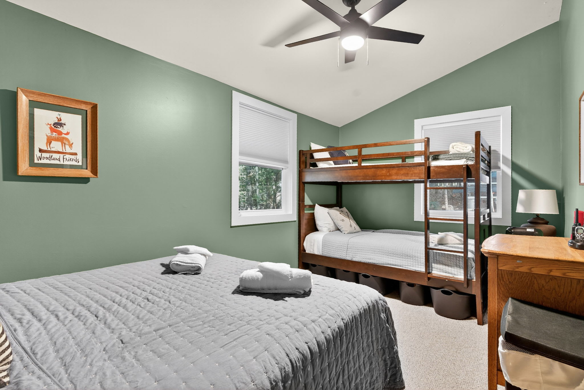 Bedroom 2 (main level): Queen Bed & Twin Bunk Beds