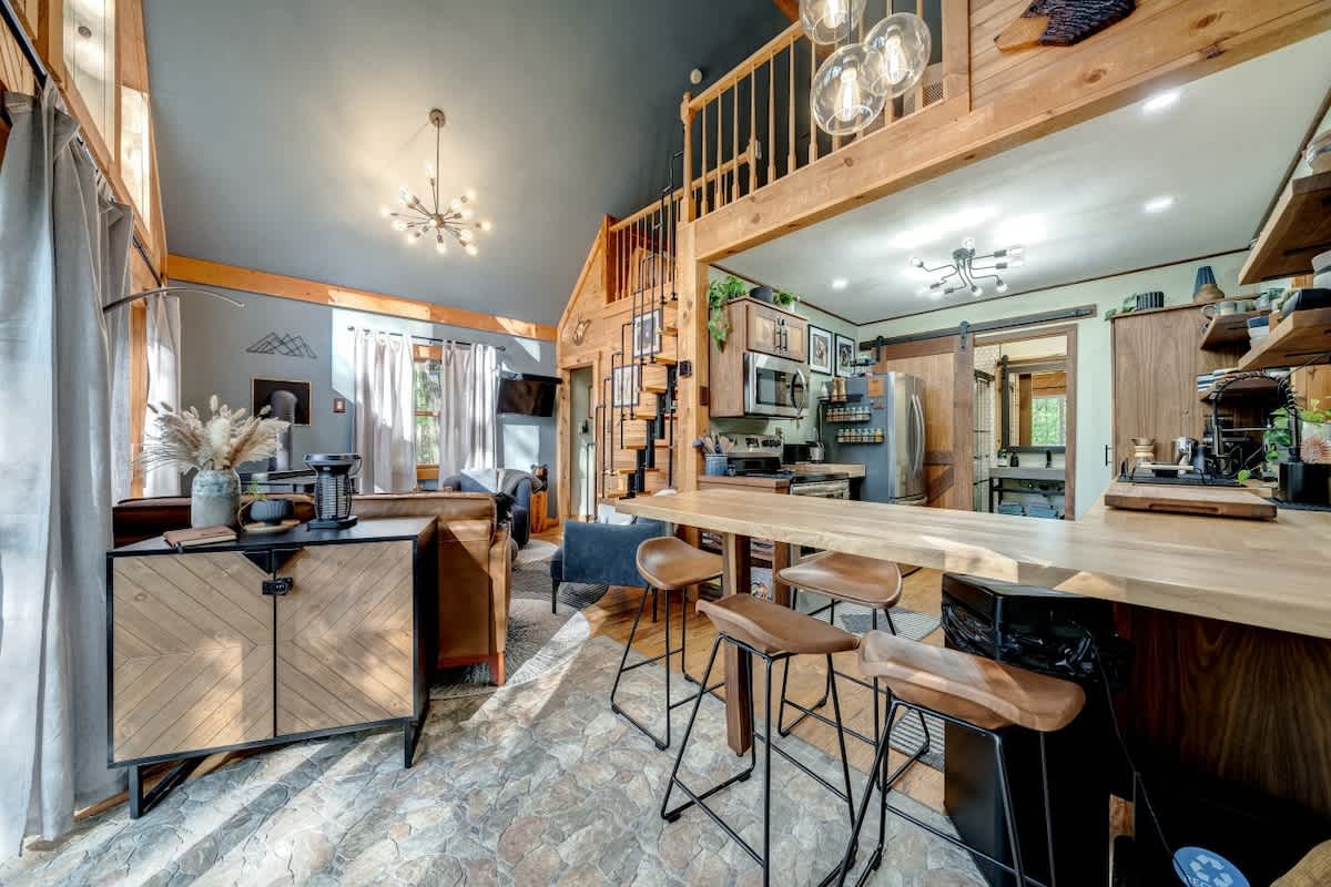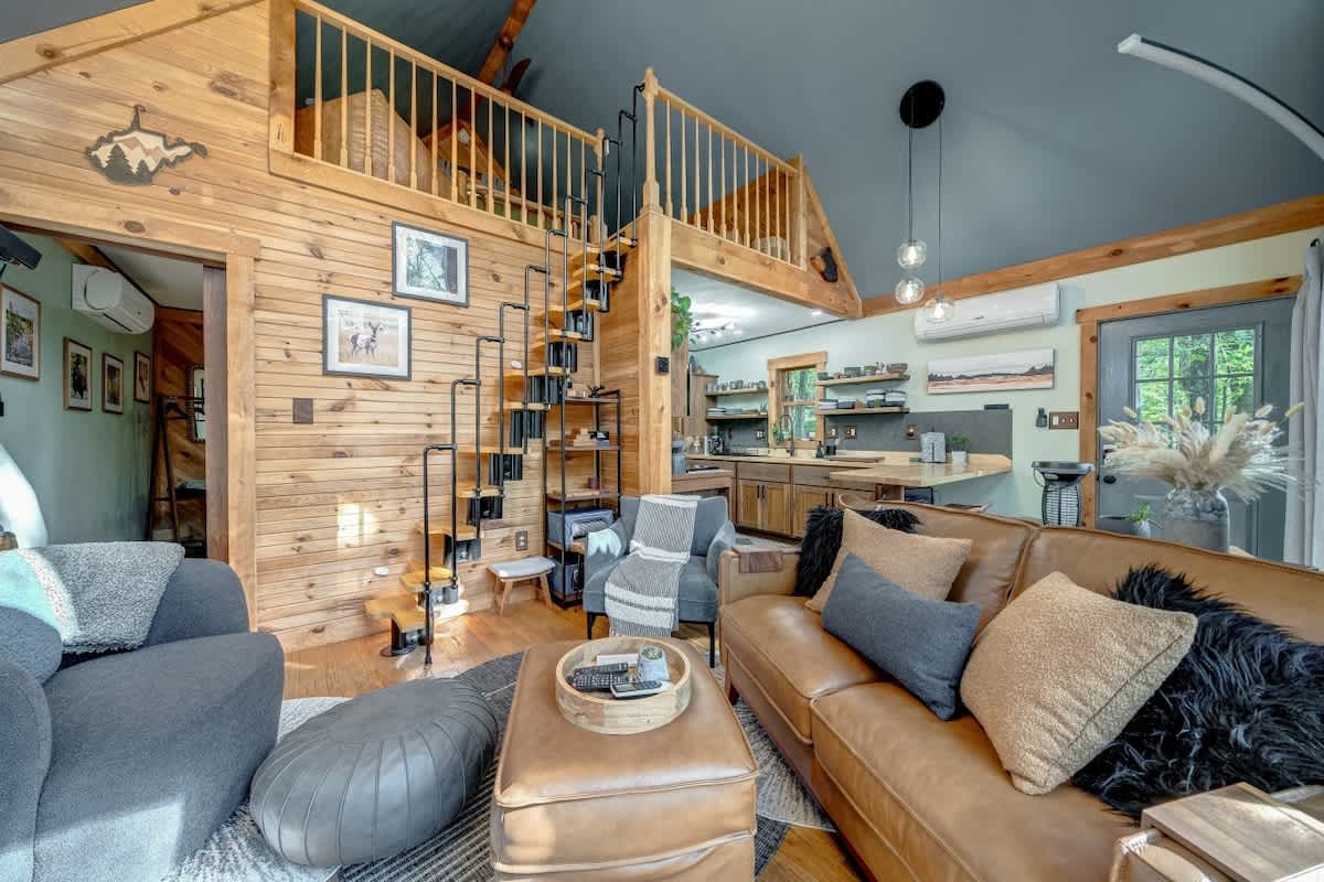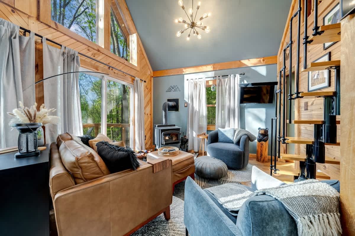 Welcome to the Lazy Bear Cabin! This gorgeous cabin has all of the aesthetic and charm to create the perfect getaway. Situated on just under 10 acres, the peace and privacy are perfect for a romantic getaway. Escape to the mountains, spend time under the stars, and enjoy the ambiance of a secluded cabin in the woods.