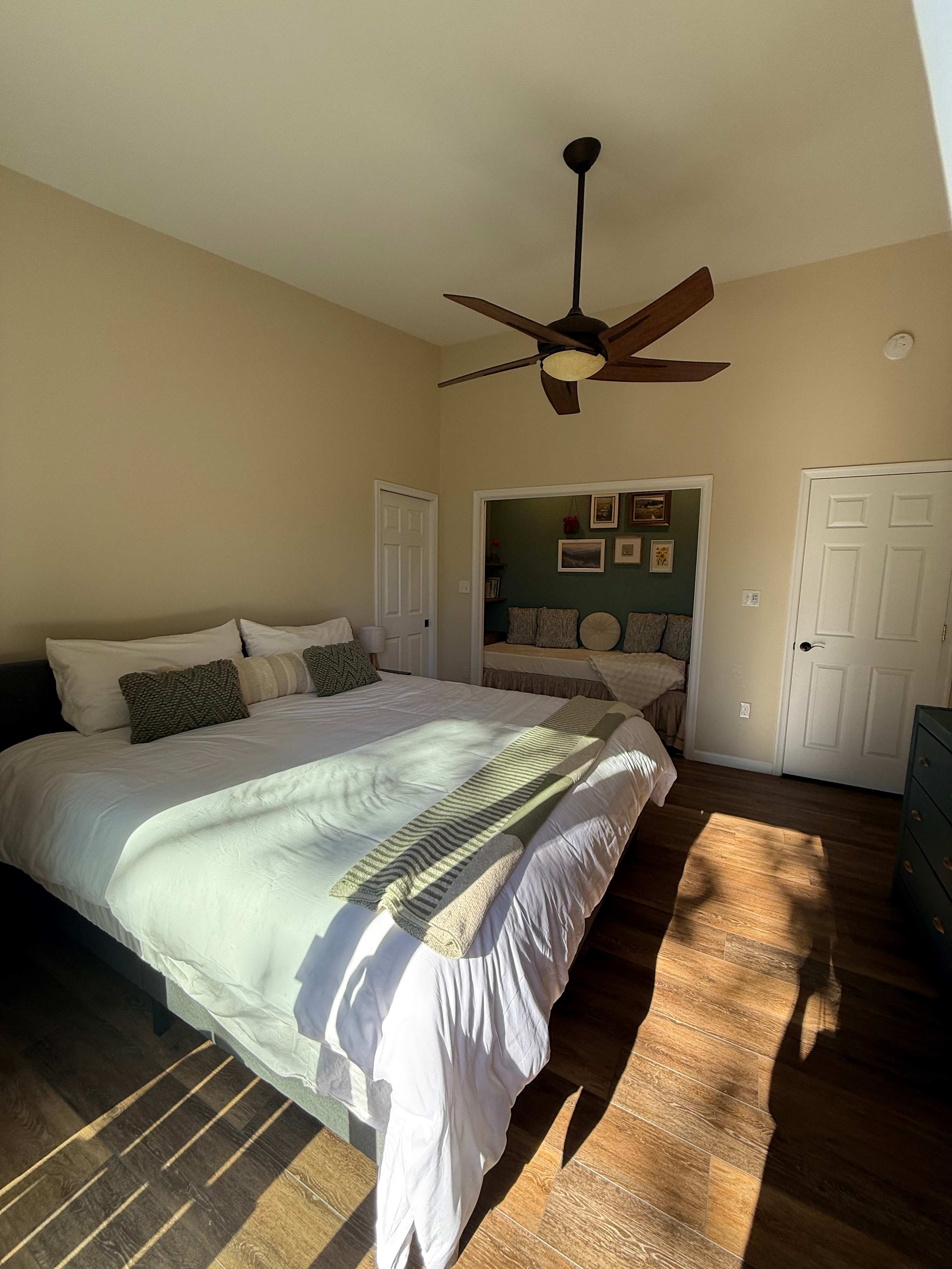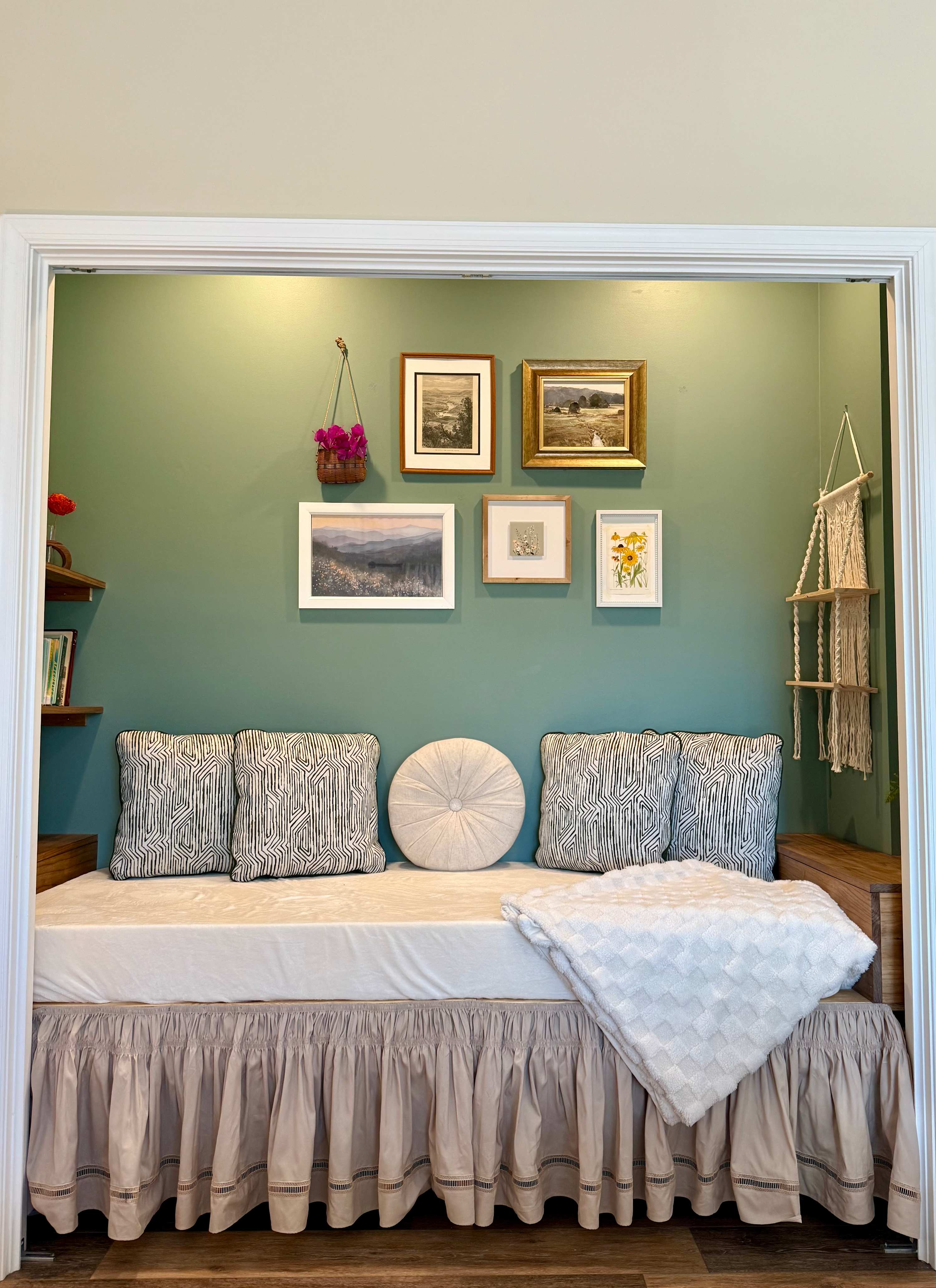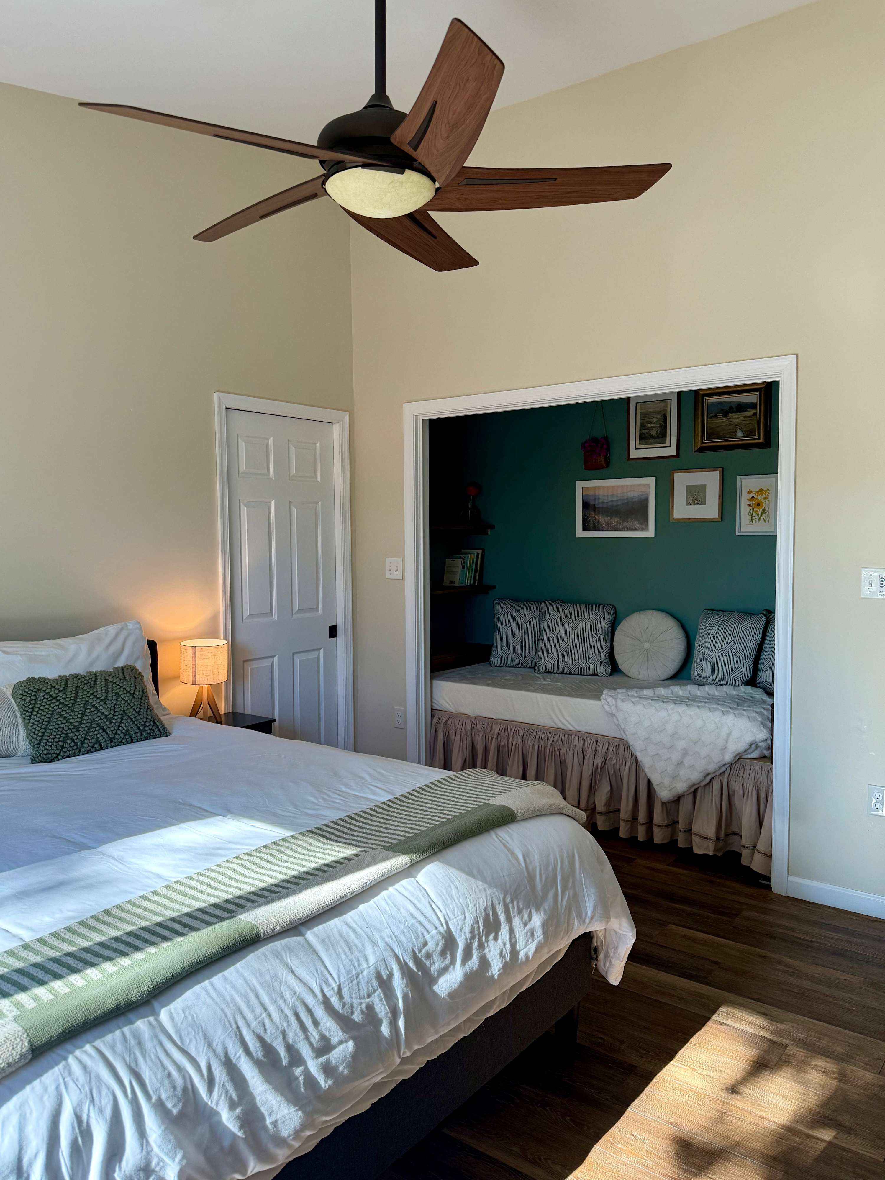 -King bed + custom oversized twin Book Nook (extra sleeping space!)