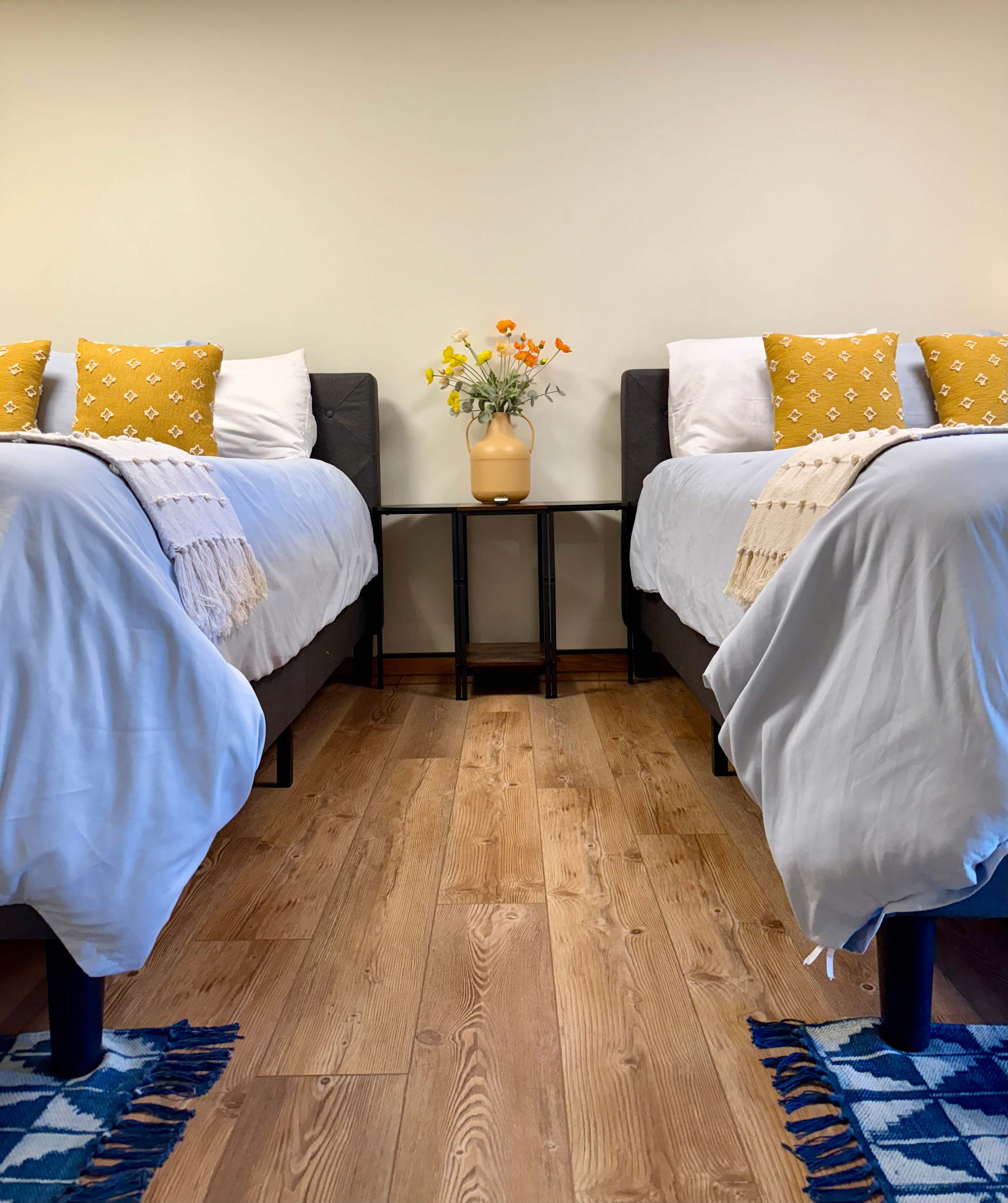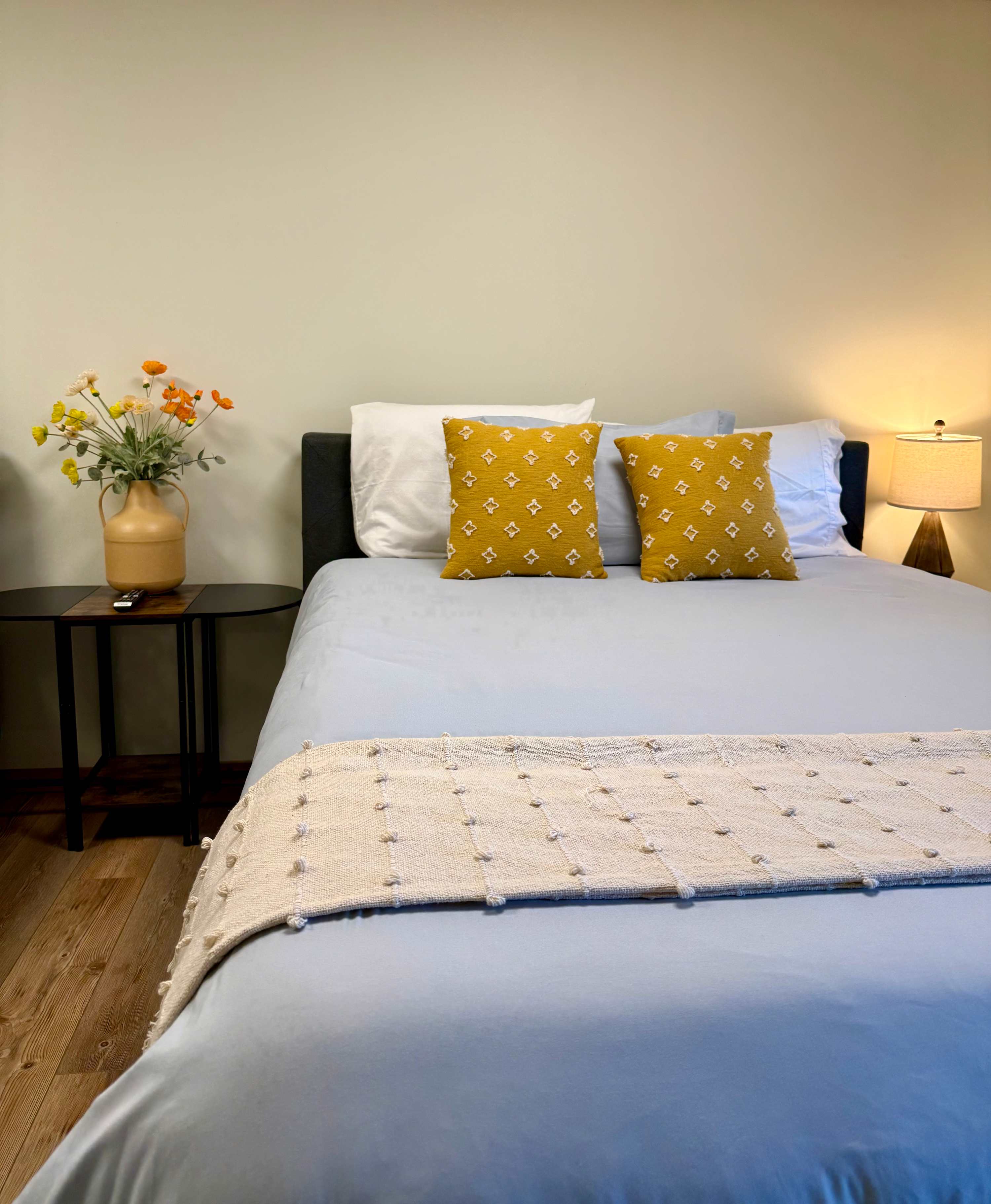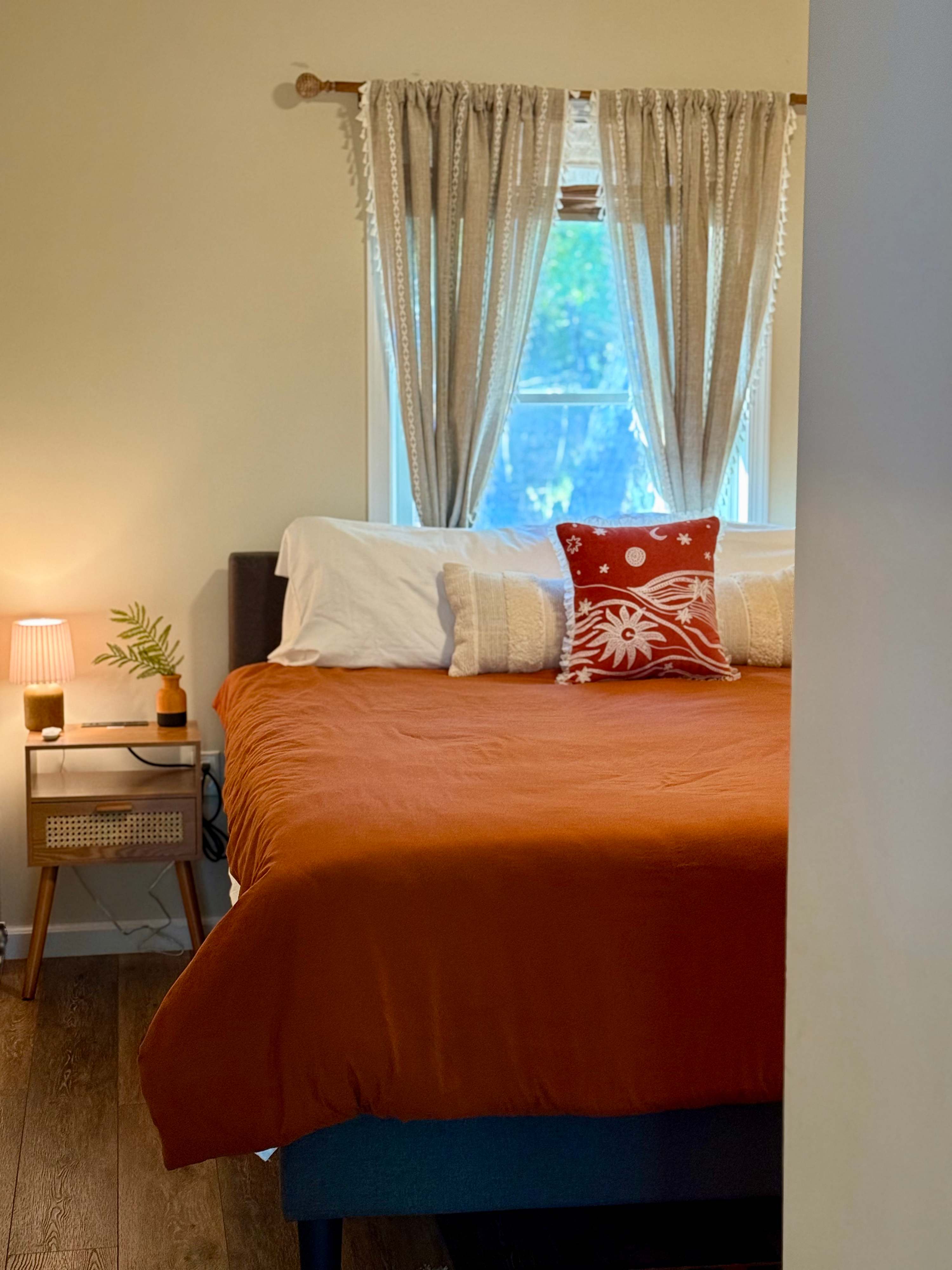 -King bed + custom oversized twin Book Nook (extra sleeping space!)