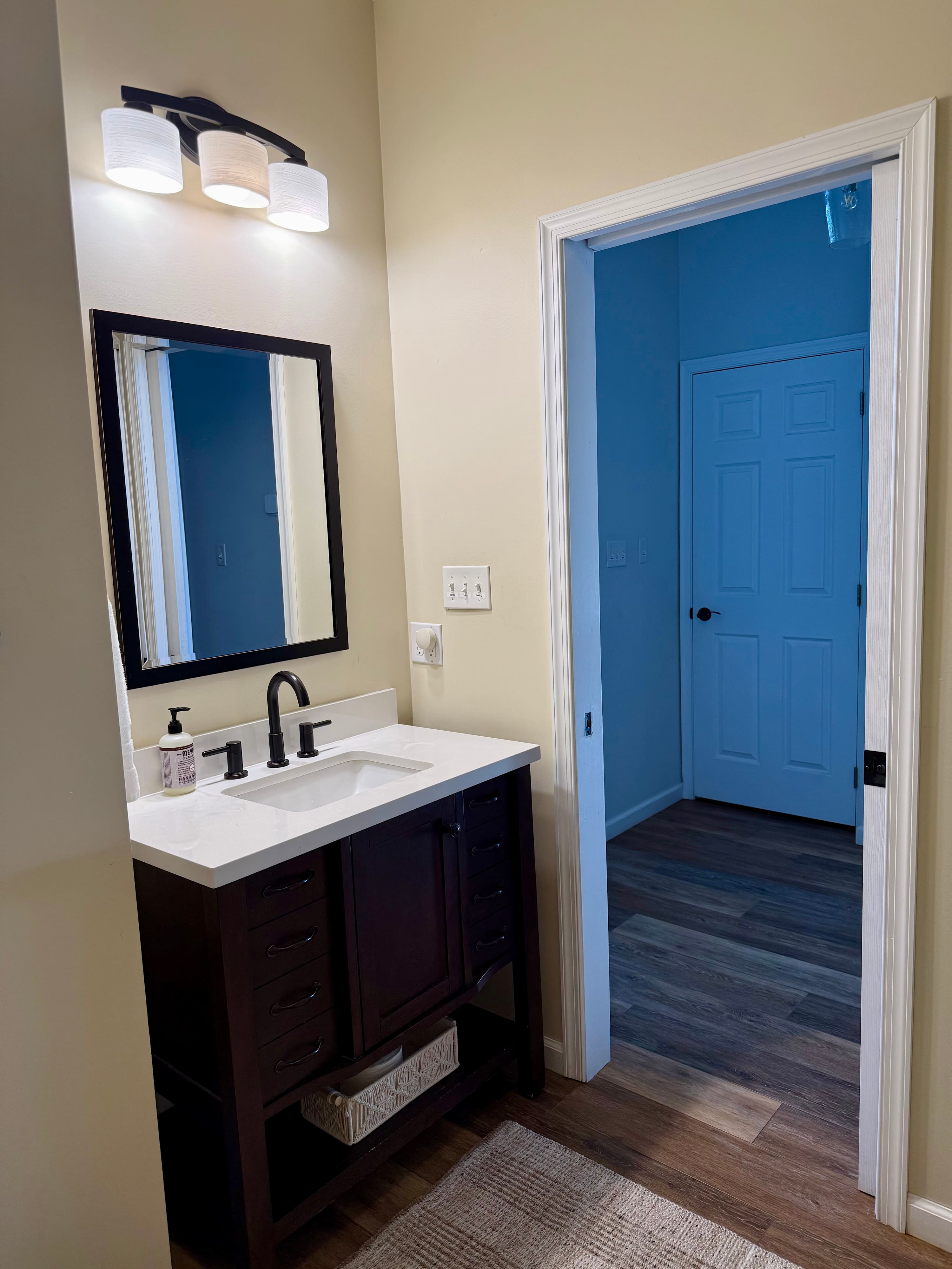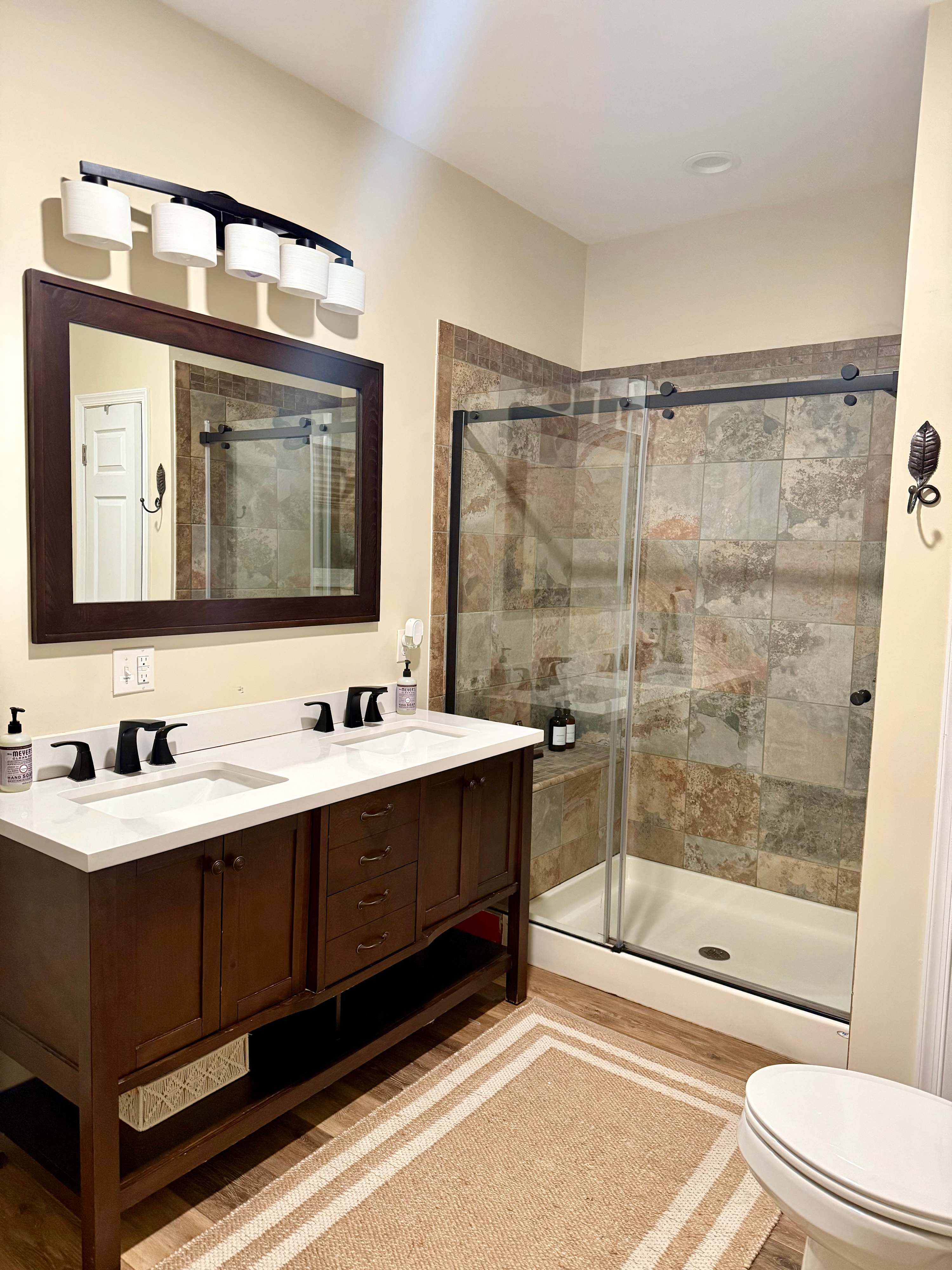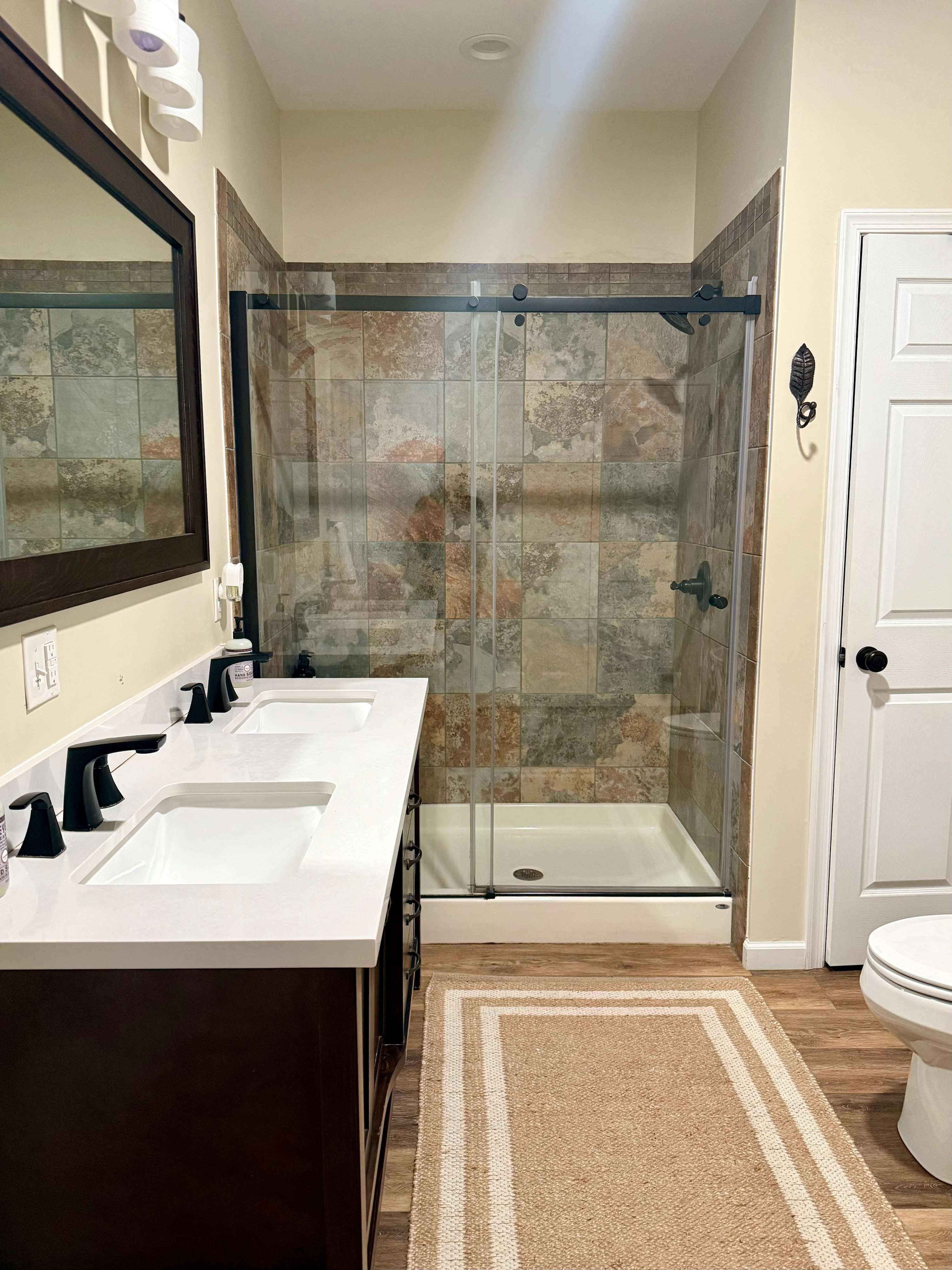 -Ensuite bathroom: his & hers sinks + stone walk-in shower