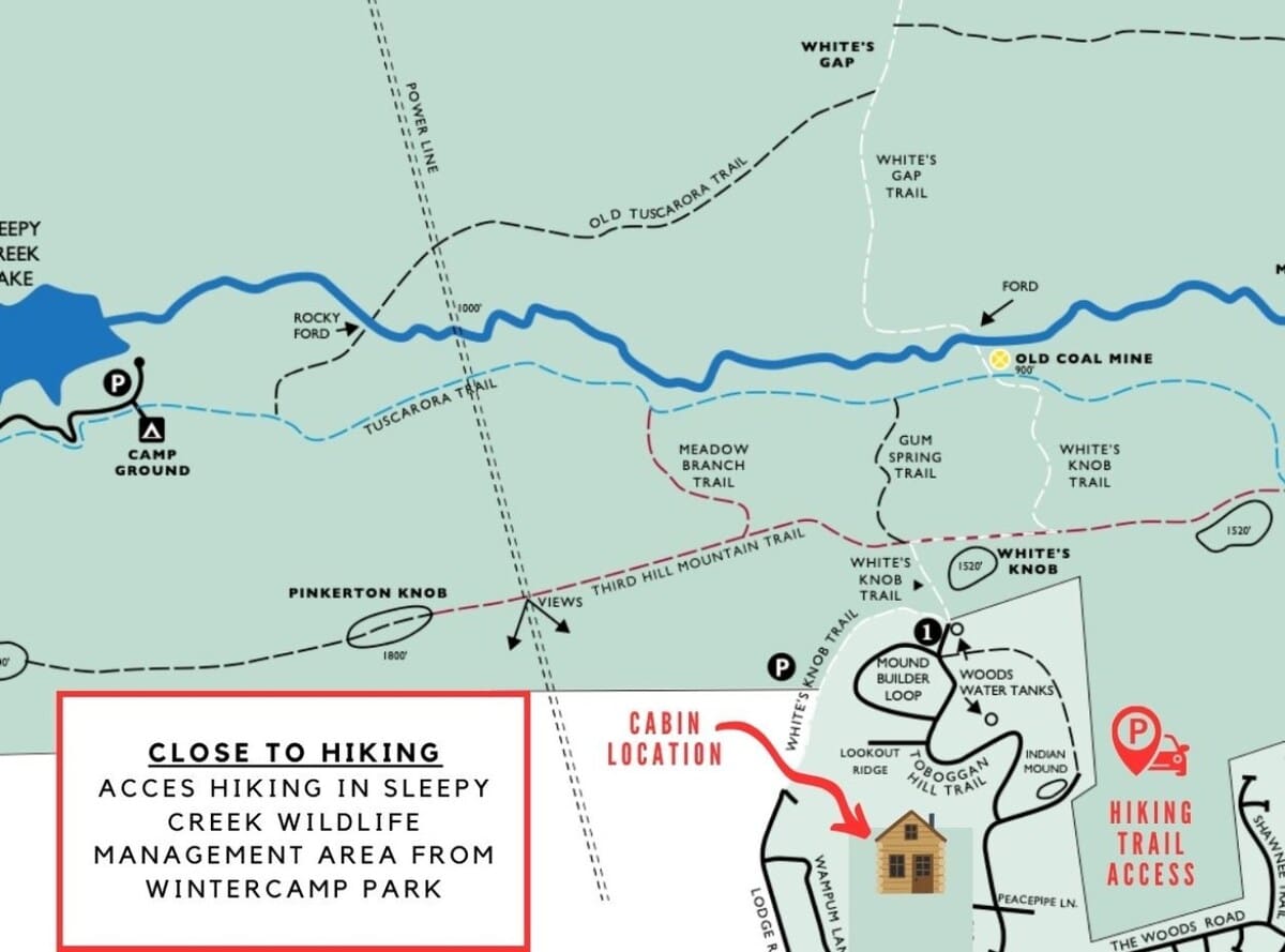 Our cabin is located in The Woods Resort, a private community with an 18-hole golf course (with low green fees), spa, a restaurant and pub, and miles of walking/hiking trails. It’s considered the best course in the area, and the pub food is pretty great too!