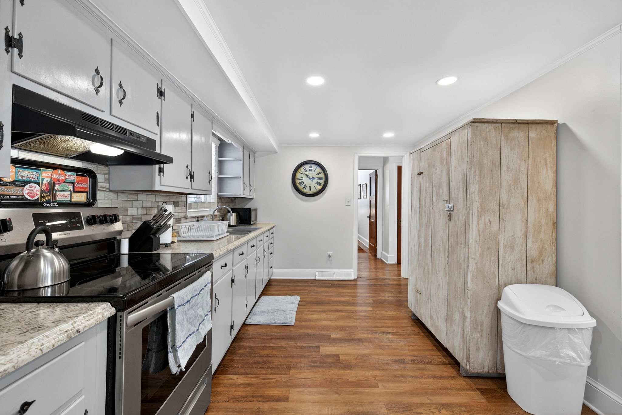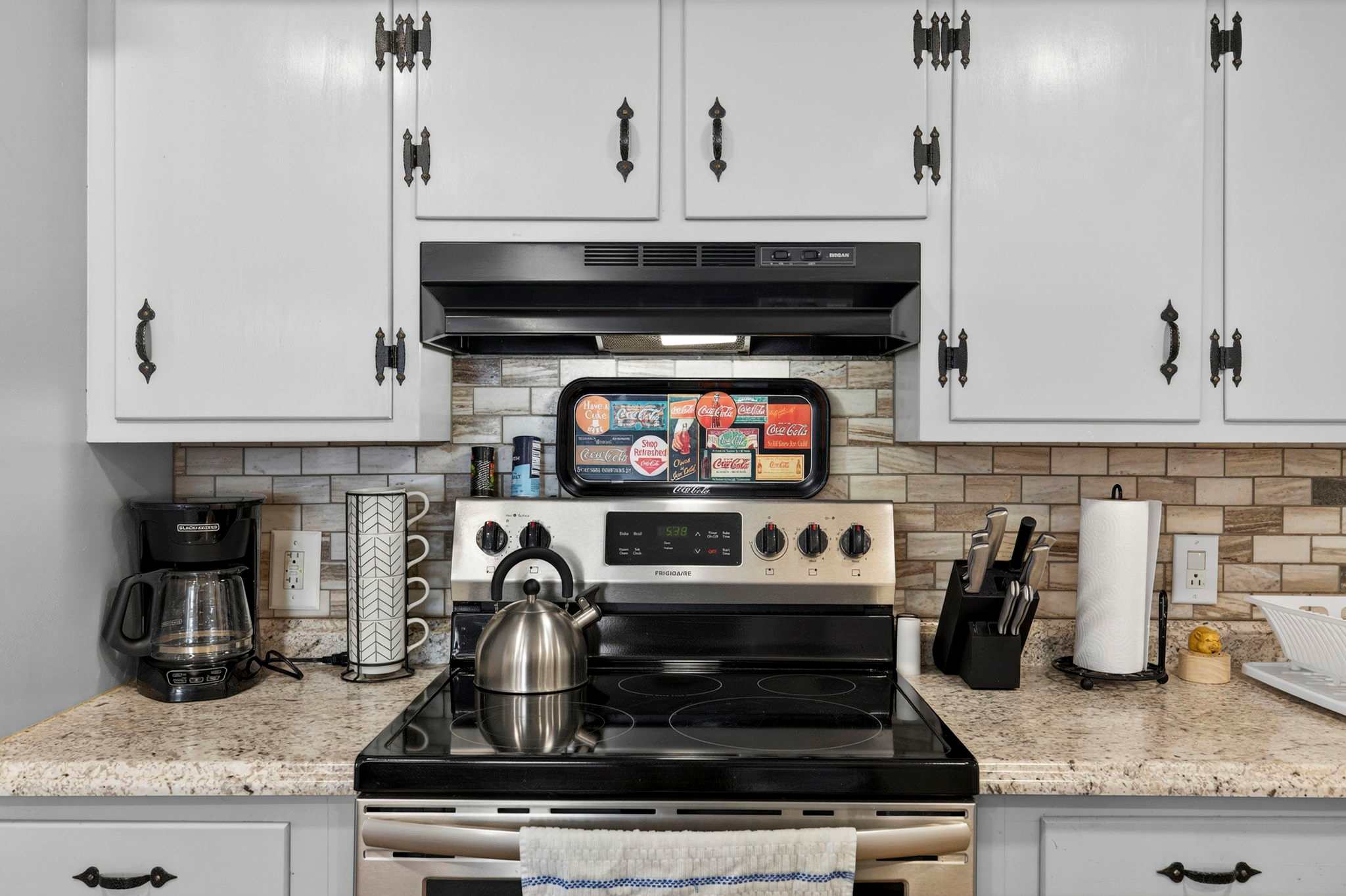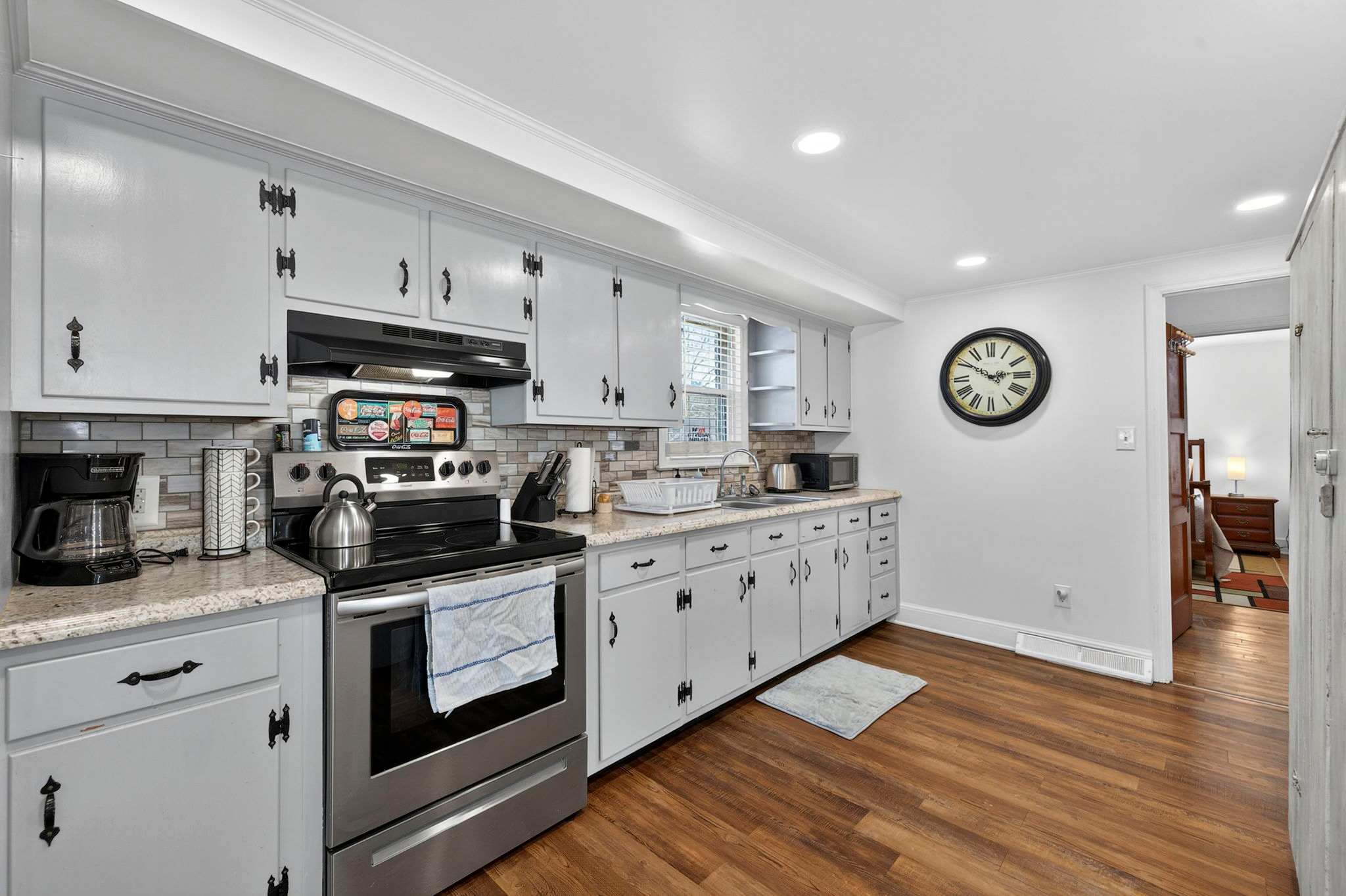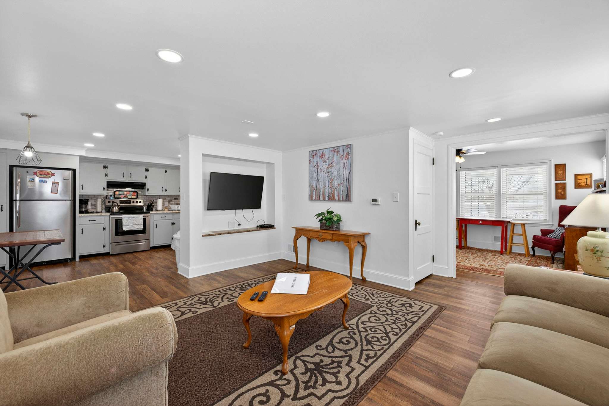 -Updated, fully stocked kitchen with additional seating and plenty of room for prepping home cooked meals