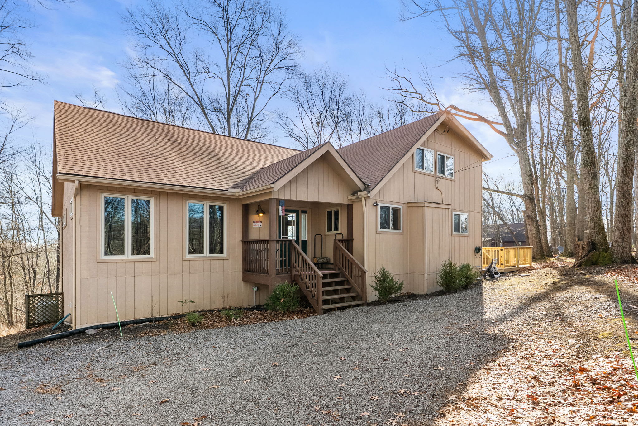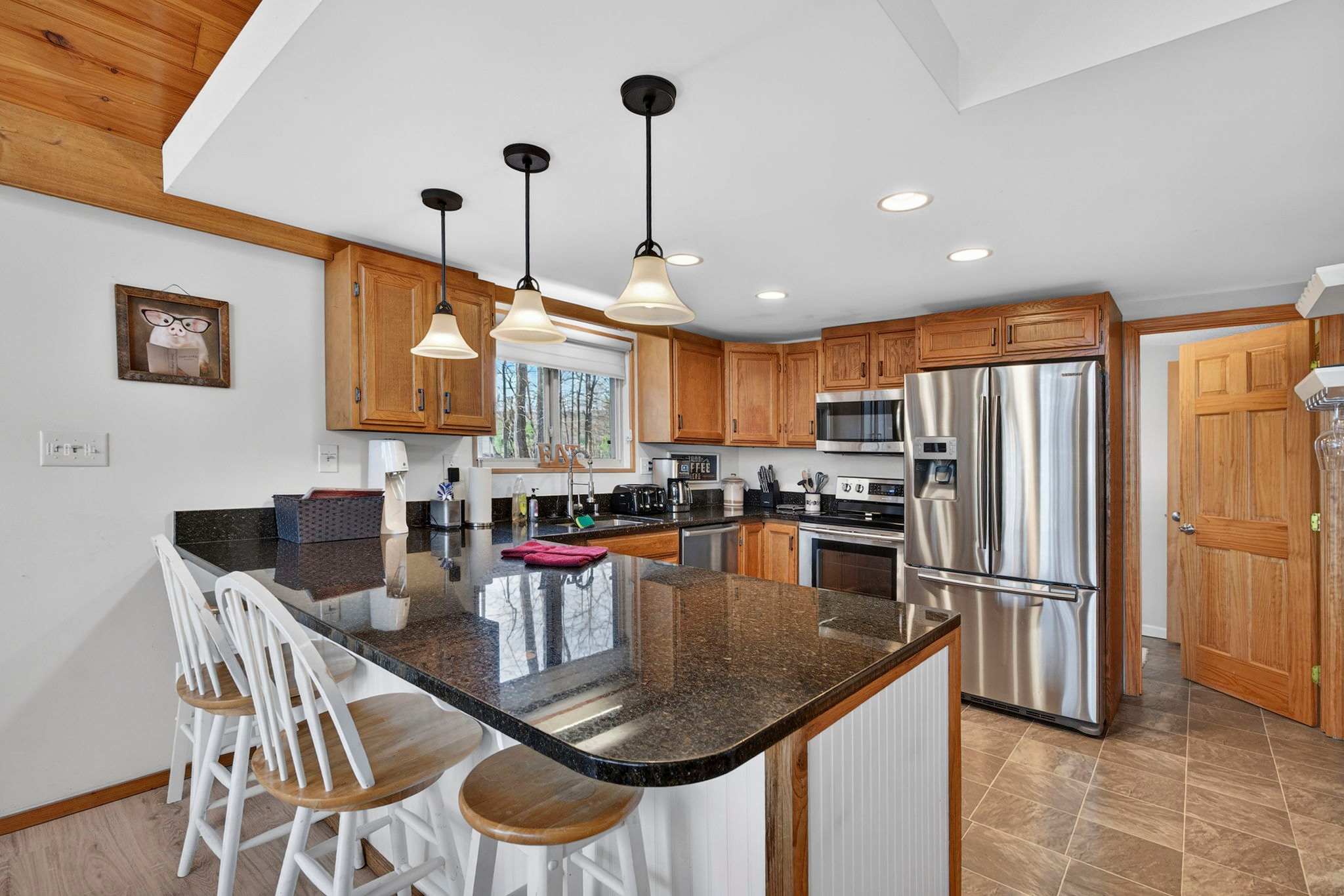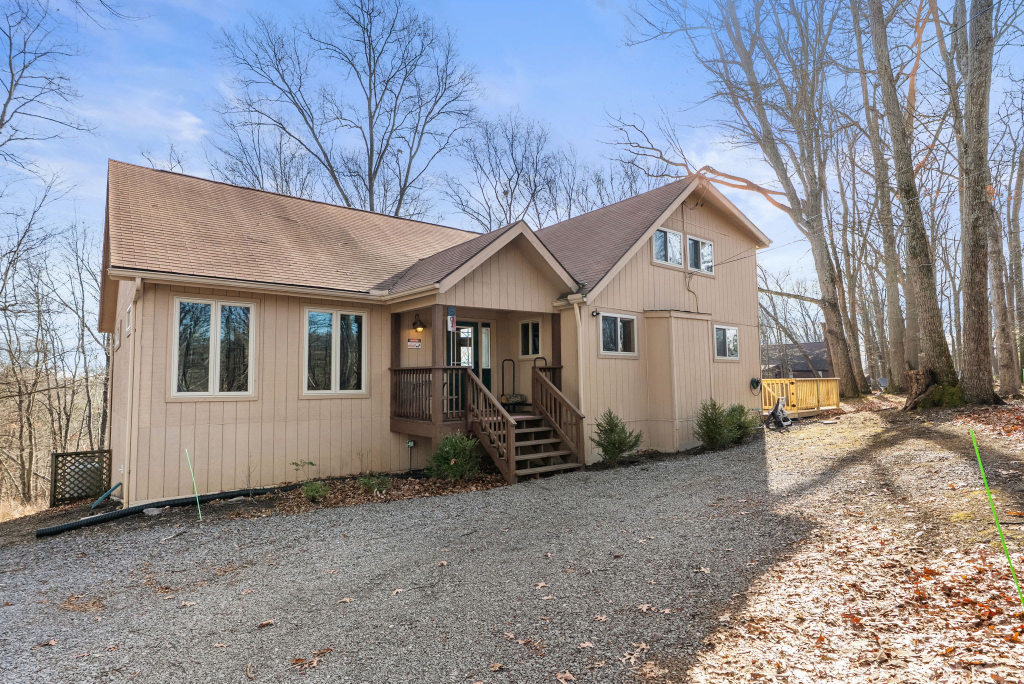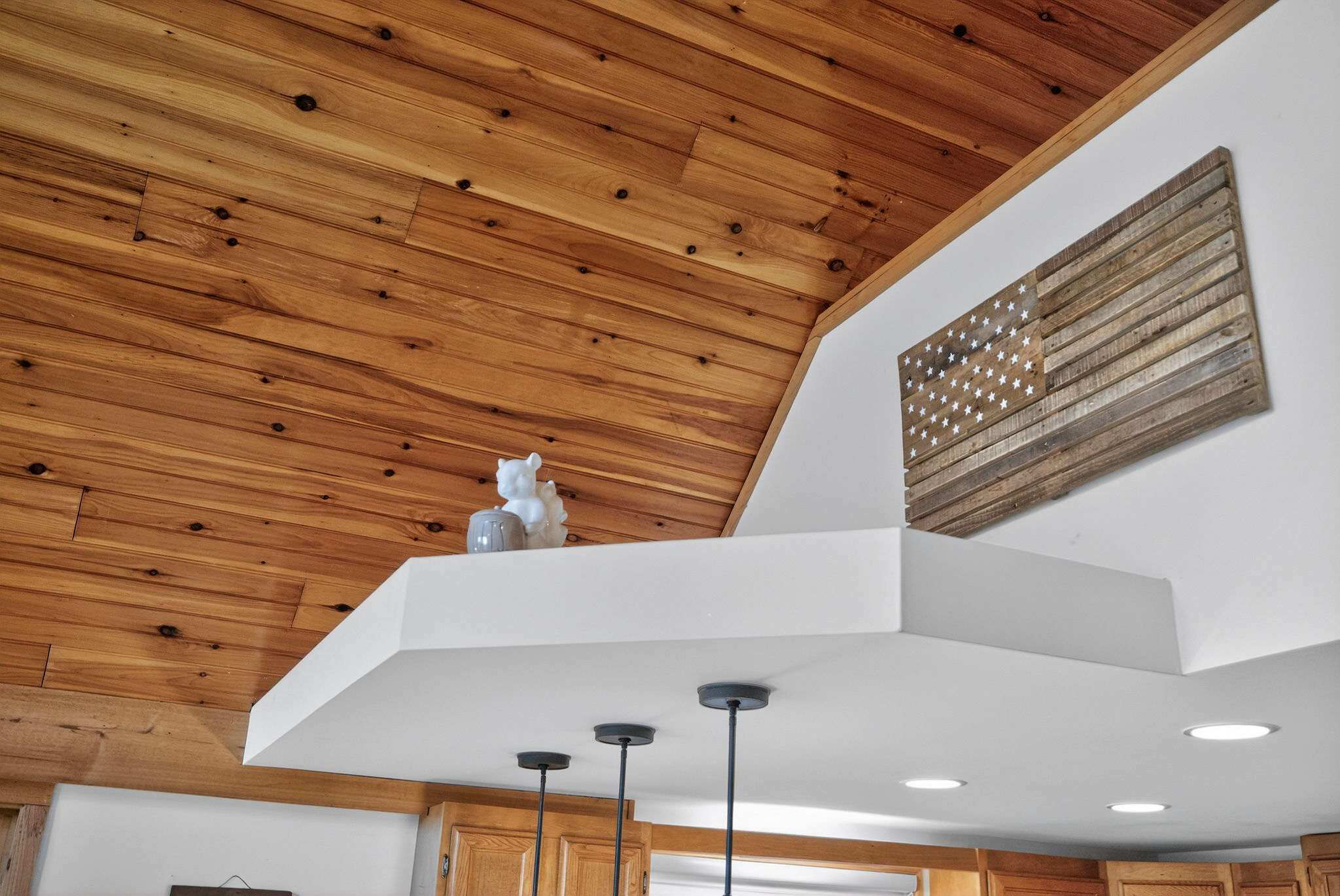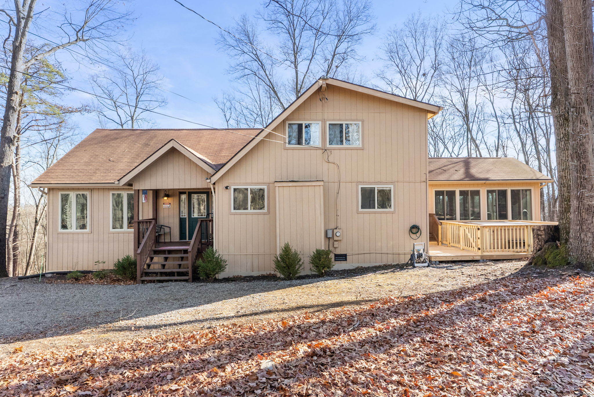 This beautiful home features an open concept living room, fully equipped kitchen and hot tub, for year 'round use. The sunroom is a stunning space surrounded by windows and has access to a screened in porch, perfect for outdoor dining or taking in the views. The large deck is furnished with a gas grill, fire pit and seating to spare - including a built in bar. Guests also have access to The Woods Resort!!