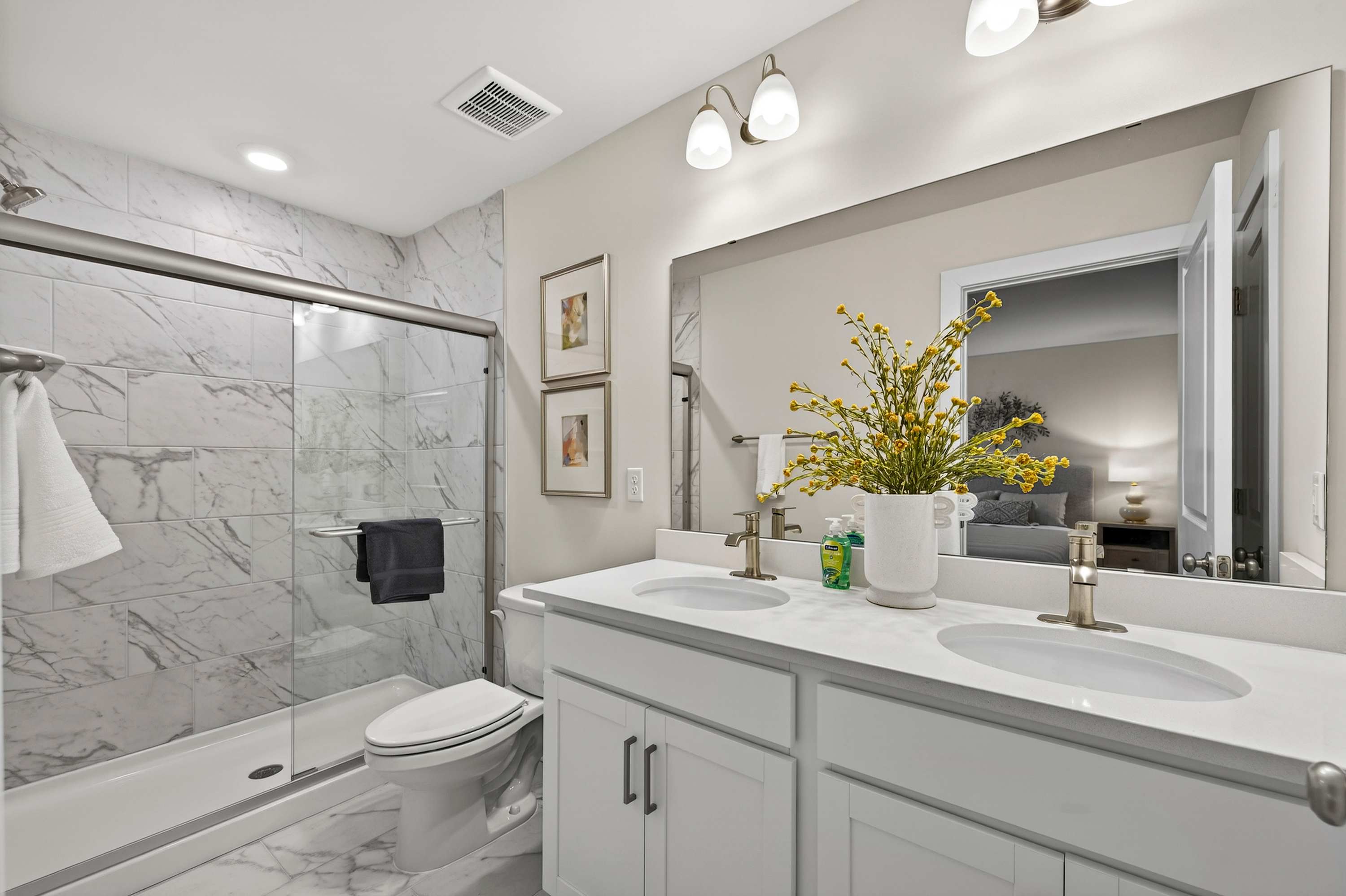 Bathroom 2 (Upper Level – Shared): Shower/tub combo