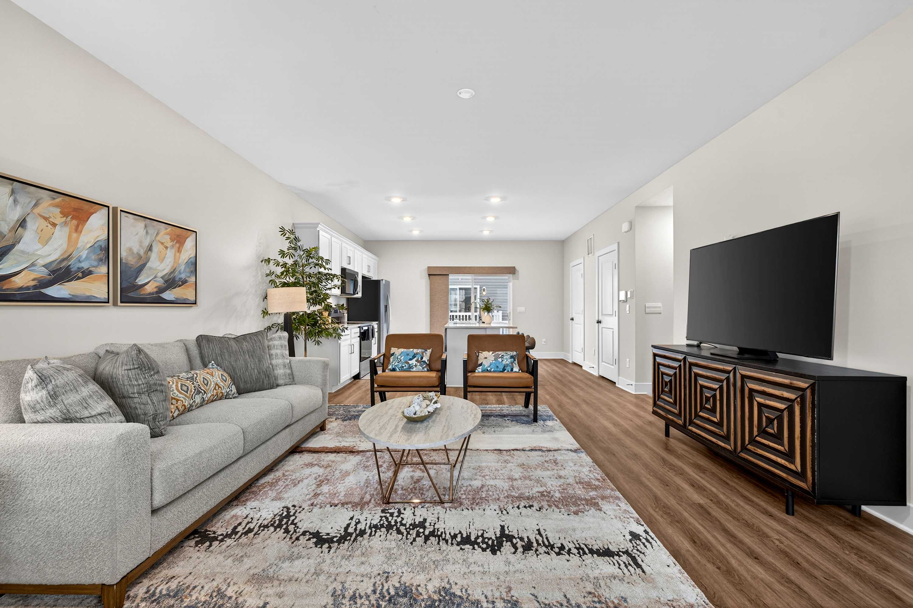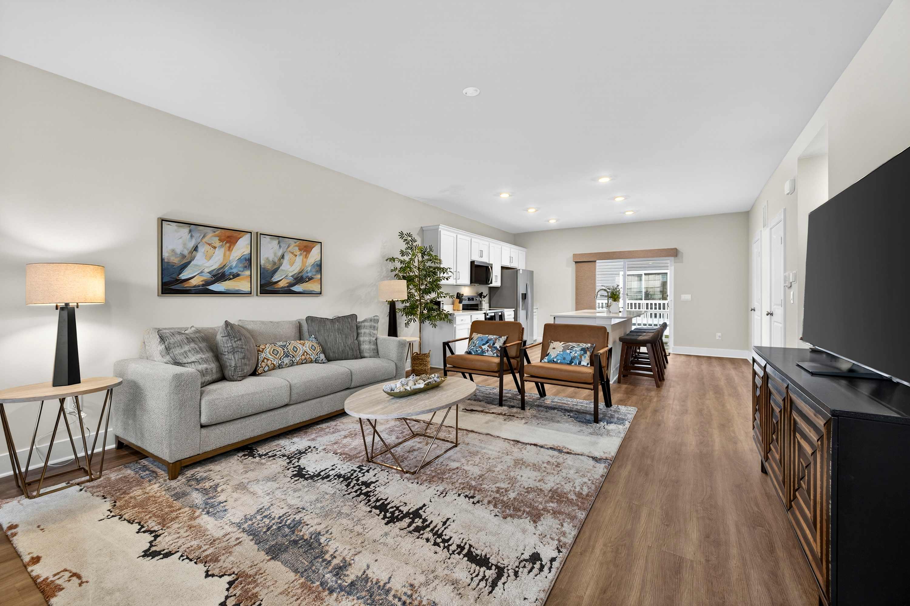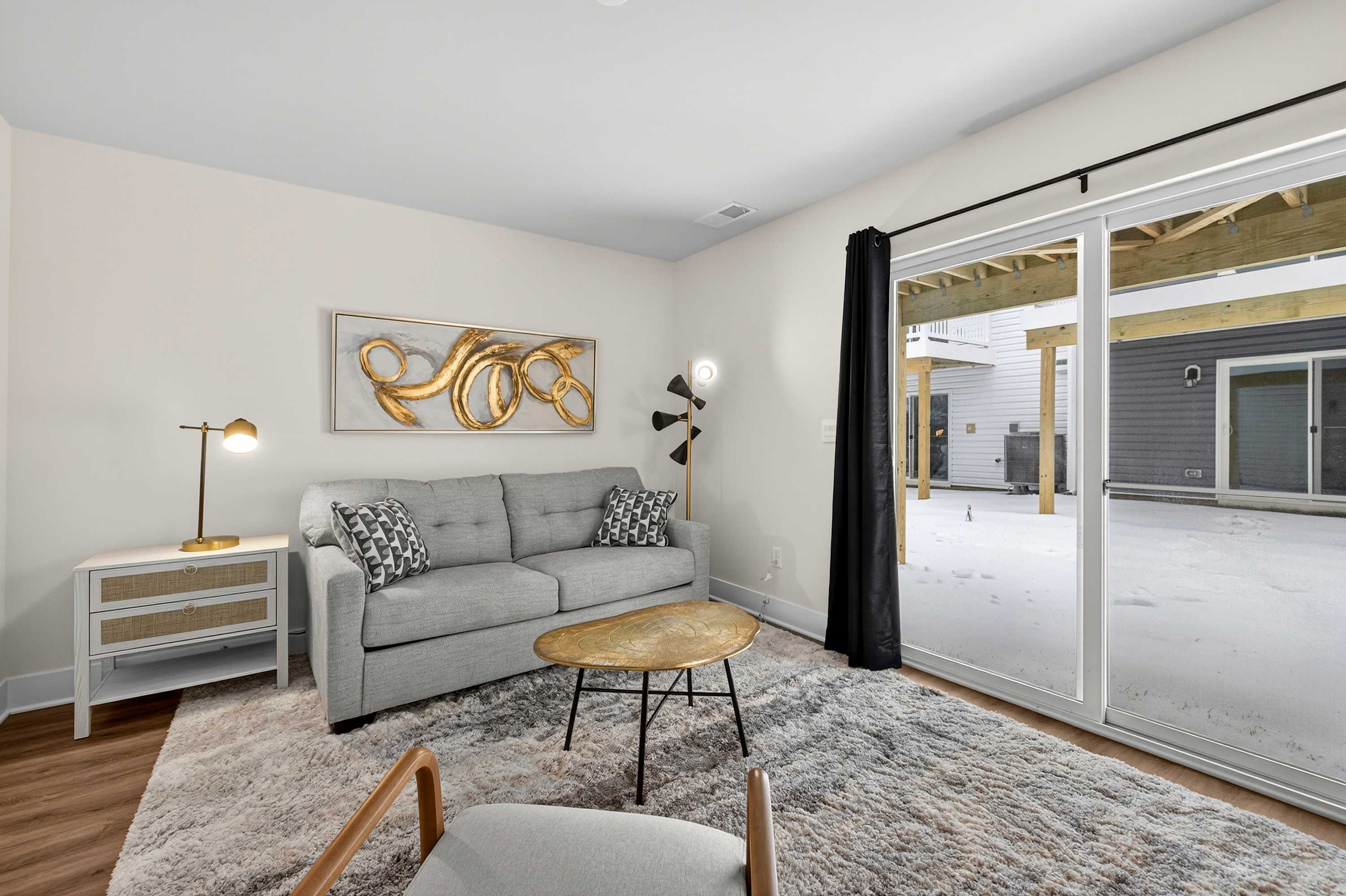Lower-level hangout space with Smart TV